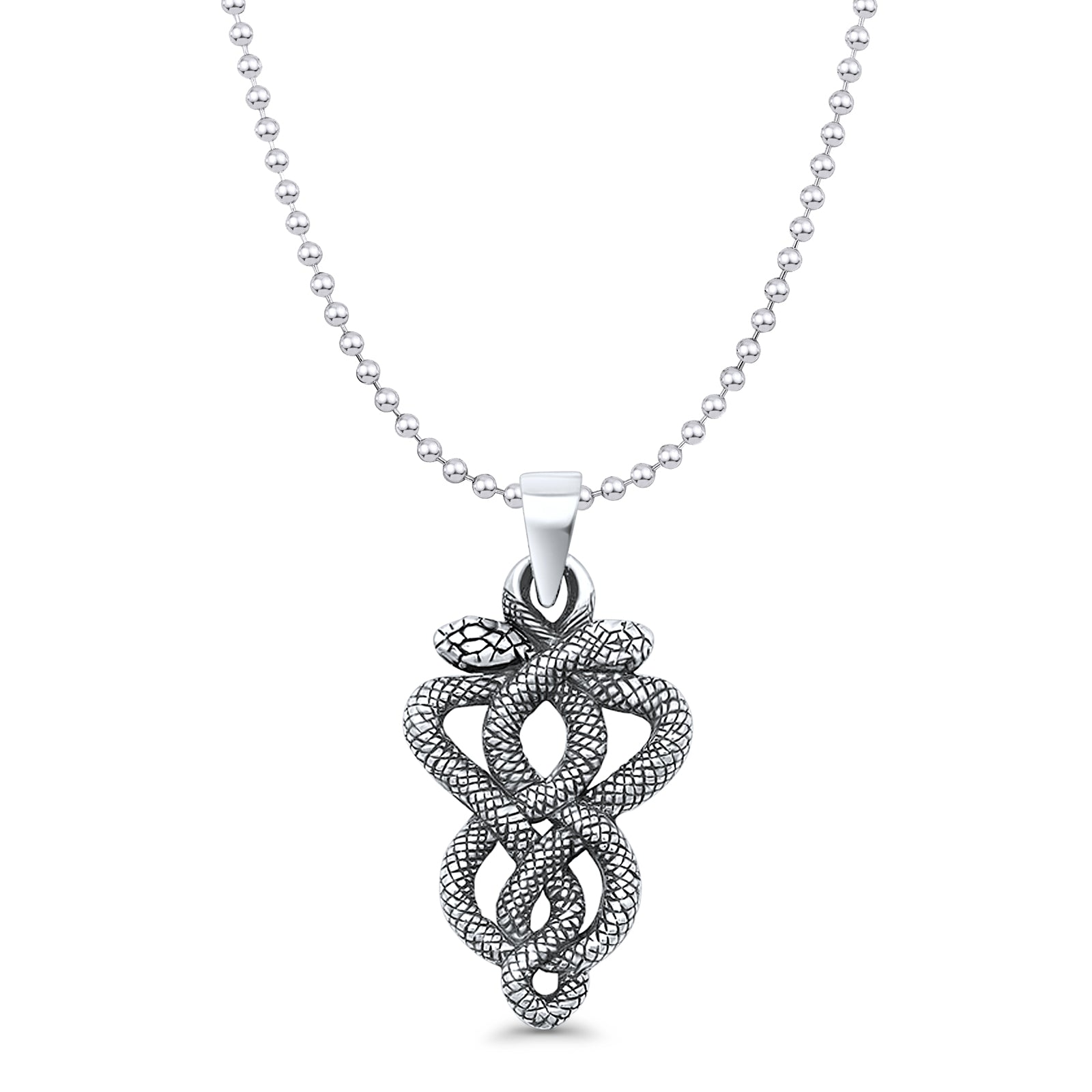 Twisted Snake Pendant Bead Chain Necklace Oxidized 925 Sterling Silver