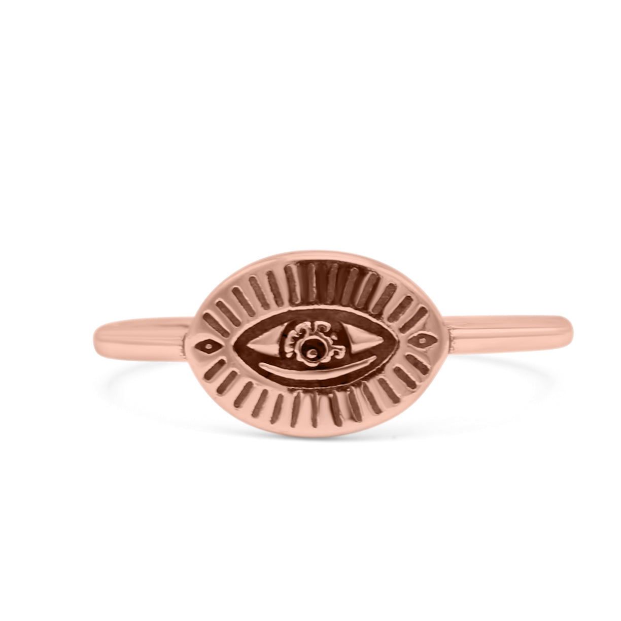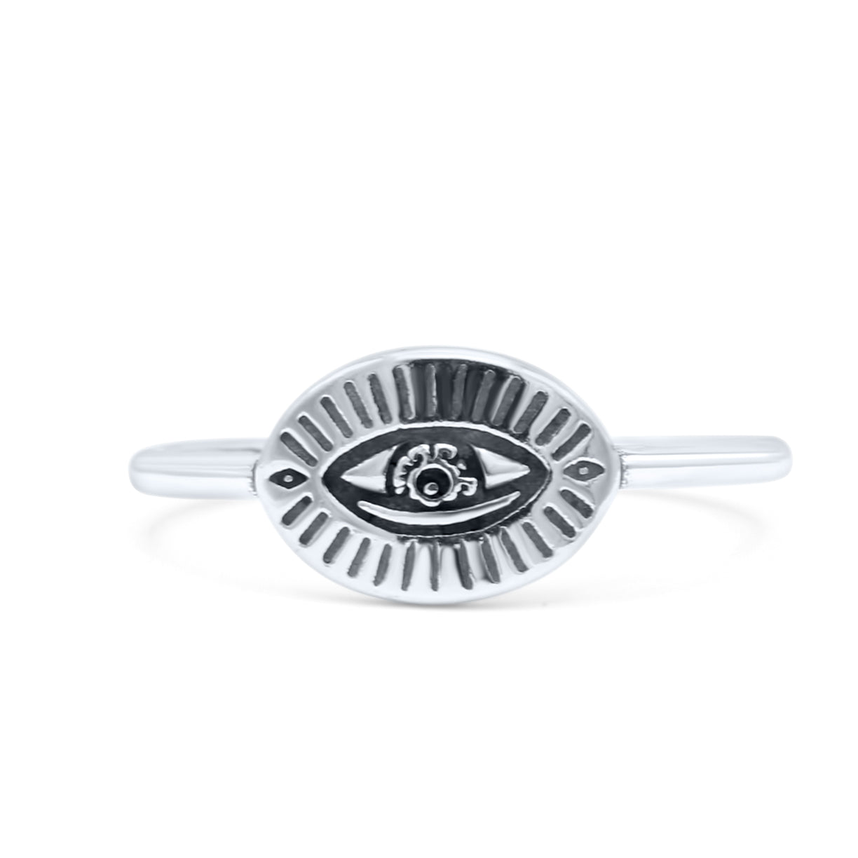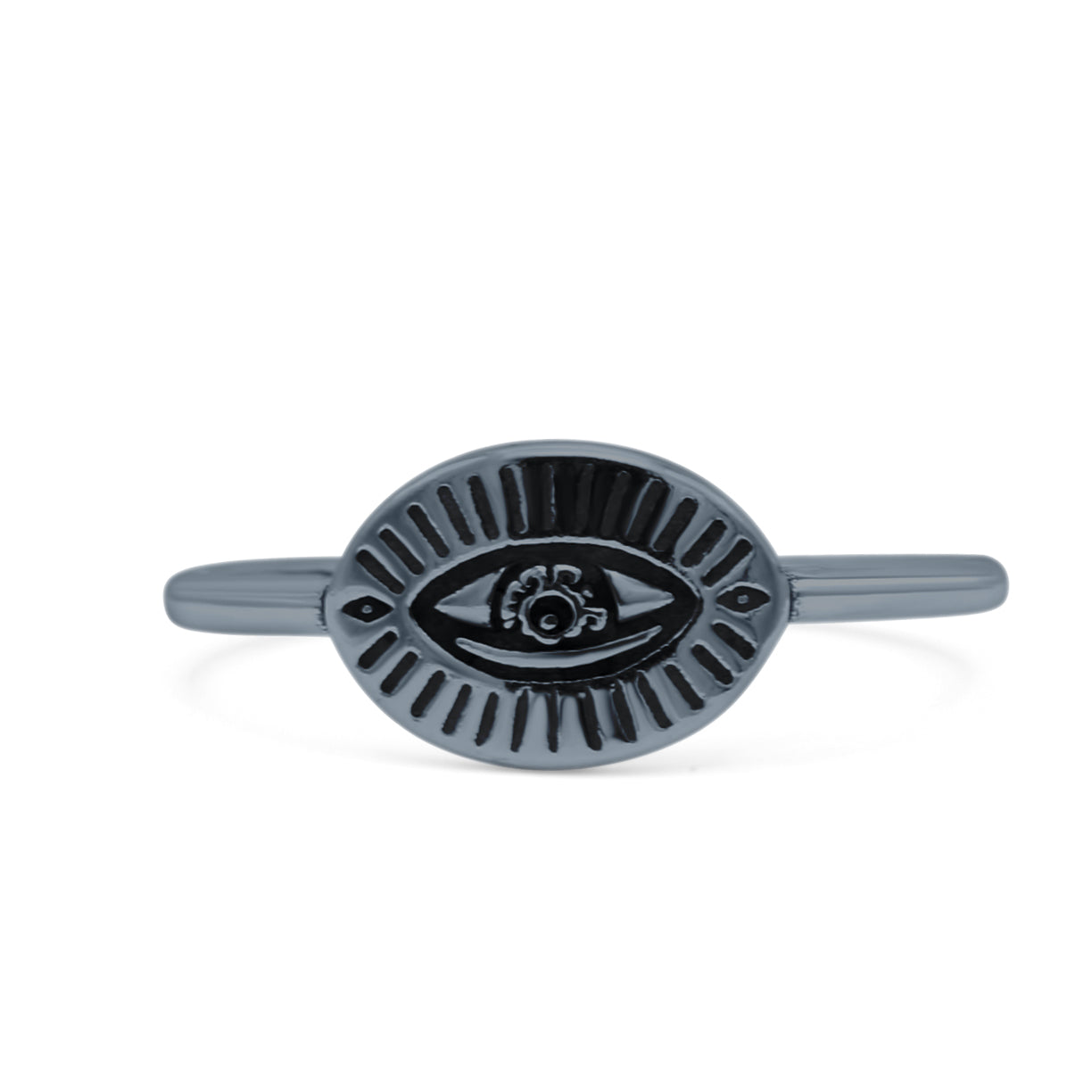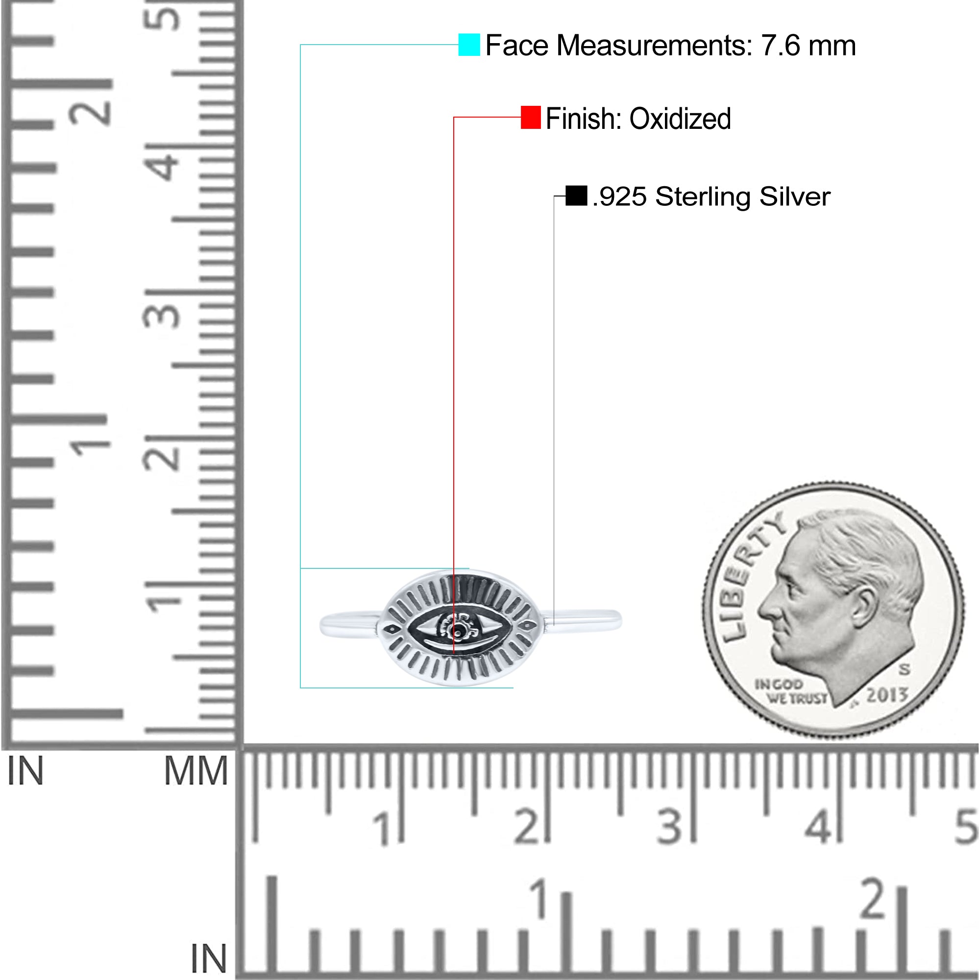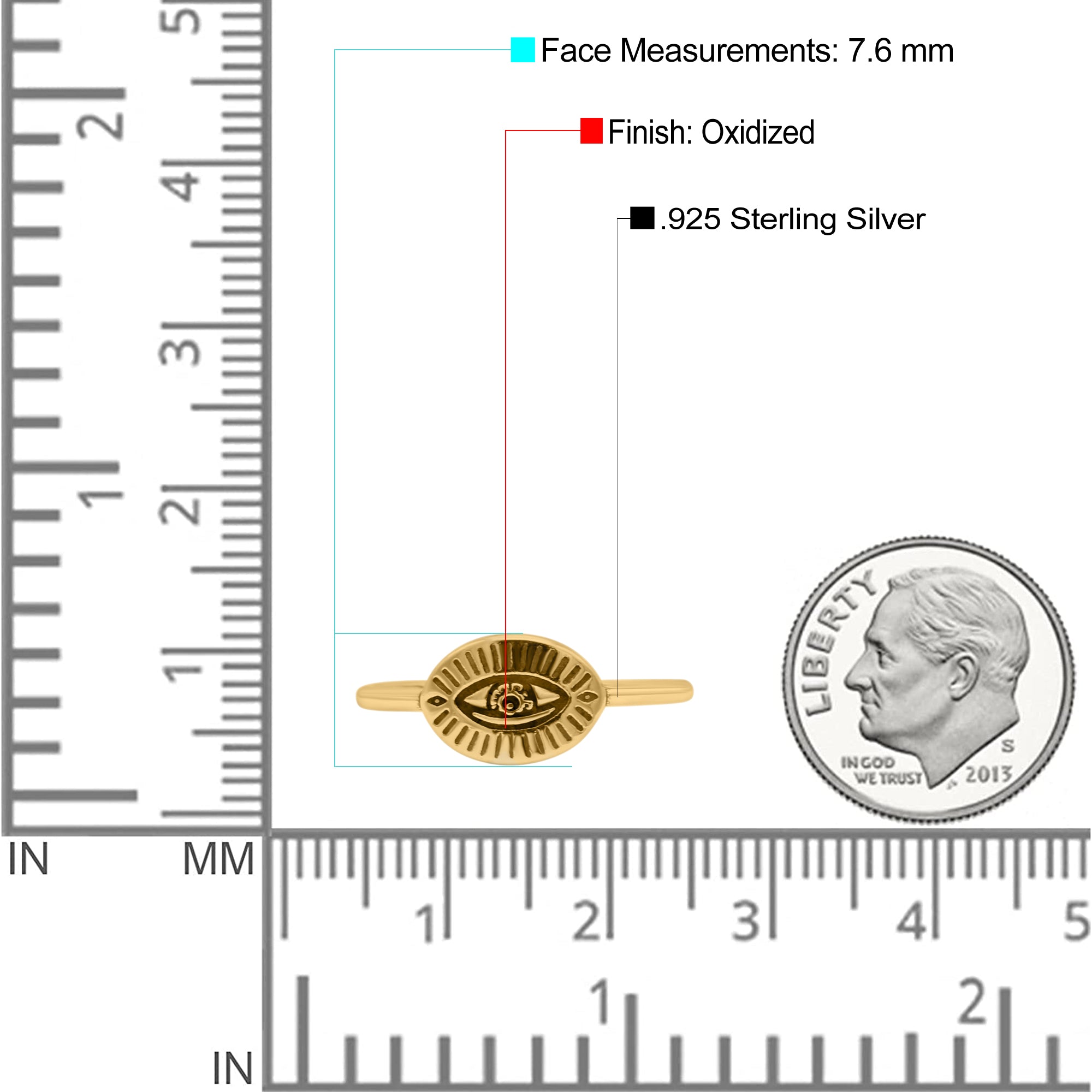Unique Evil Eye Engraved Style Traditional Oxidized Statement Band Solid 925 Sterling Silver Thumb Ring (7.6mm)