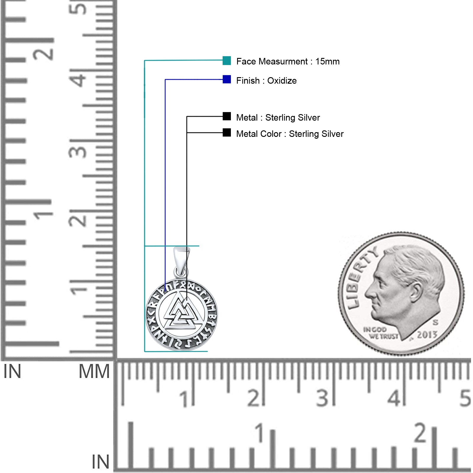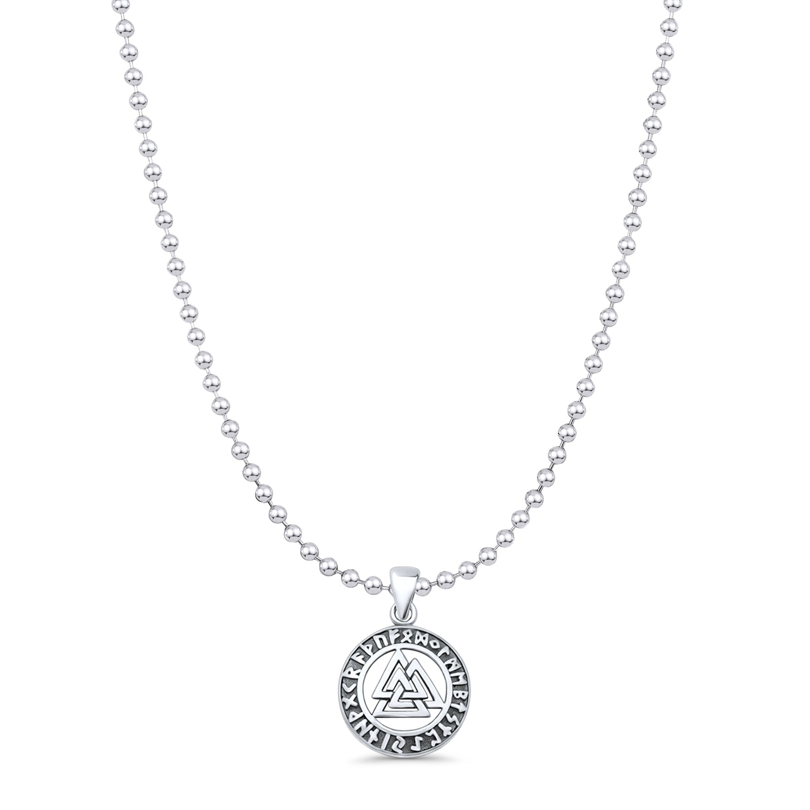 Valknut Pendant Oxidized Bead Chain Necklace 925 Sterling Silver