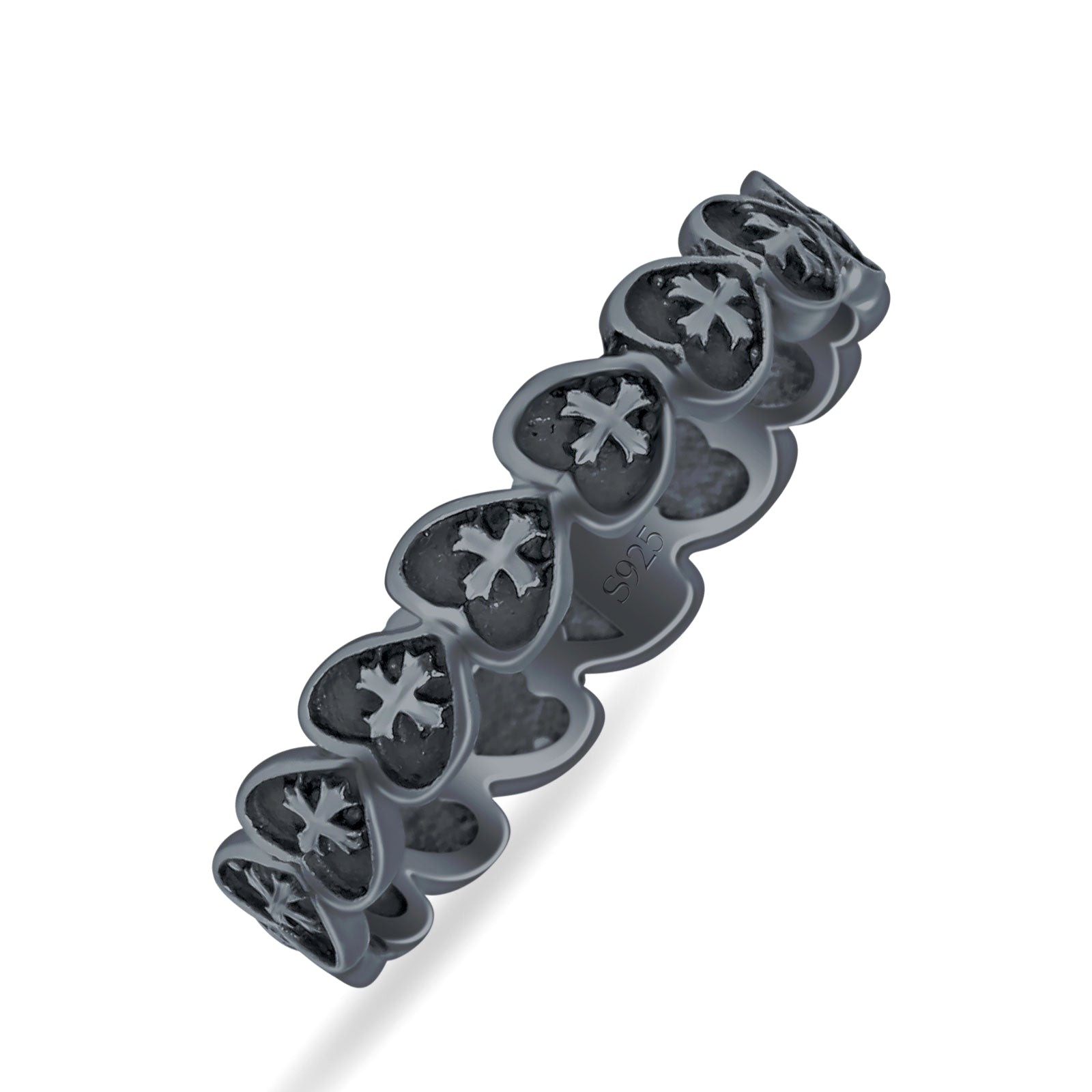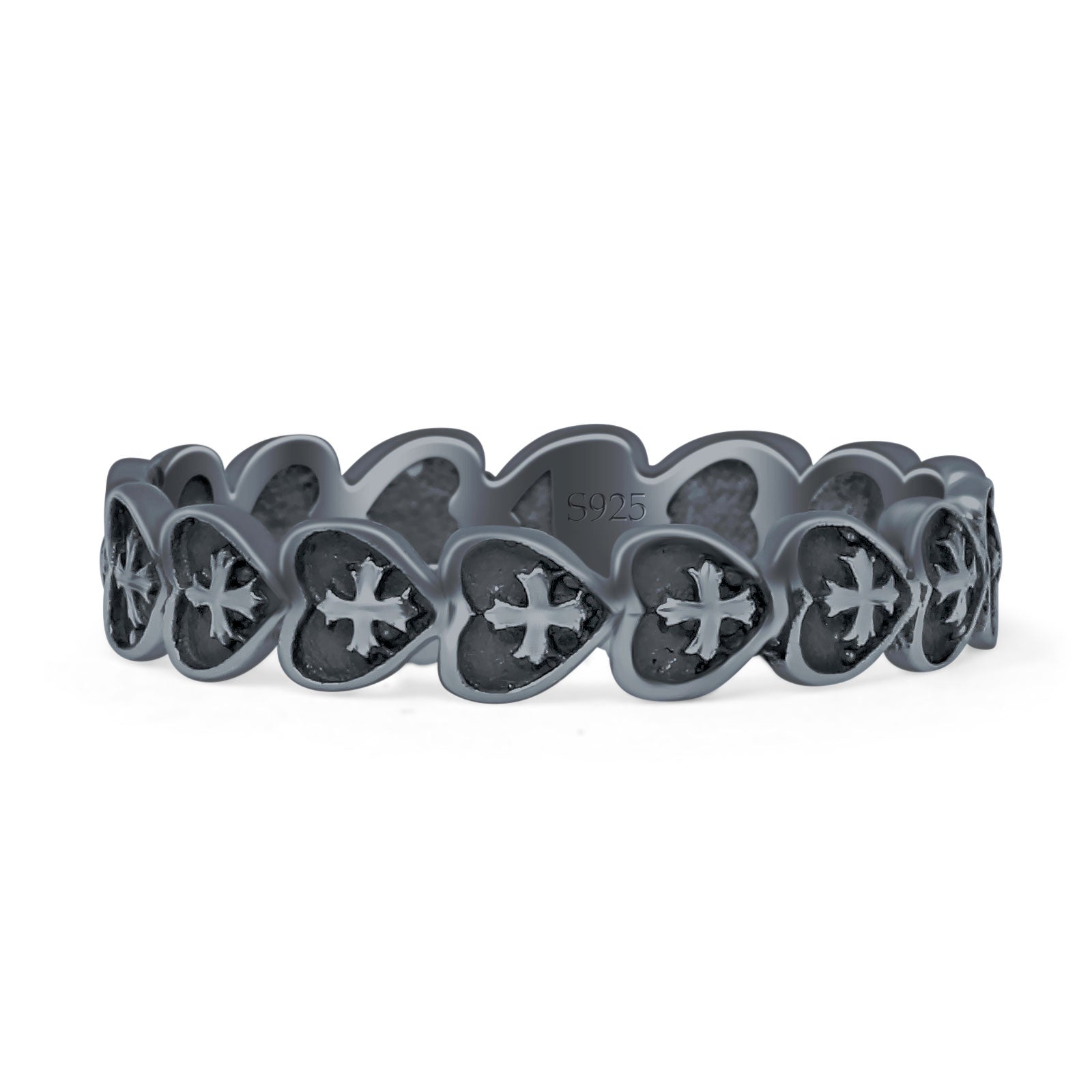 Design: Heart & Cross Ring Oxidized Band.