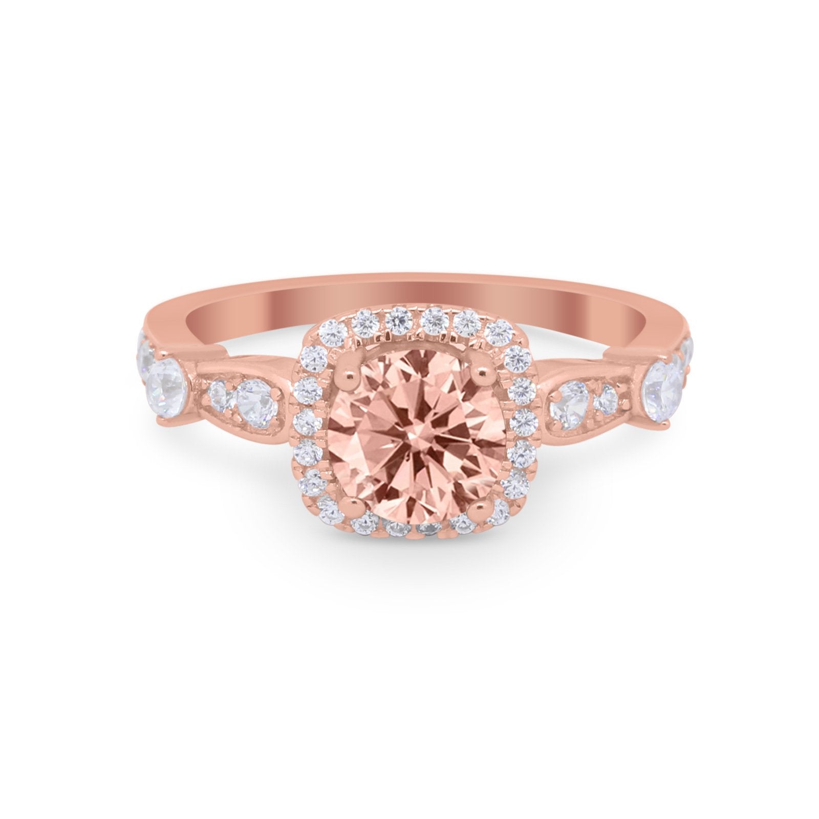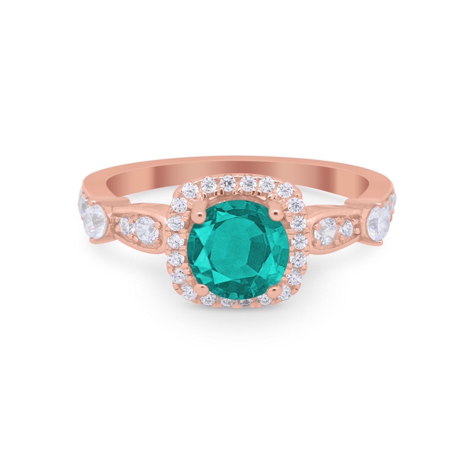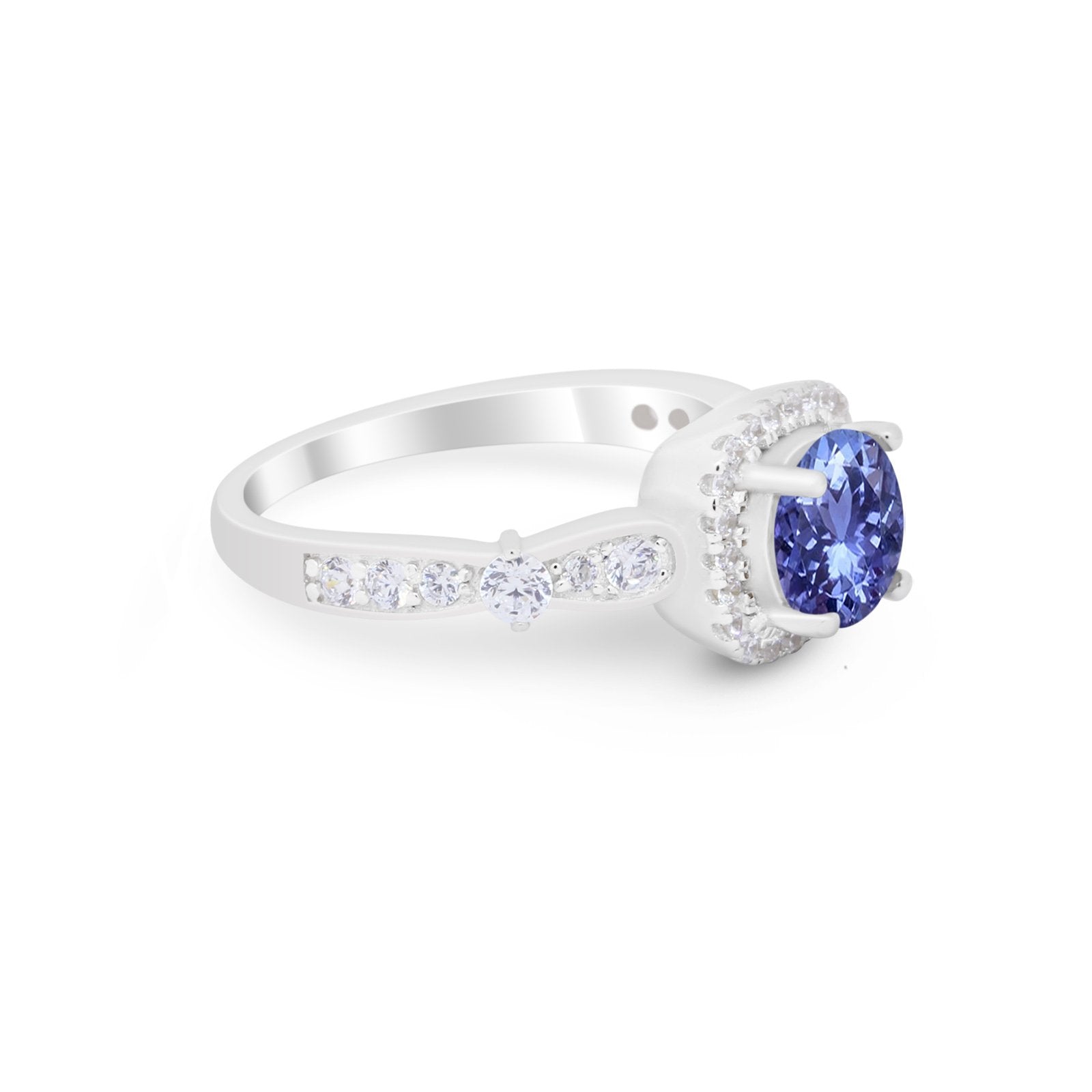 CZ & Blue Sapphire CZ Rose Tone Silver