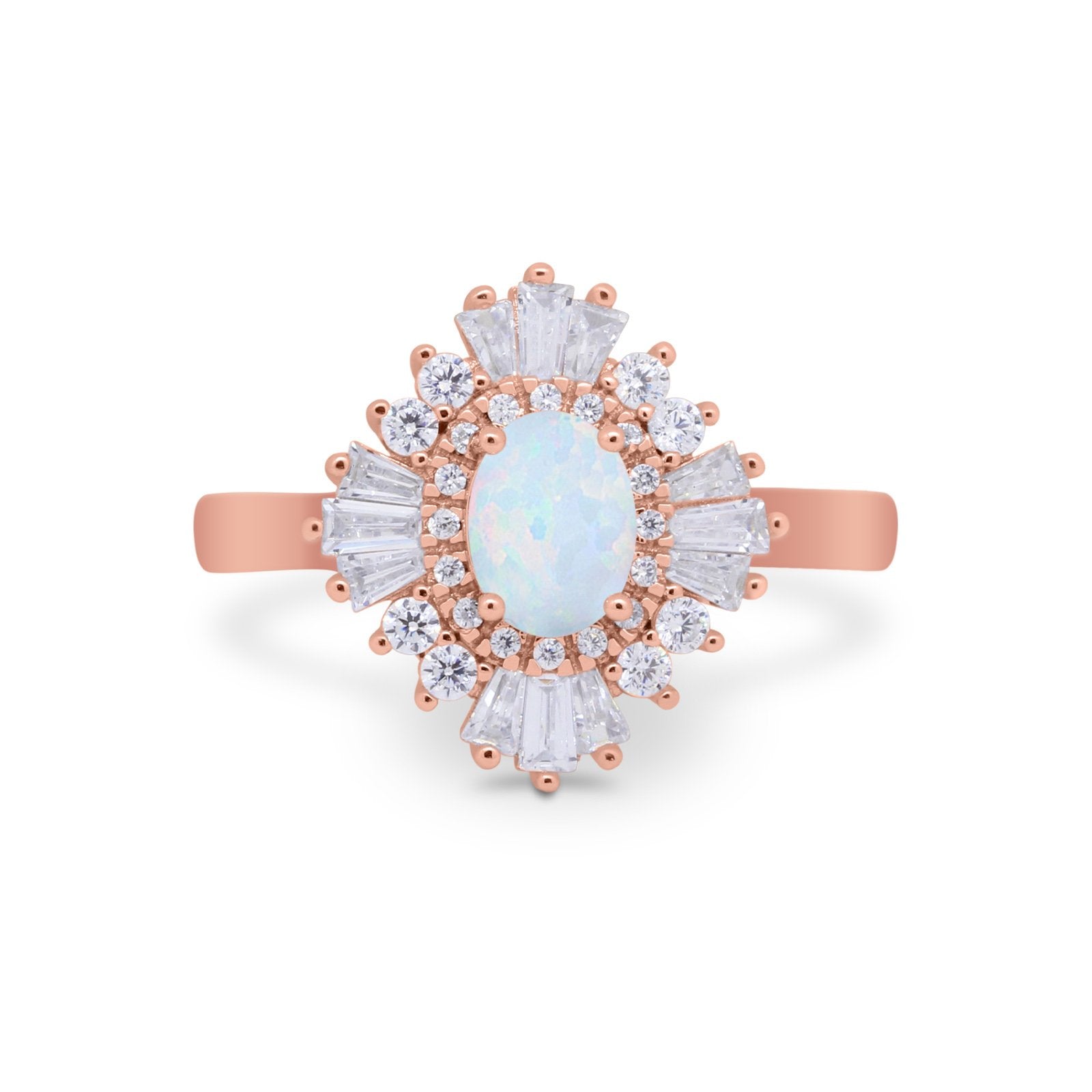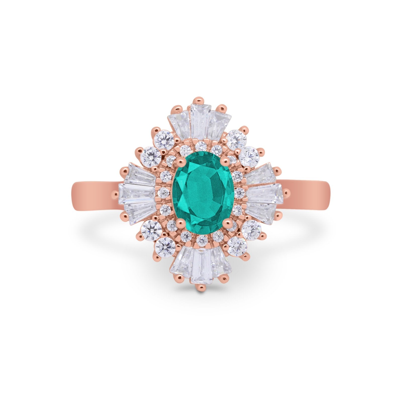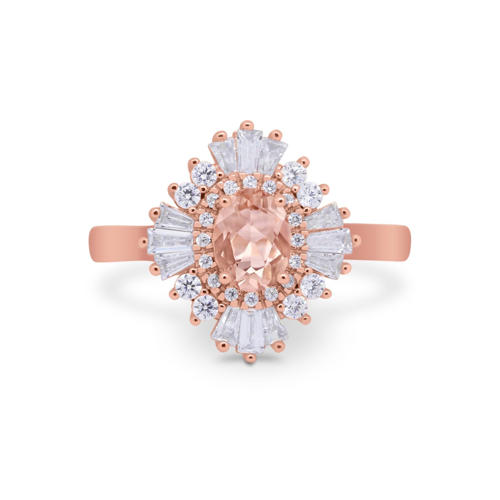 CZ & Blue Sapphire CZ Rose Tone Silver