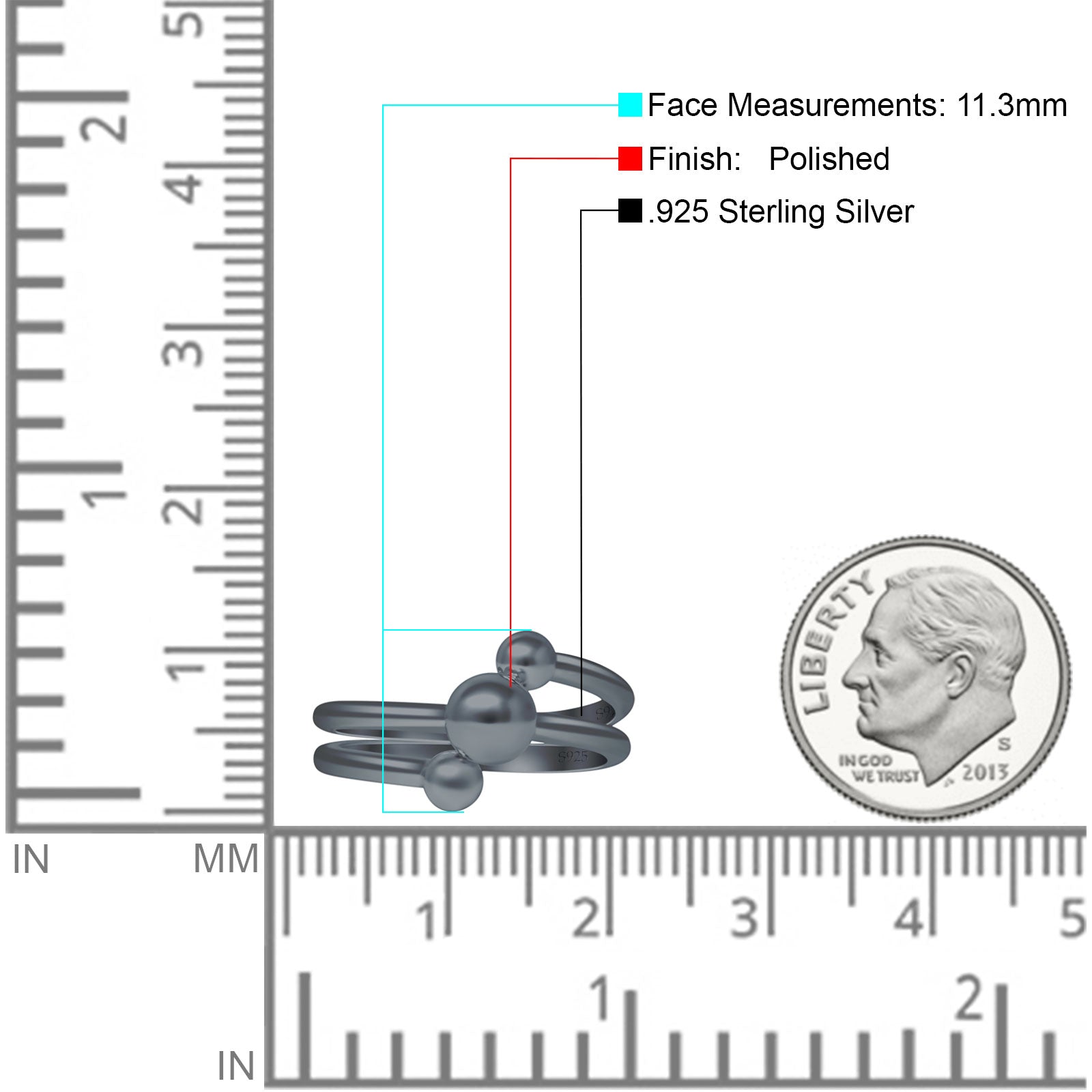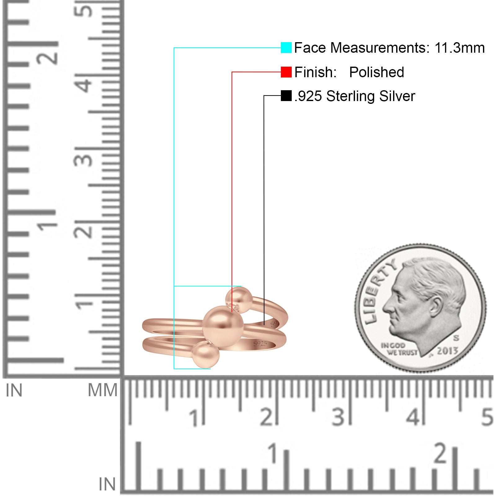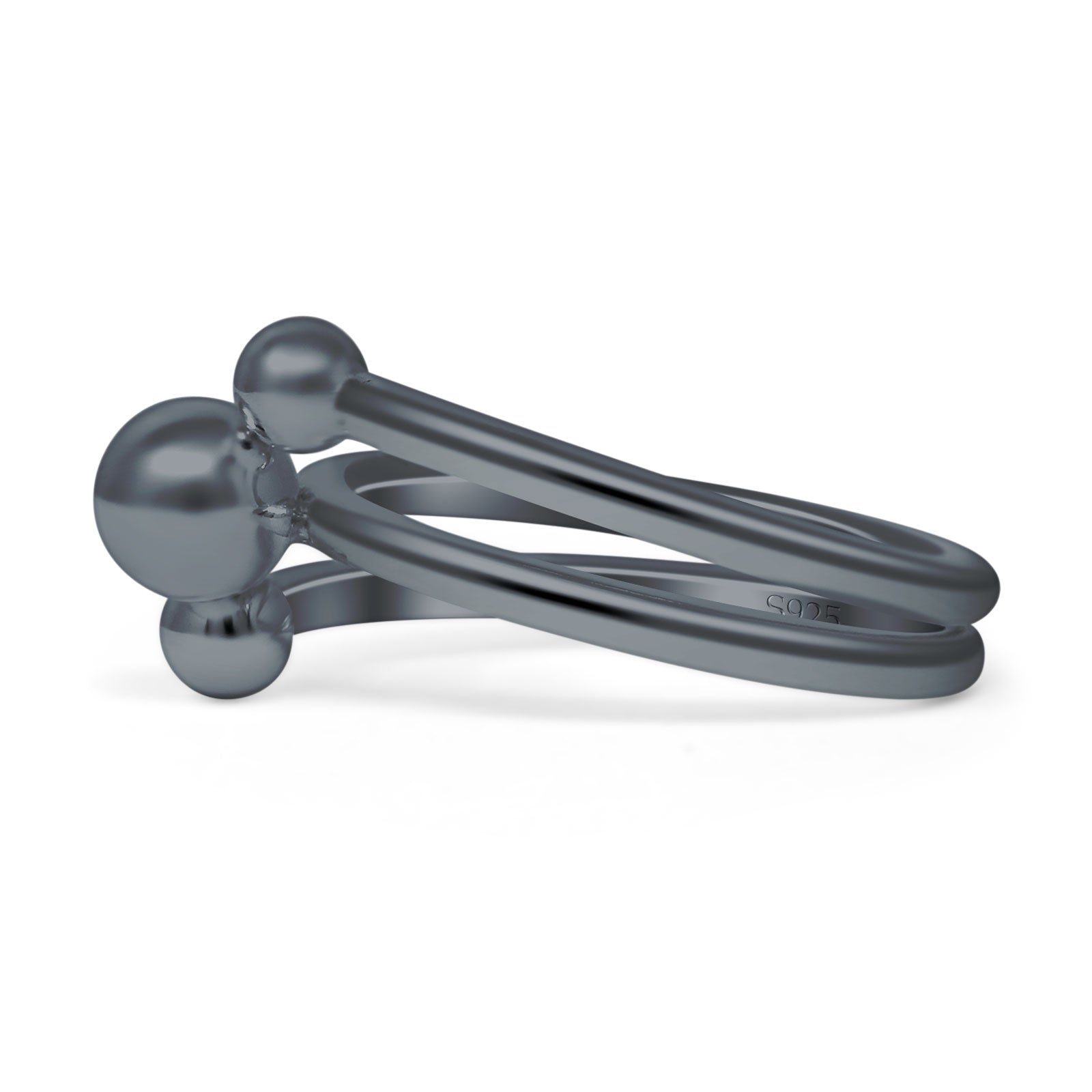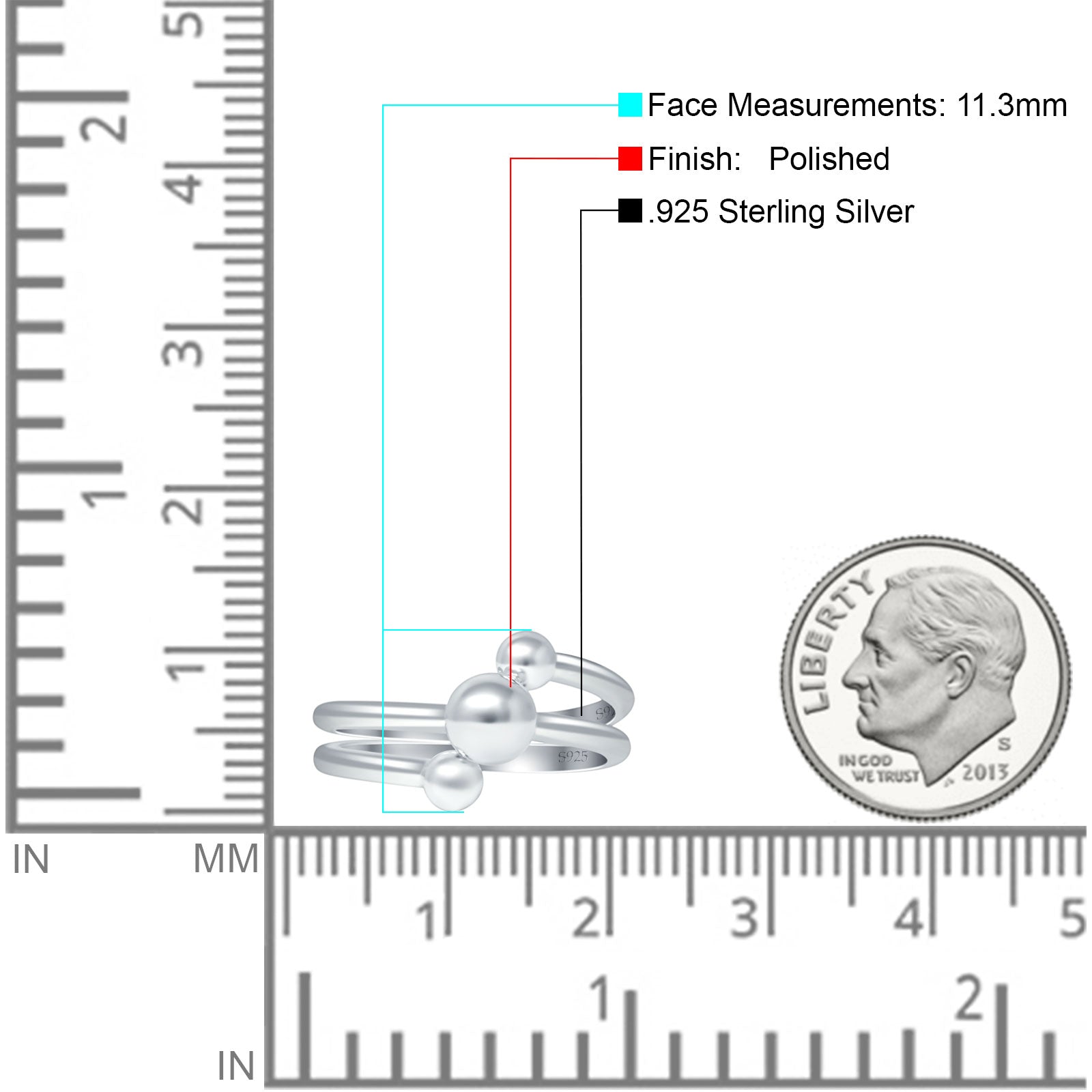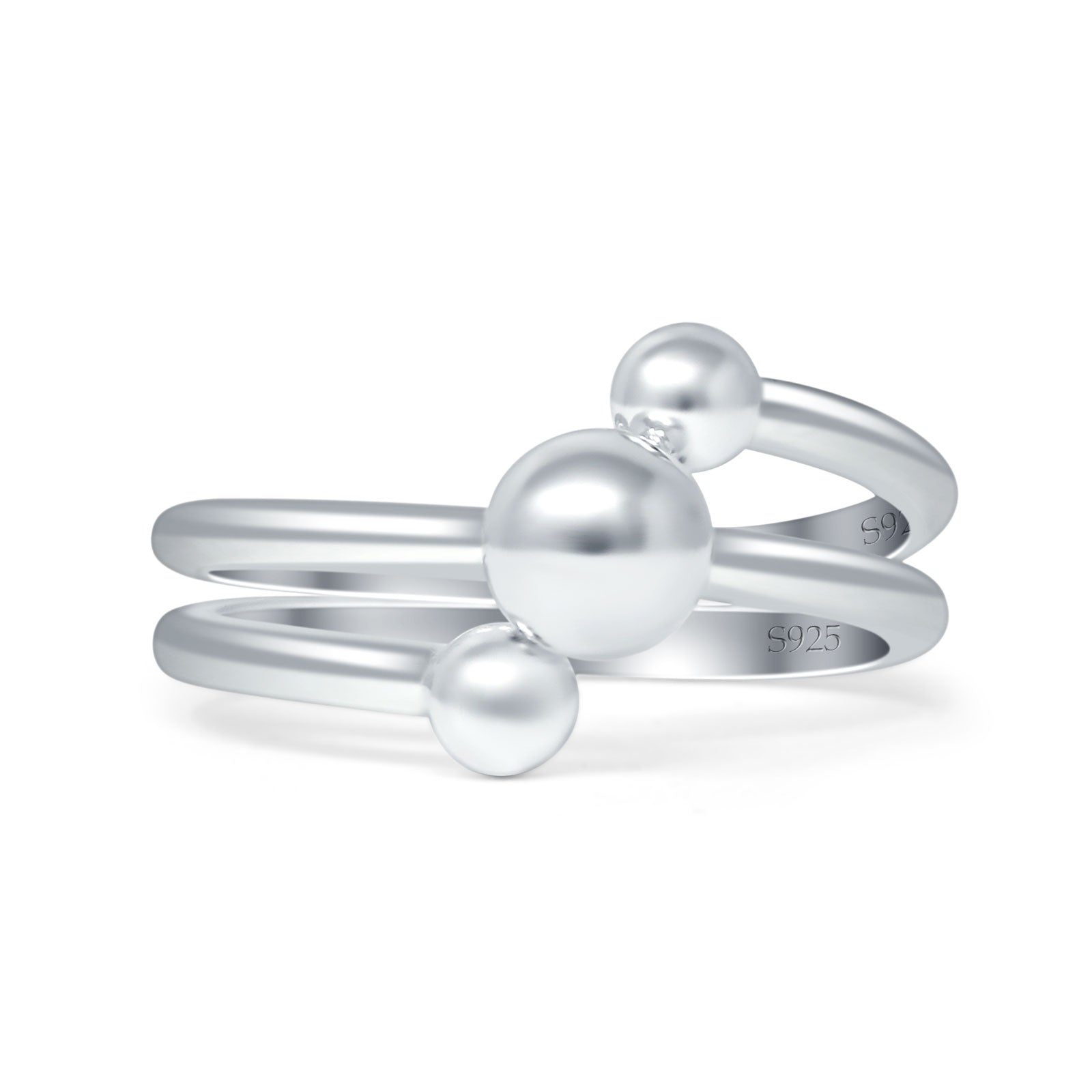 Vintage Style 11.3mm Three Ball Finger Ring 925 Sterling Silver