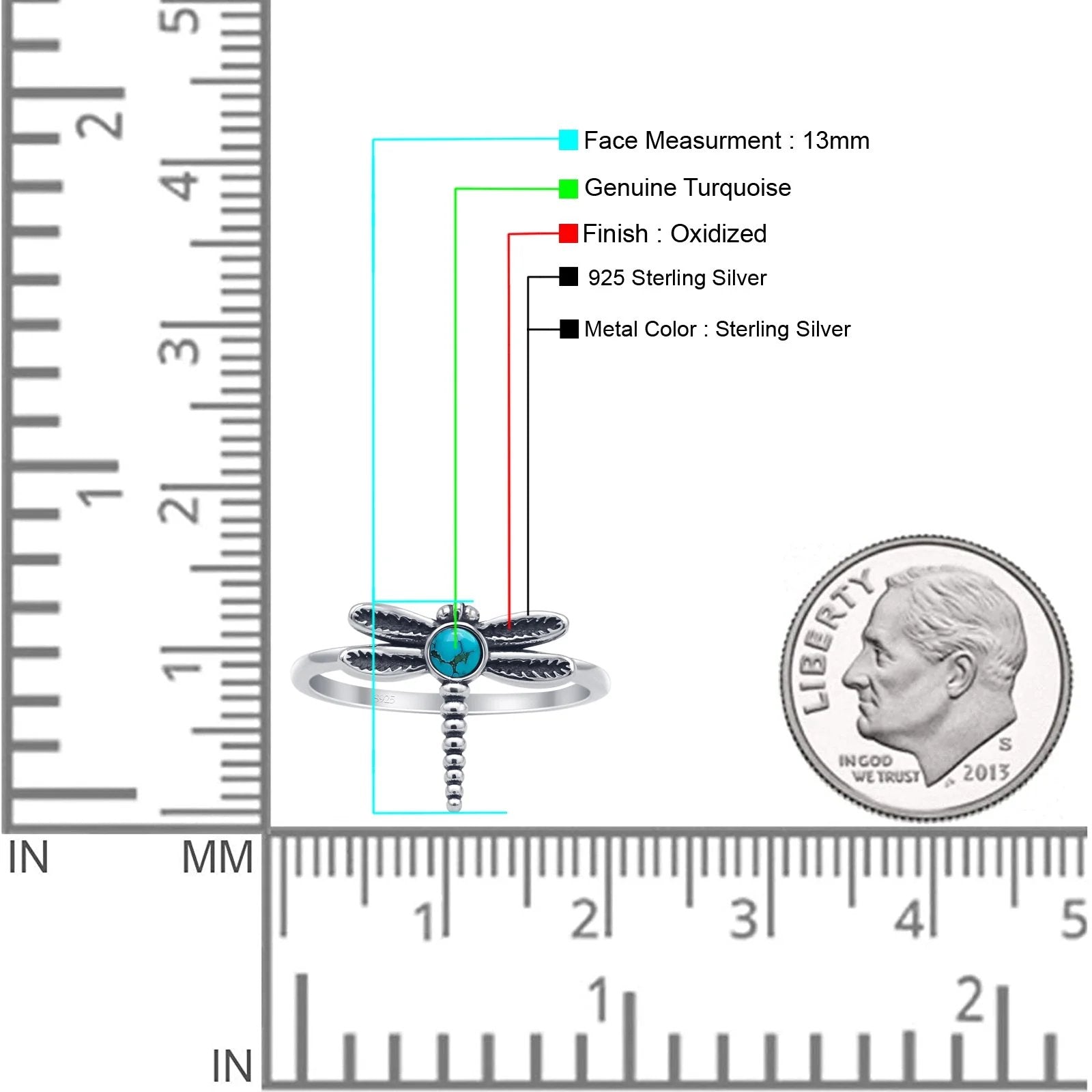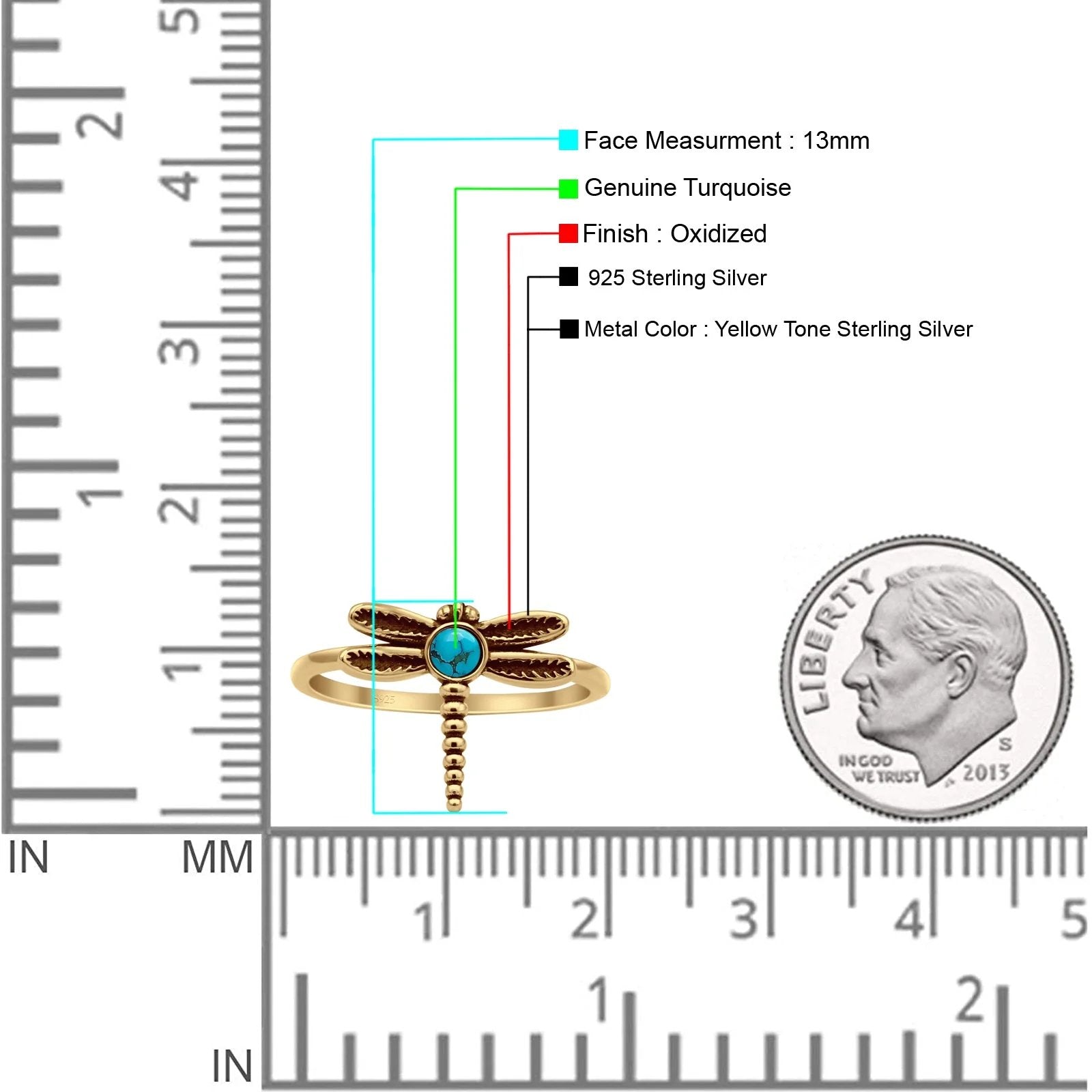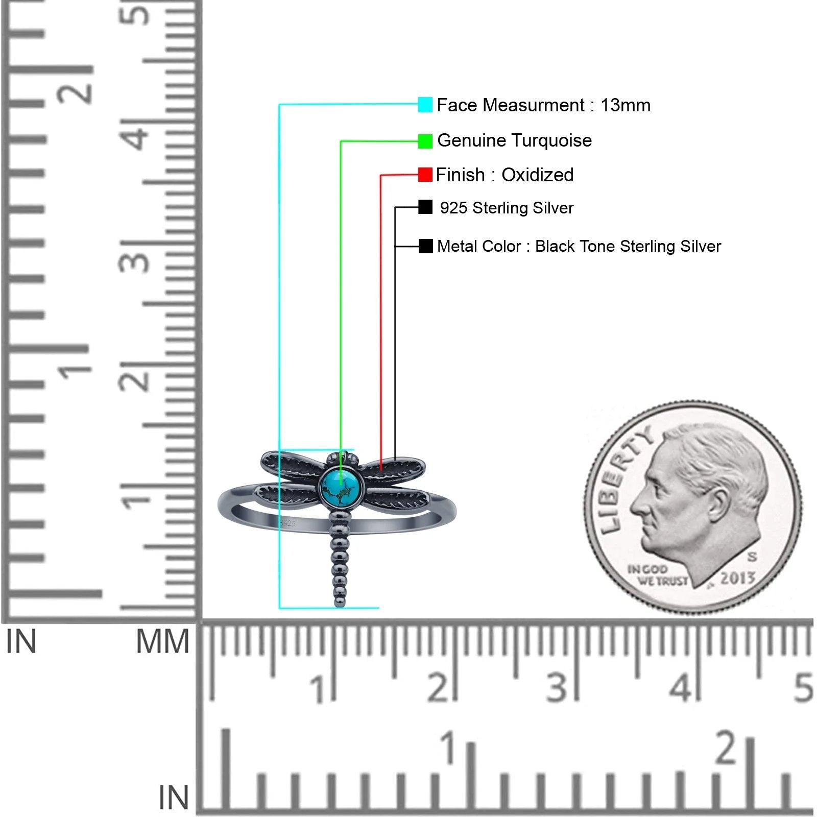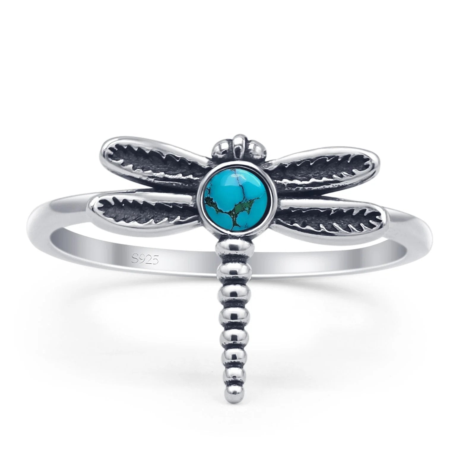 Design: Round Turquoise Oxidized Dragonfly Ring.