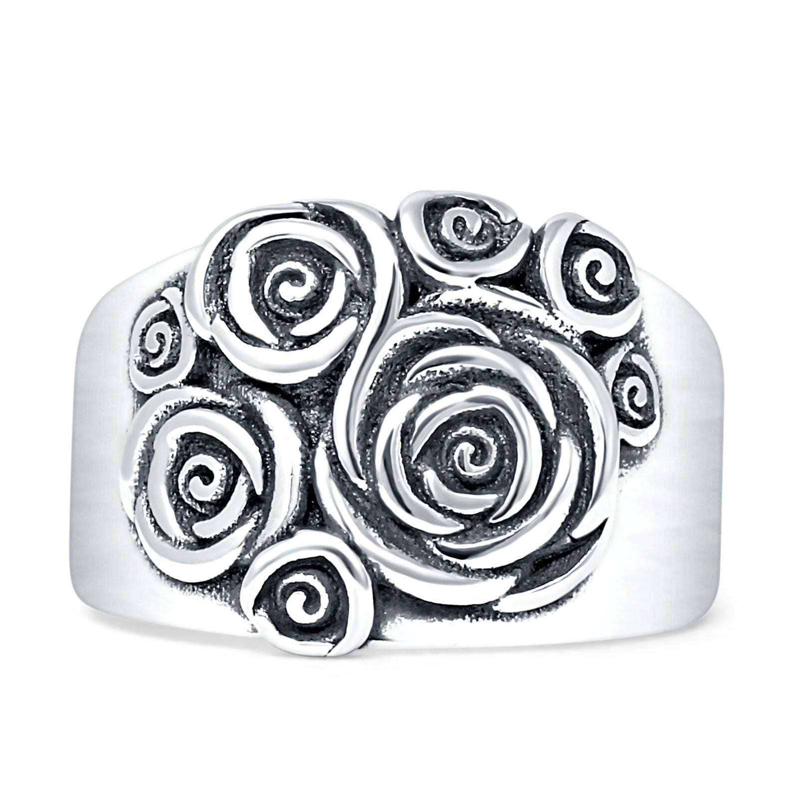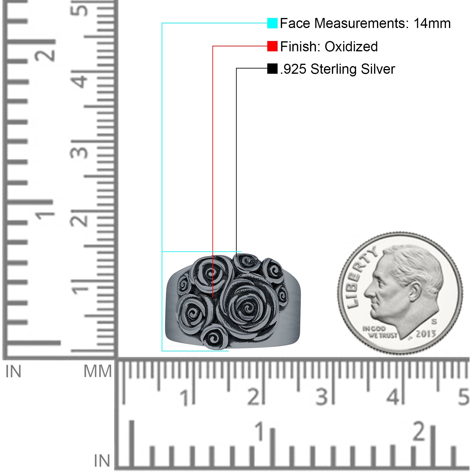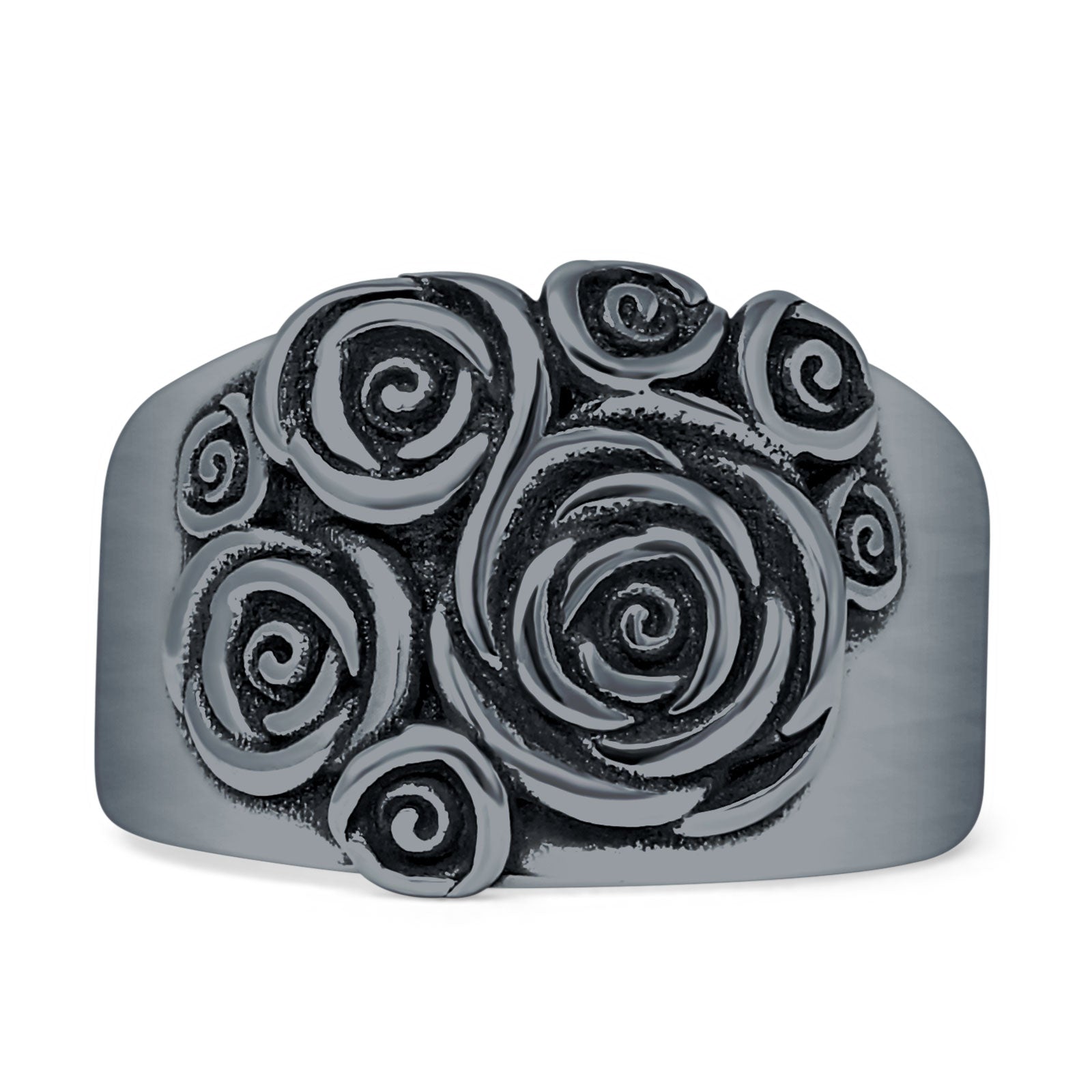 Vintage Style 14mm Rose Flower Ring Oxidized 925 Sterling Silver
