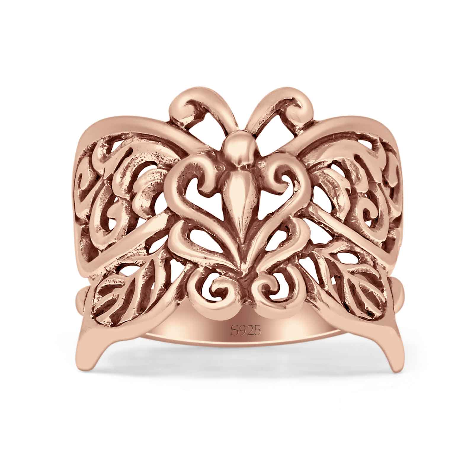 CZ & Blue Sapphire CZ Rose Tone Silver