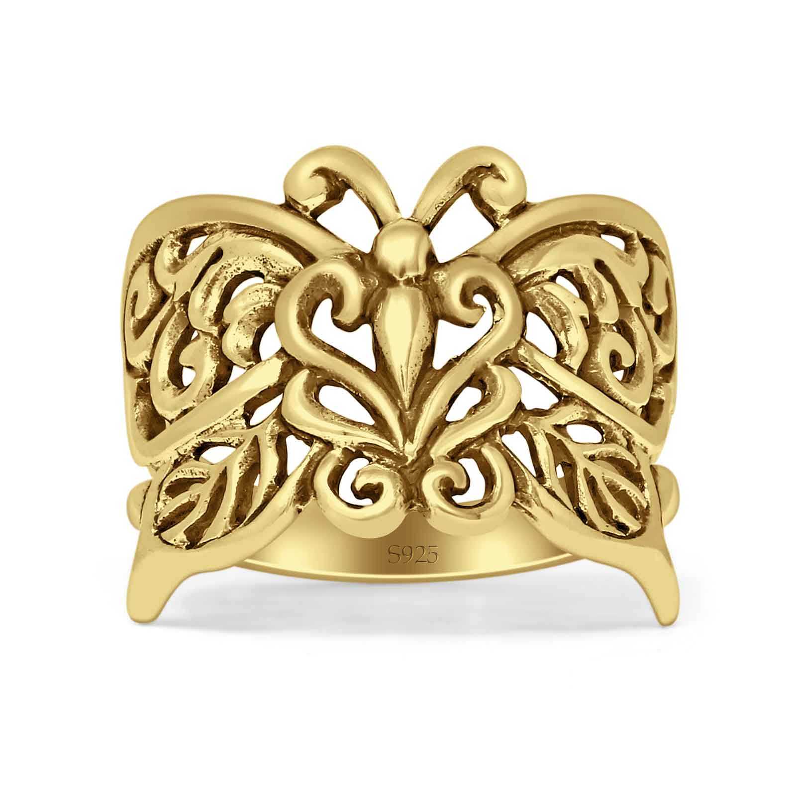 CZ & Blue Sapphire CZ Yellow Tone Silver