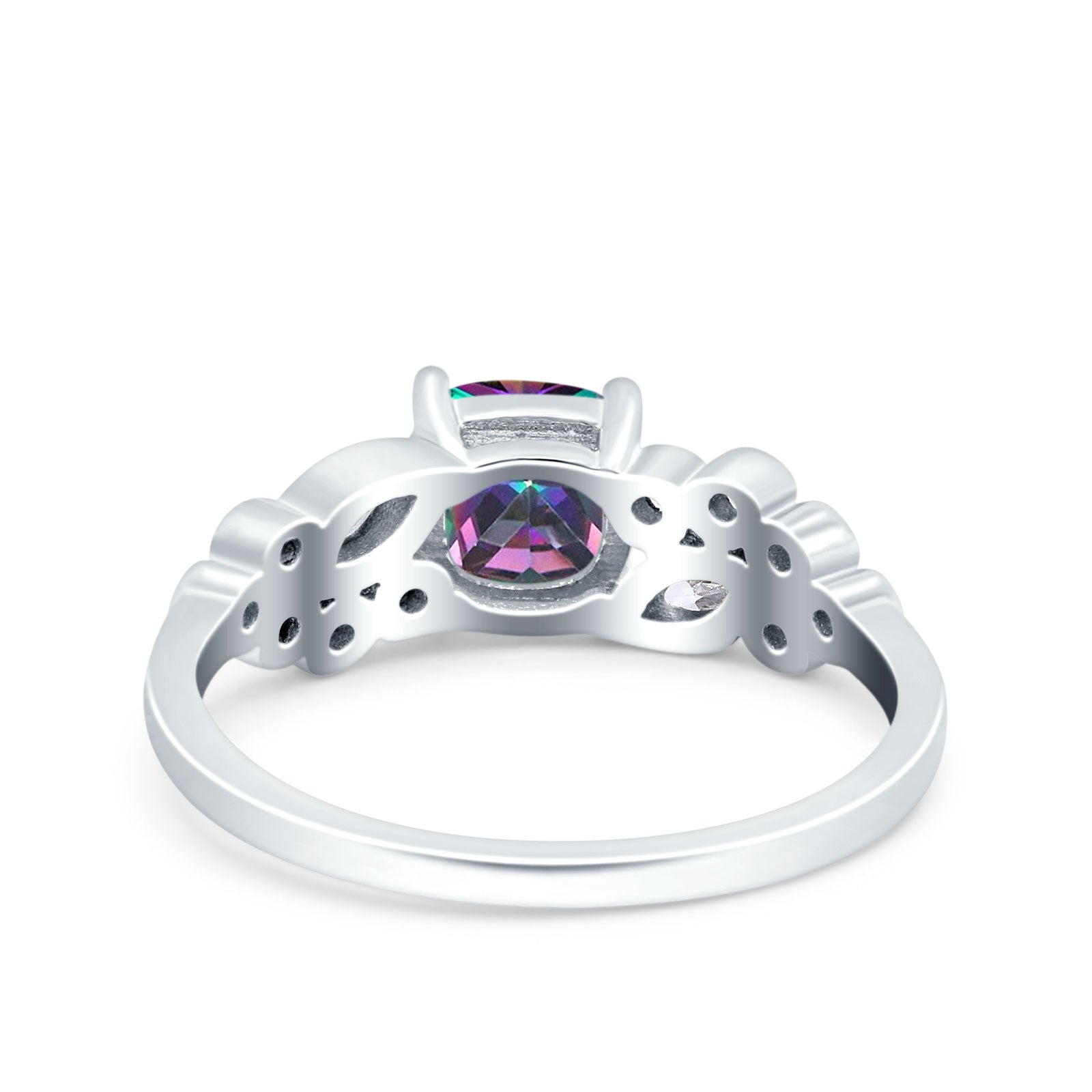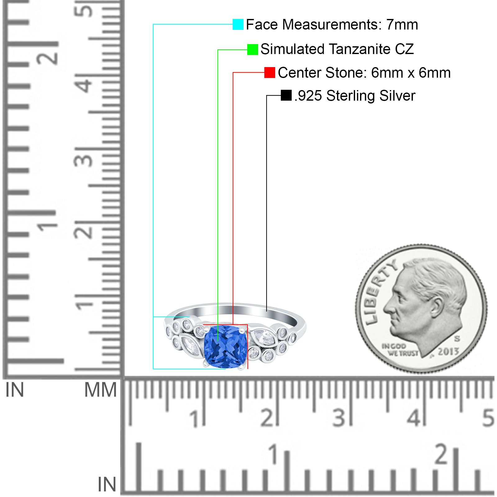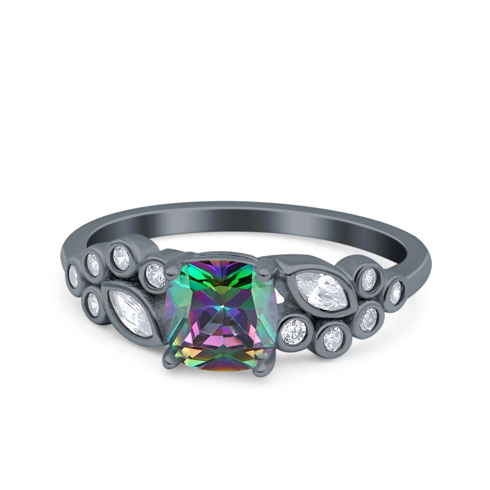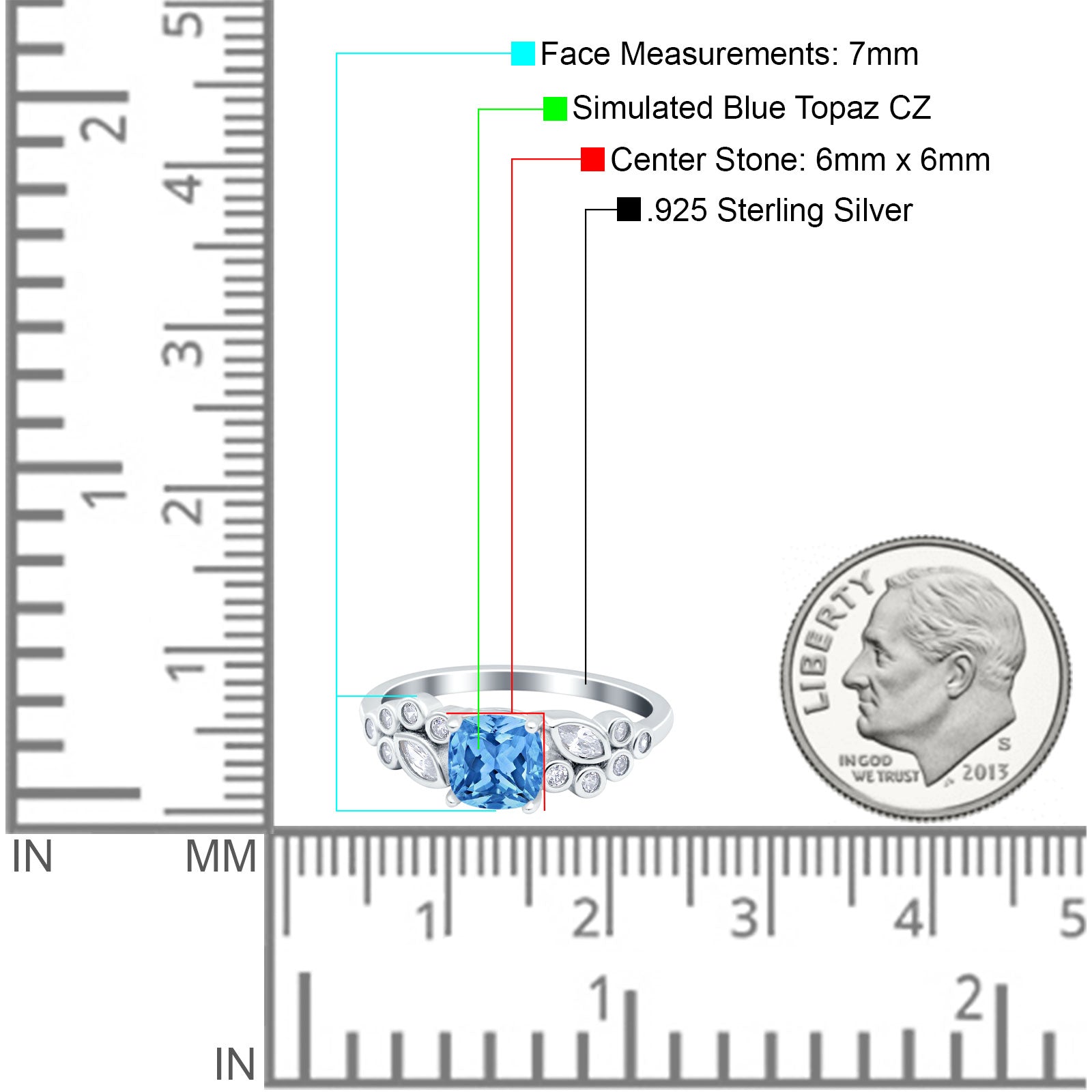 Vintage Style Art Deco Cushion and Marquise Wedding Engagement Ring Simulated Cubic Zirconia 925 Sterling Silver