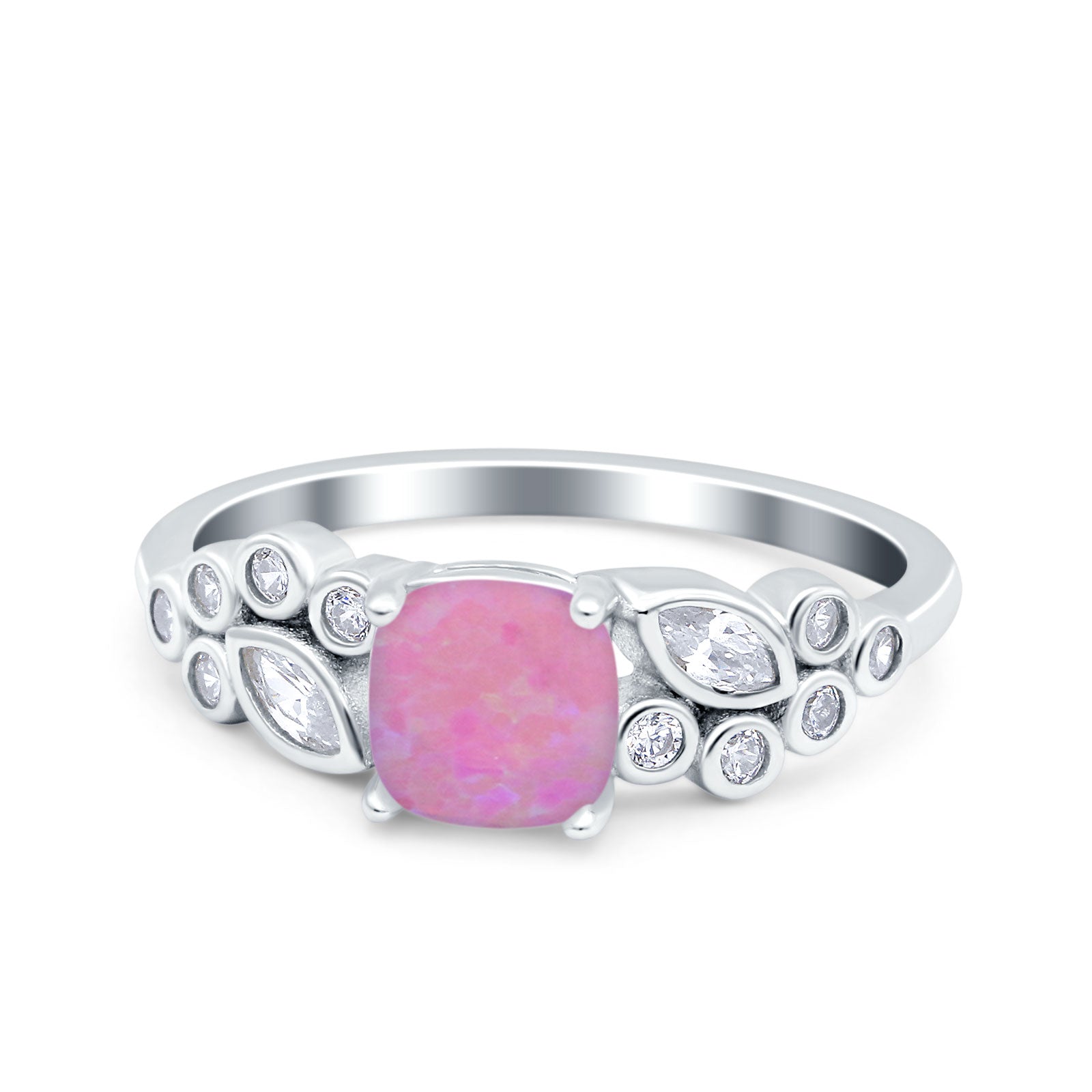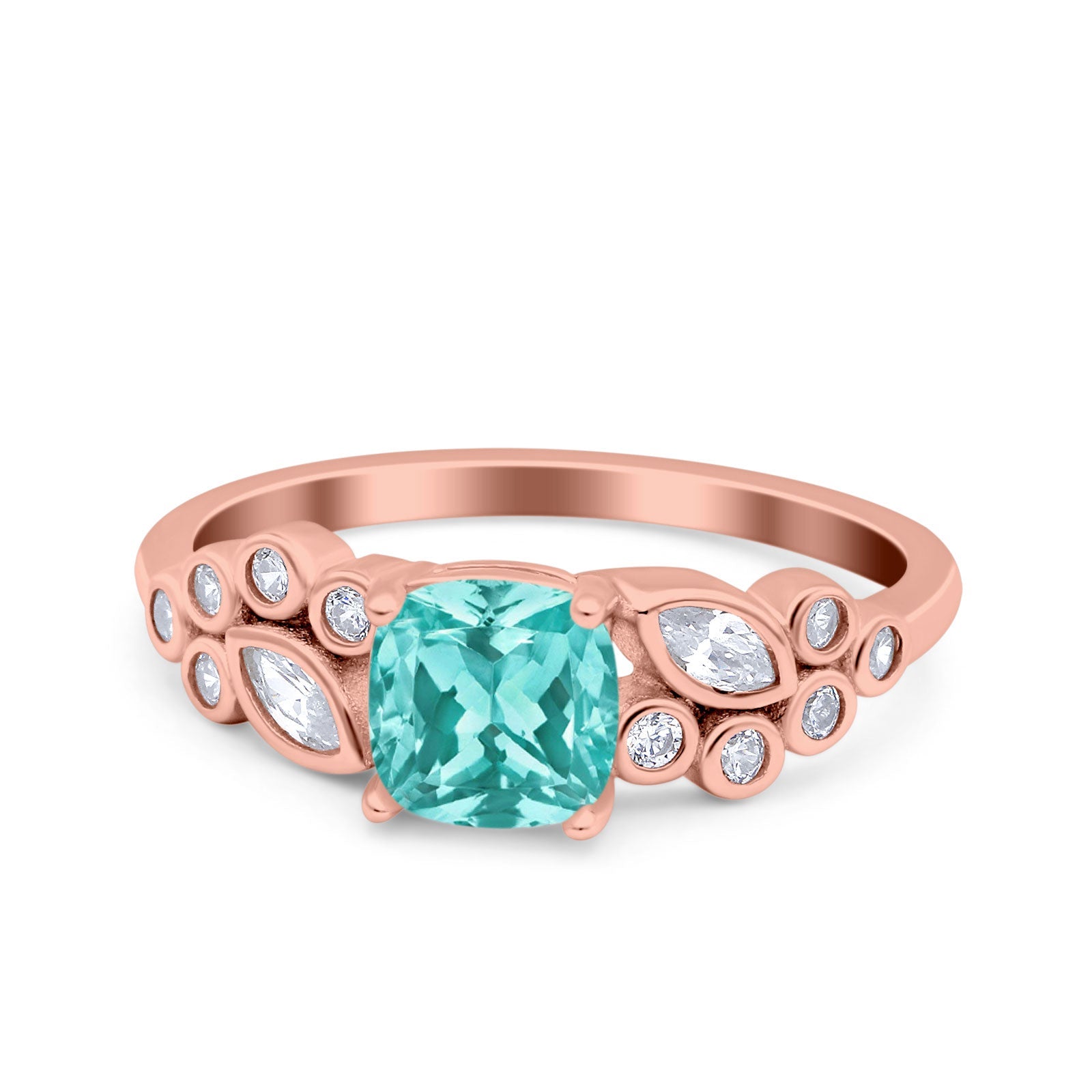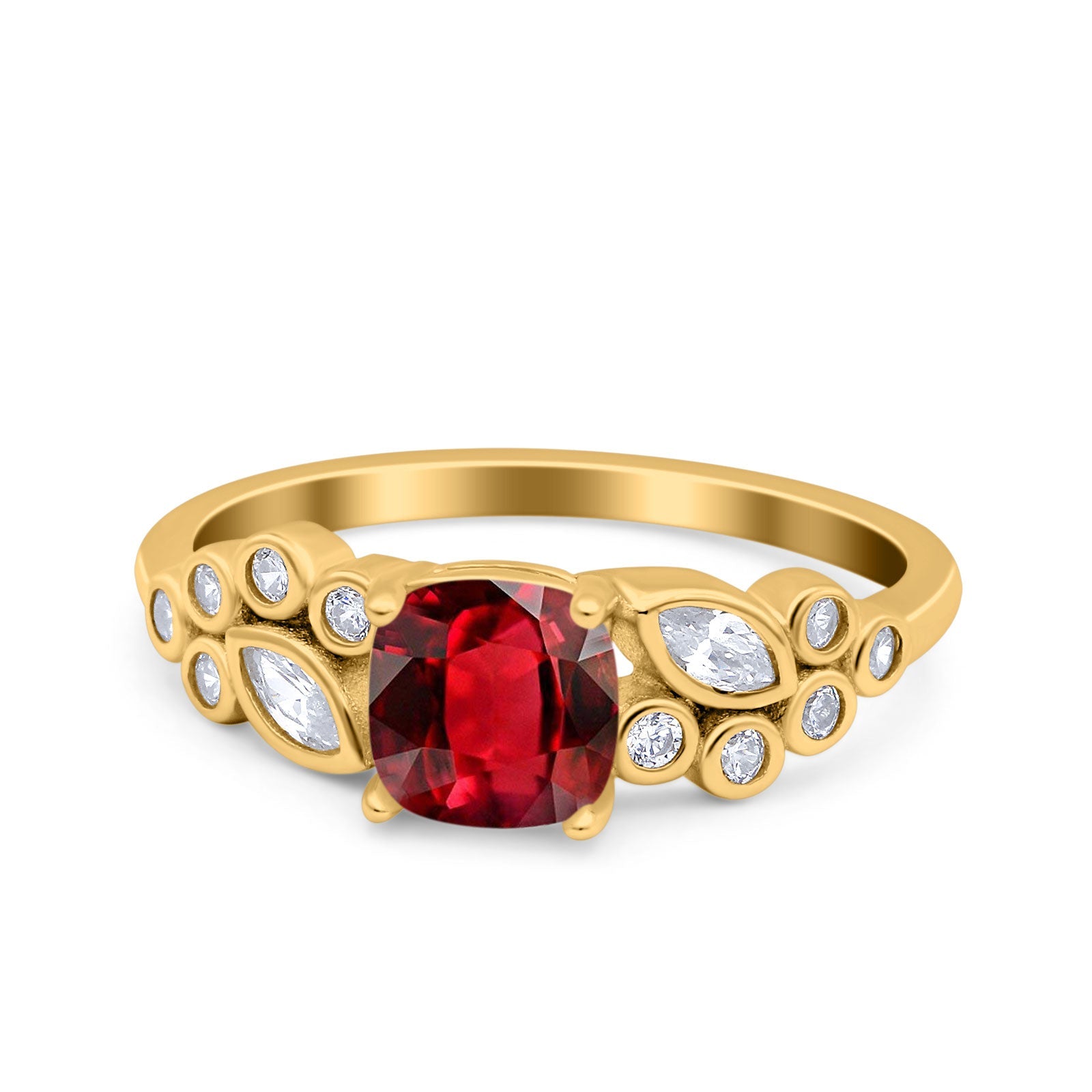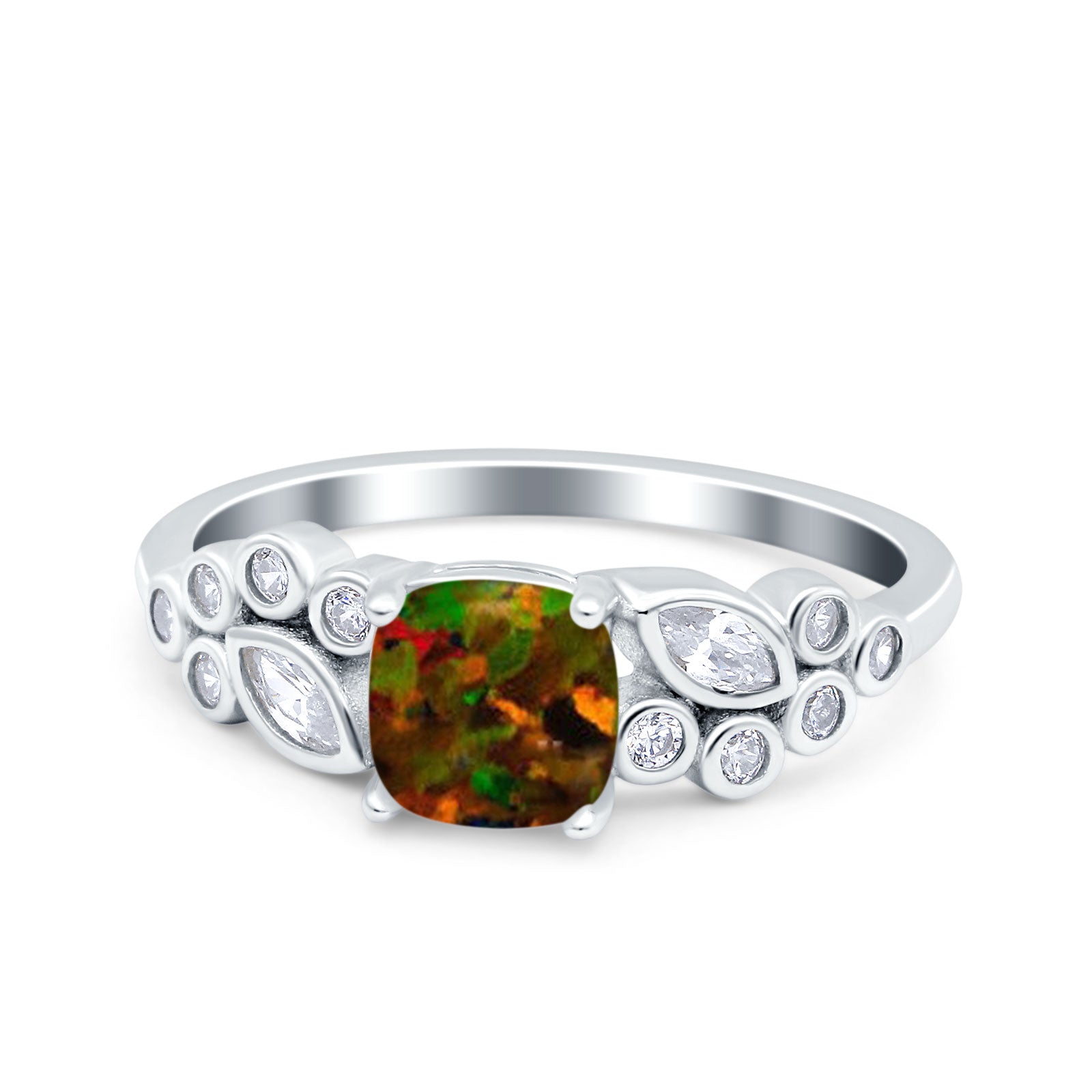 Vintage Style Art Deco Cushion and Marquise Wedding Engagement Ring Simulated Cubic Zirconia 925 Sterling Silver