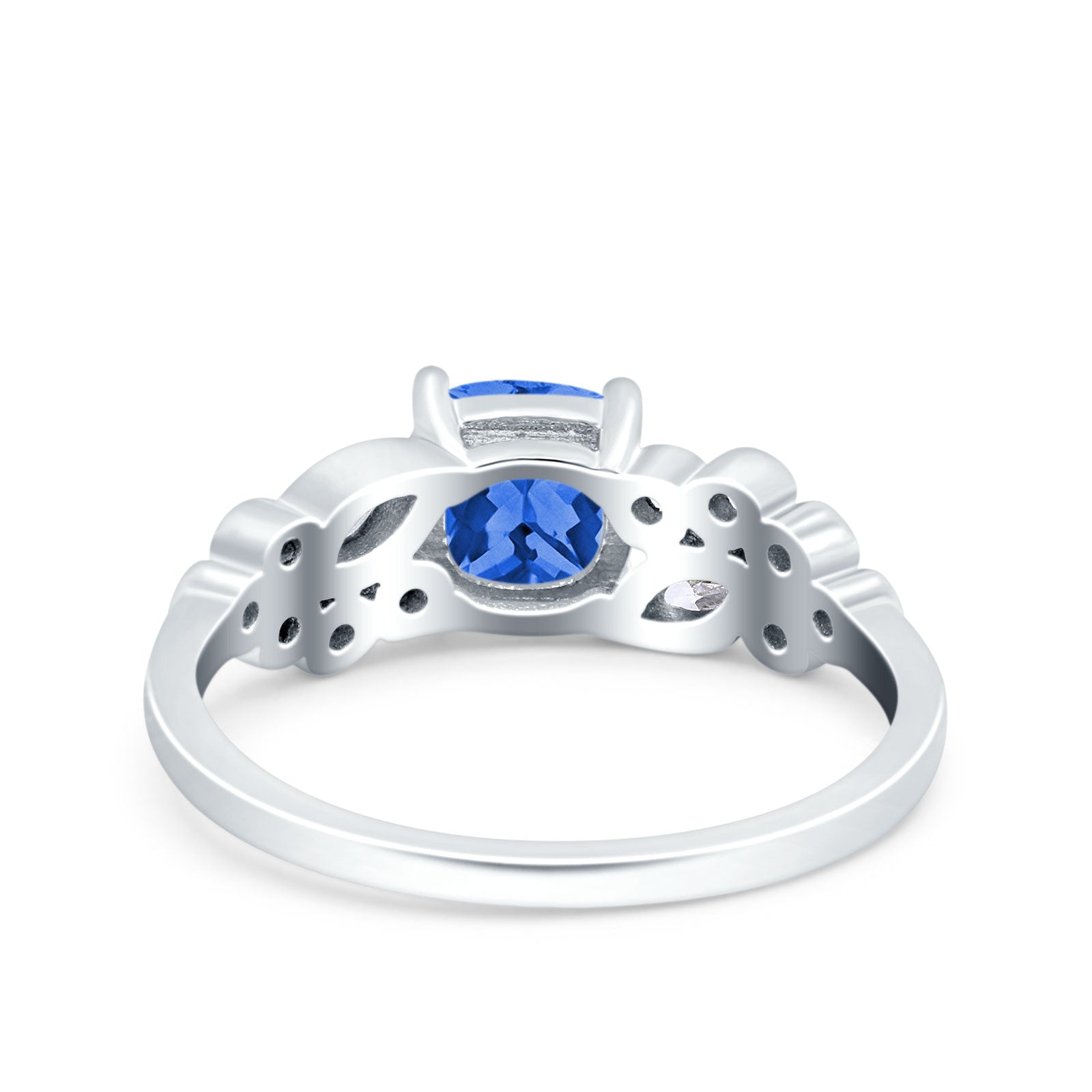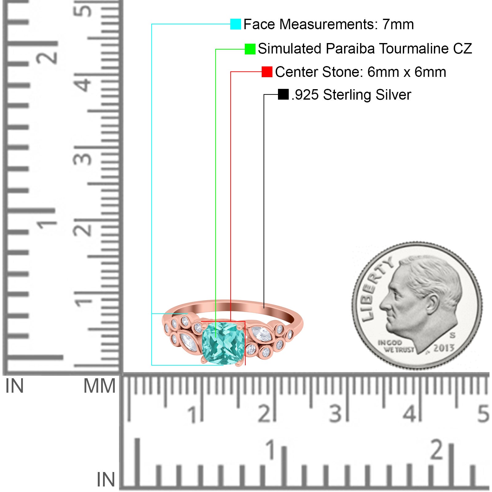 CZ & Blue Sapphire CZ Rose Tone Silver