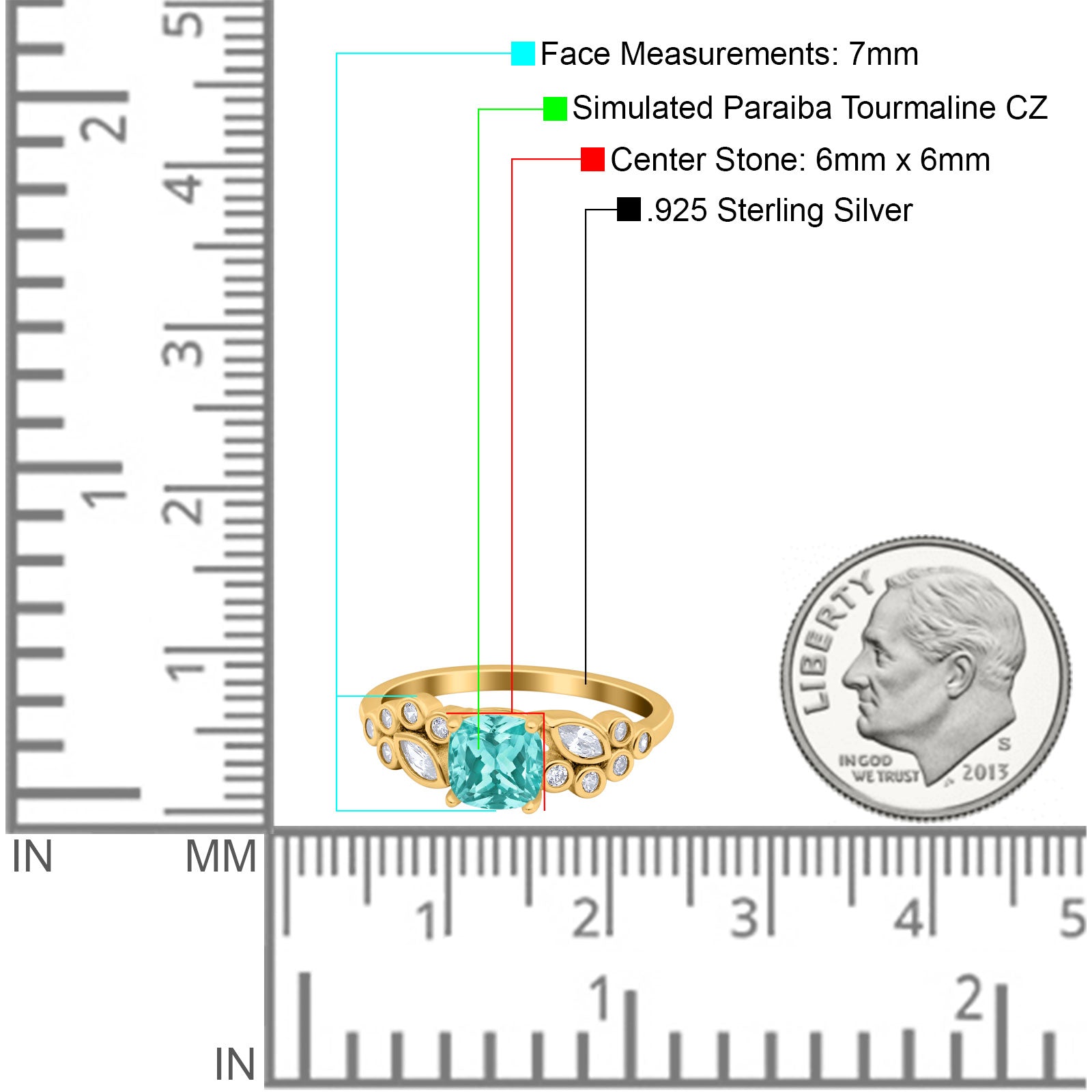 CZ & Blue Sapphire CZ Yellow Tone Silver