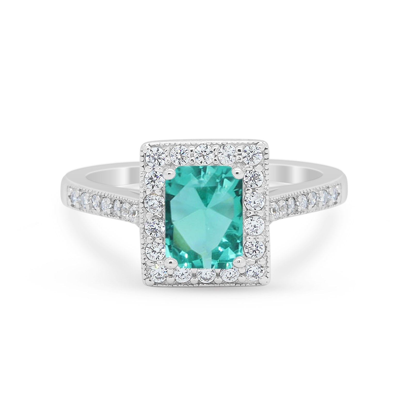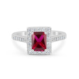 Vintage Style Emerald Cut Engagement Ring 925 Sterling Silver Simulated Cubic Zirconia