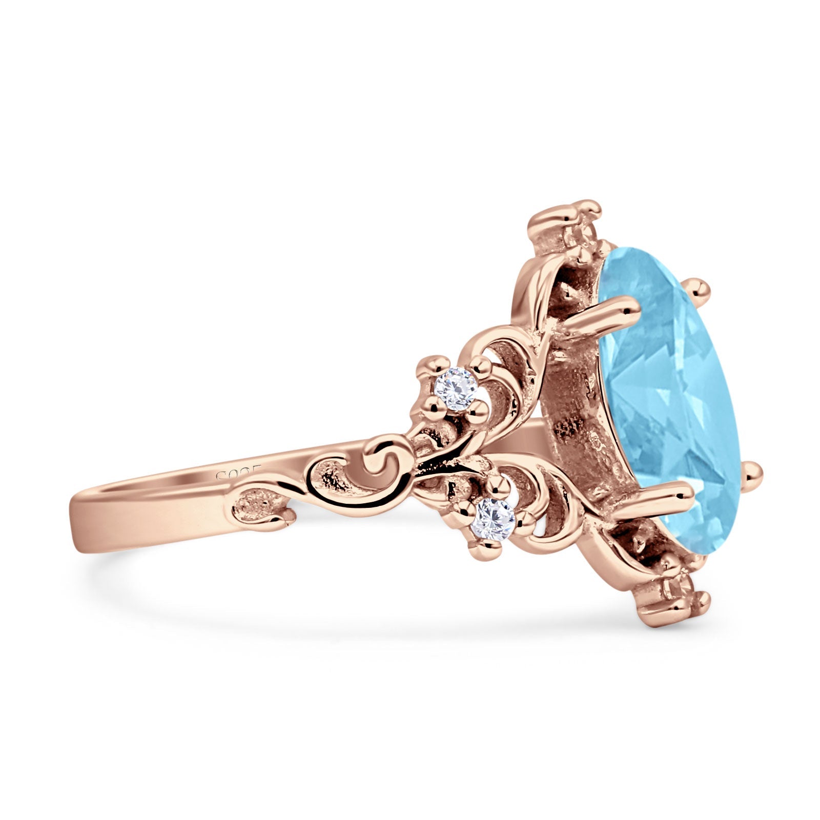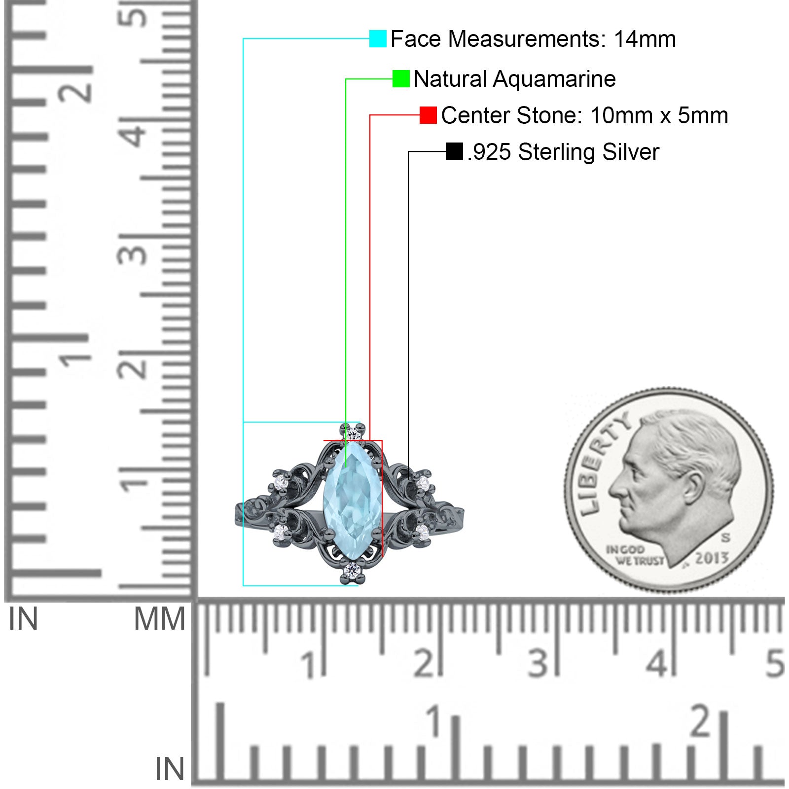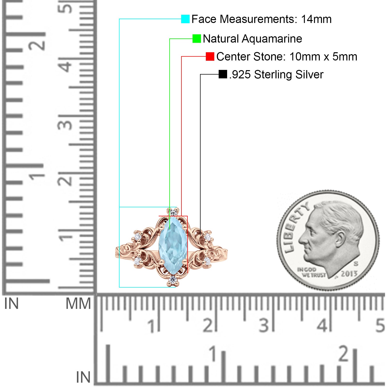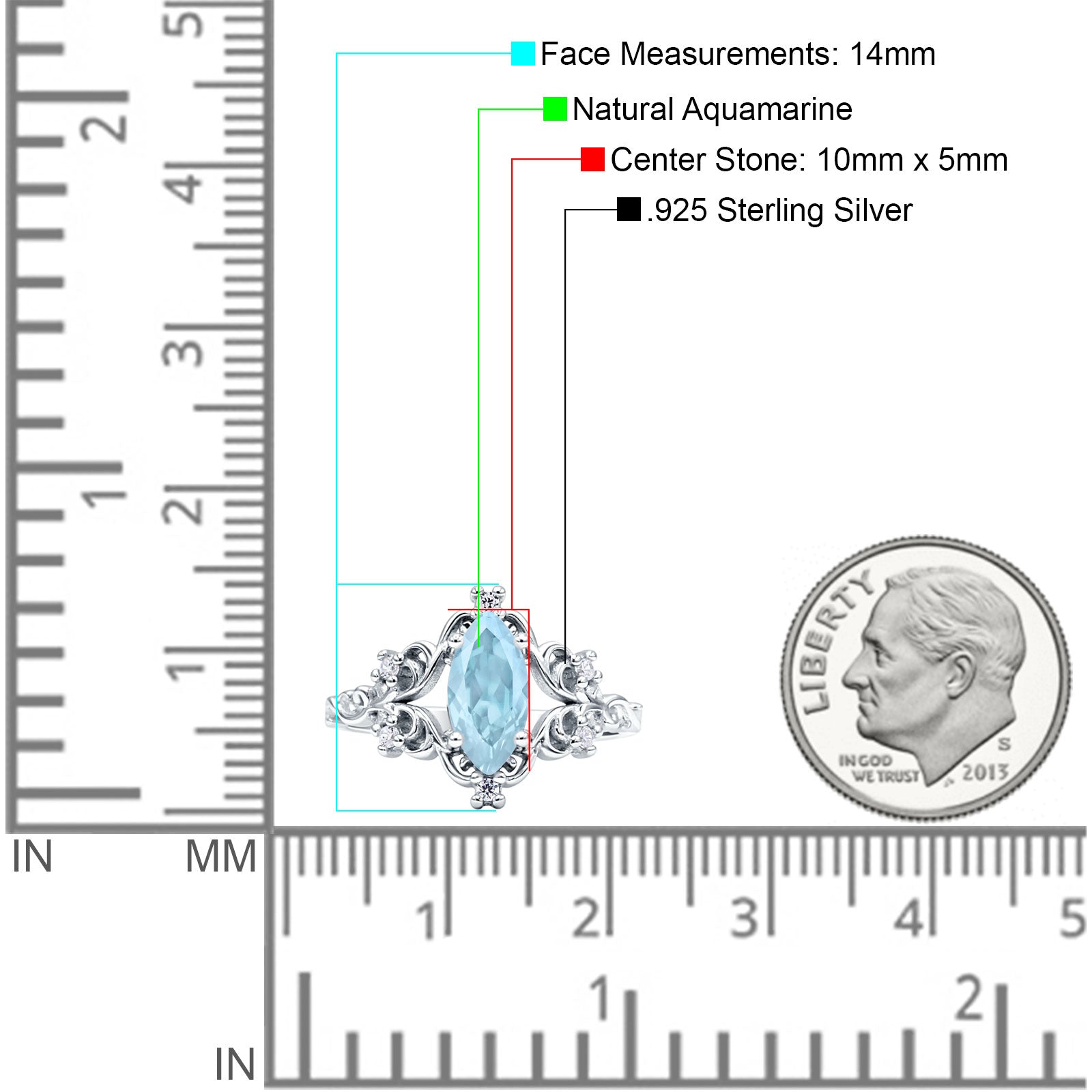 Vintage Style Engagement Ring Marquise Natural Aquamarine 925 Sterling Silver