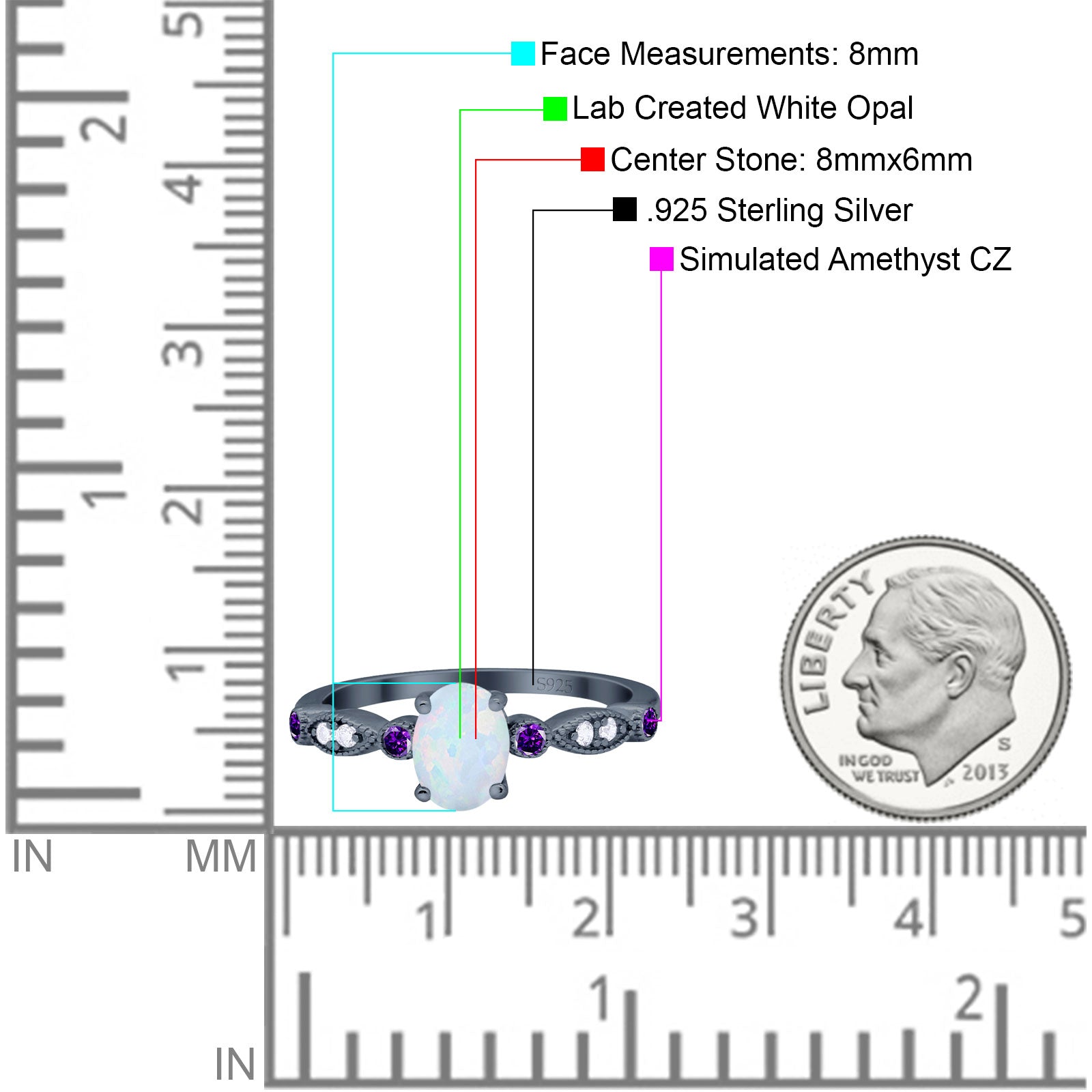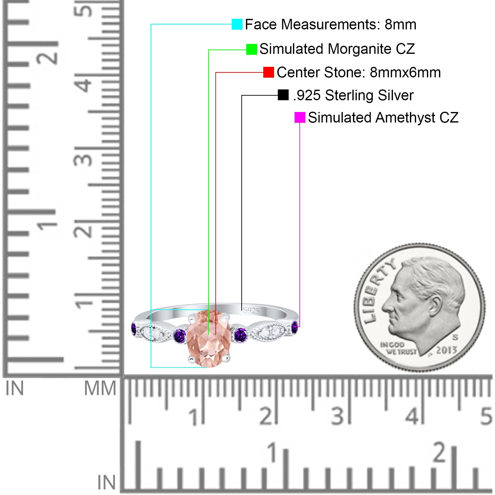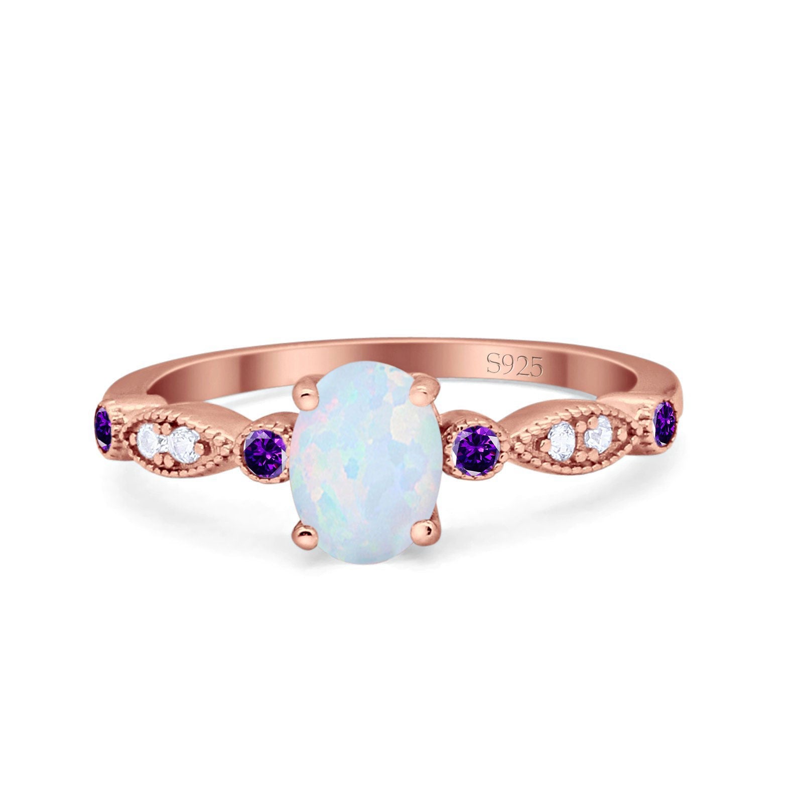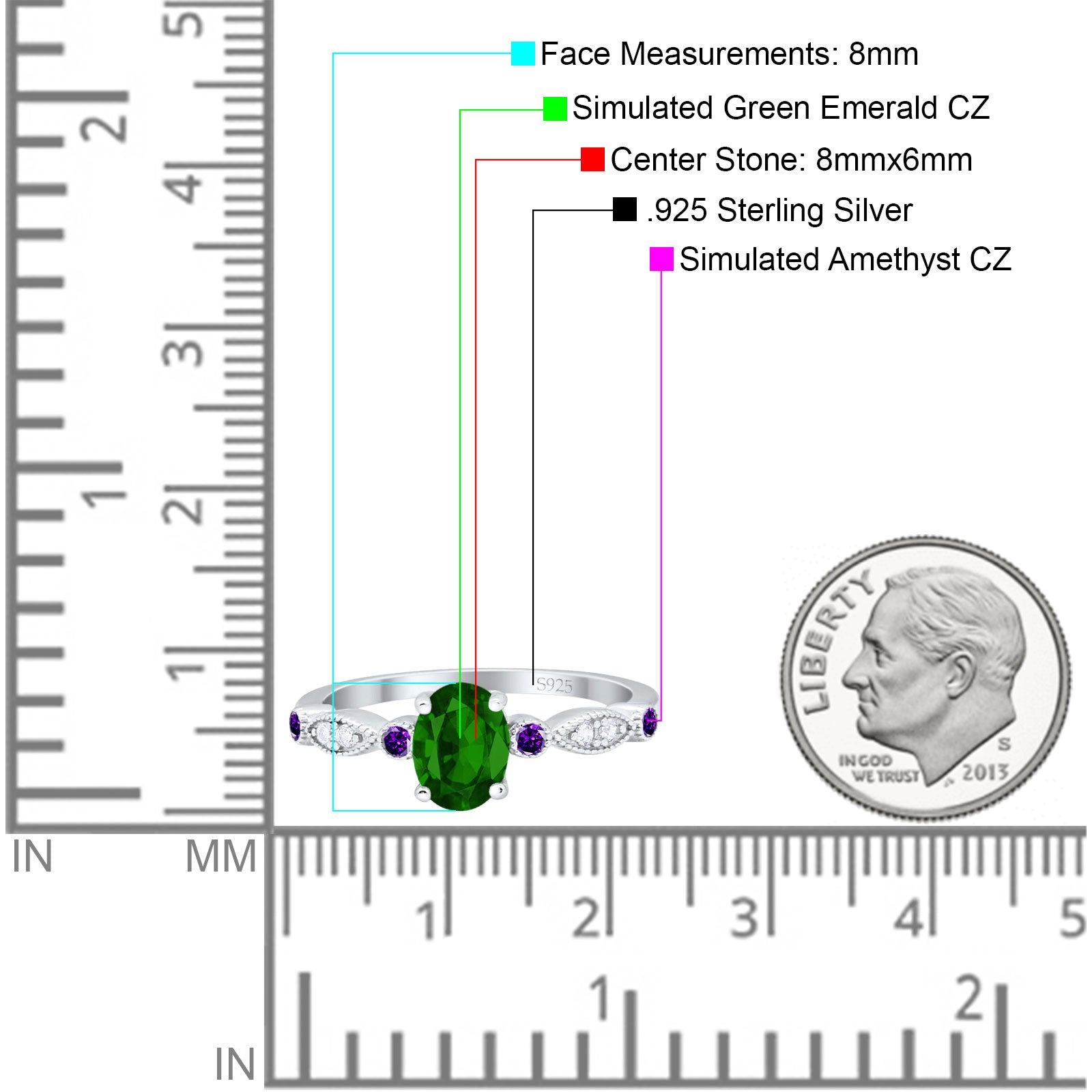 Vintage Style Oval Bridal Wedding Engagement Ring Round Amethyst Simulated Cubic Zirconia 925 Sterling Silver