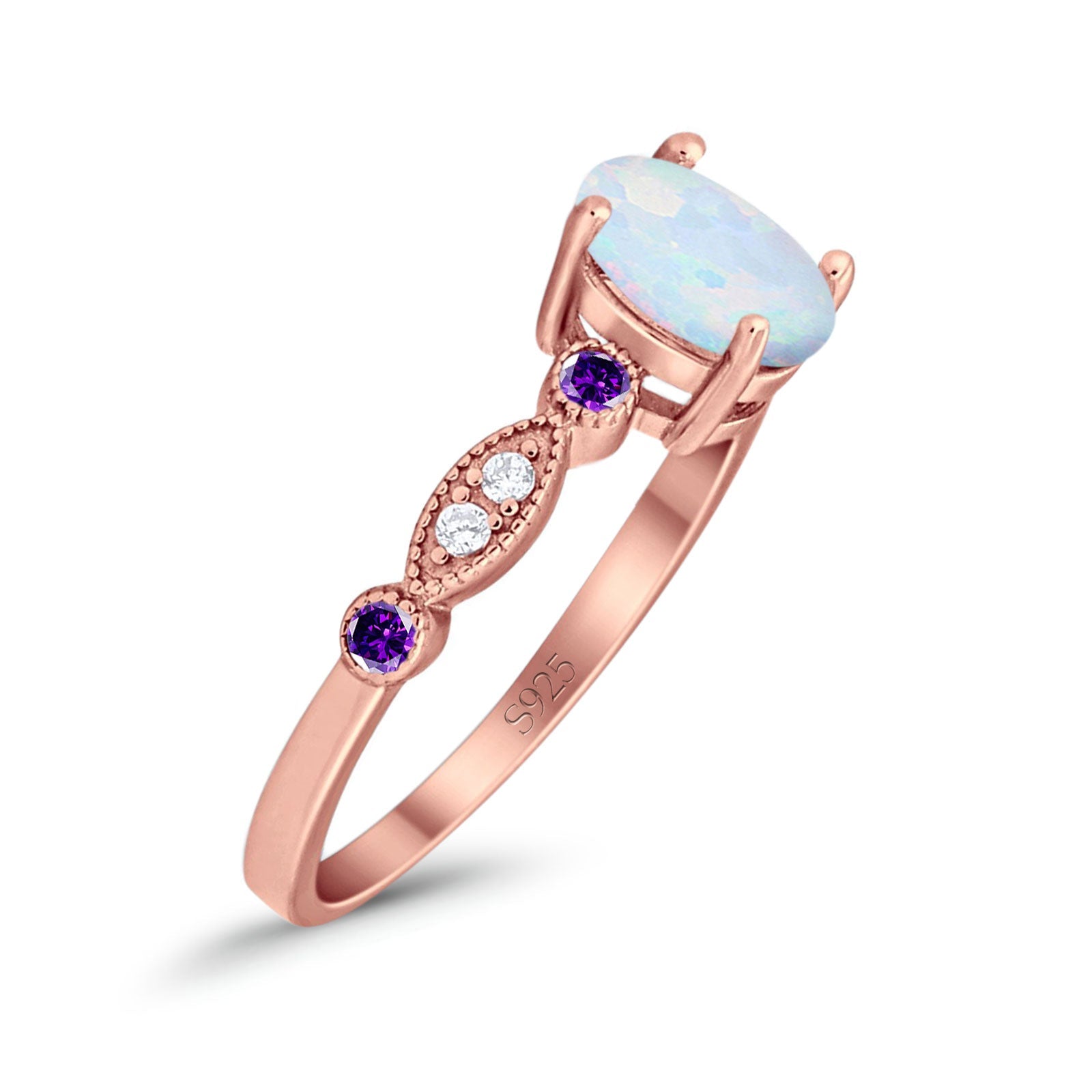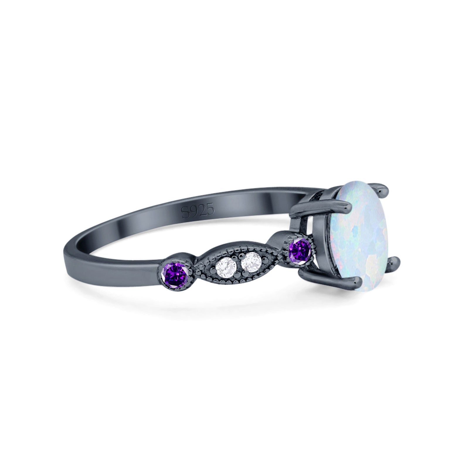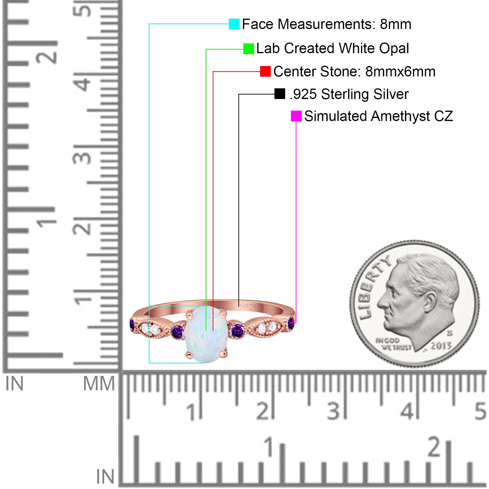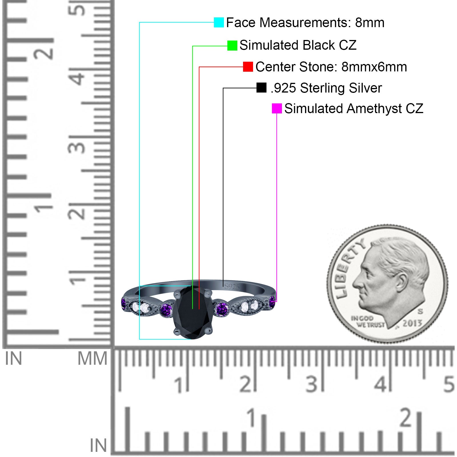 Vintage Style Oval Bridal Wedding Engagement Ring Round Amethyst Simulated Cubic Zirconia 925 Sterling Silver