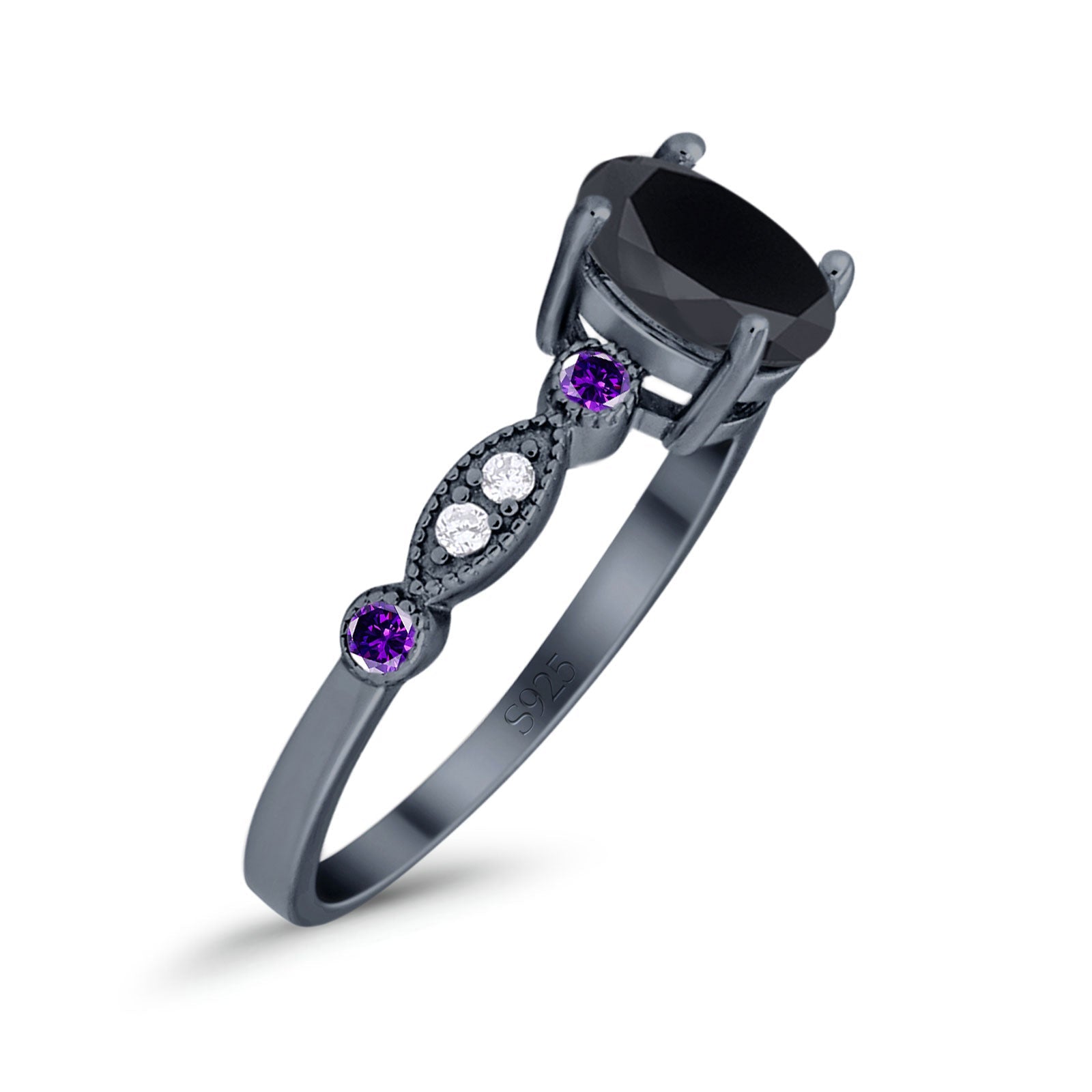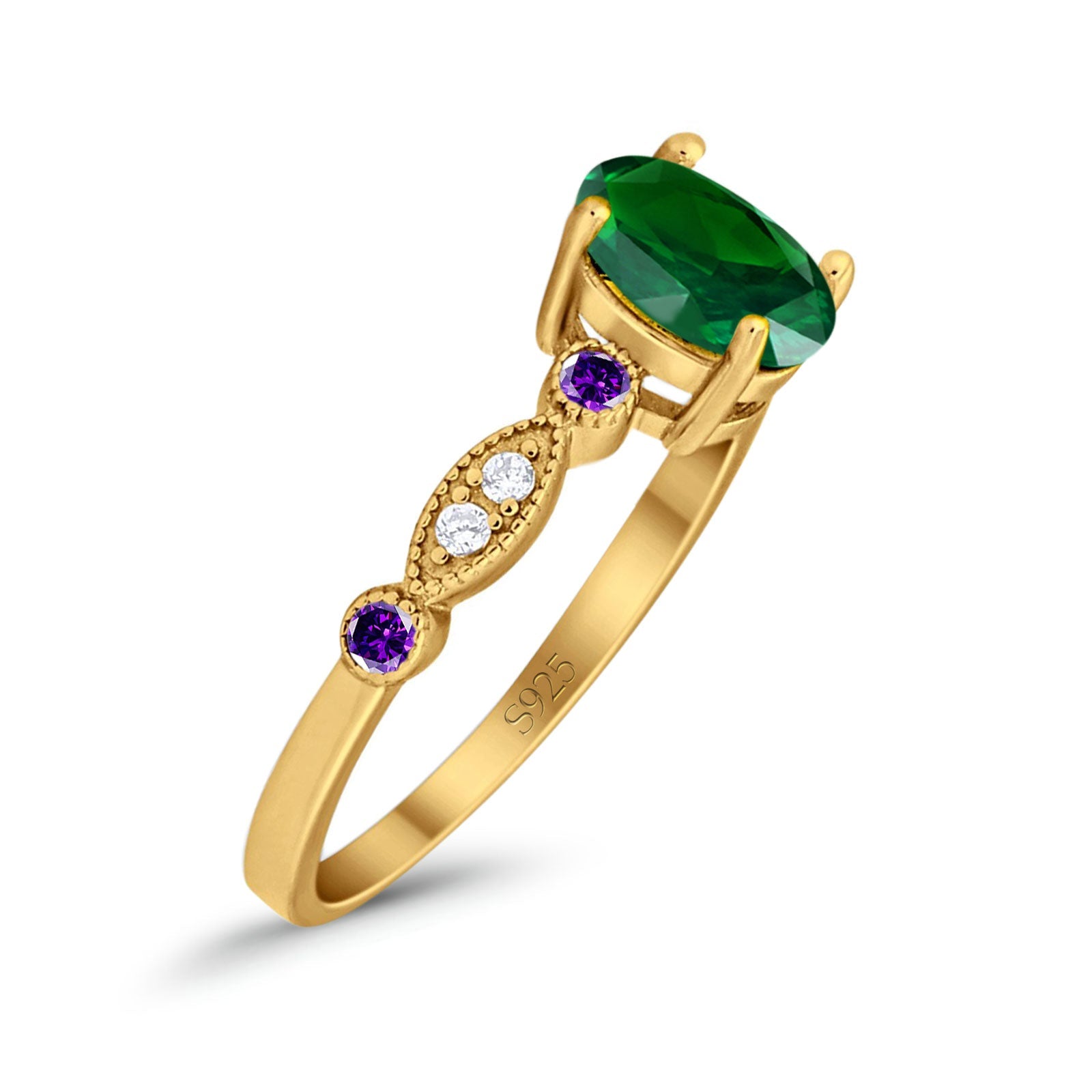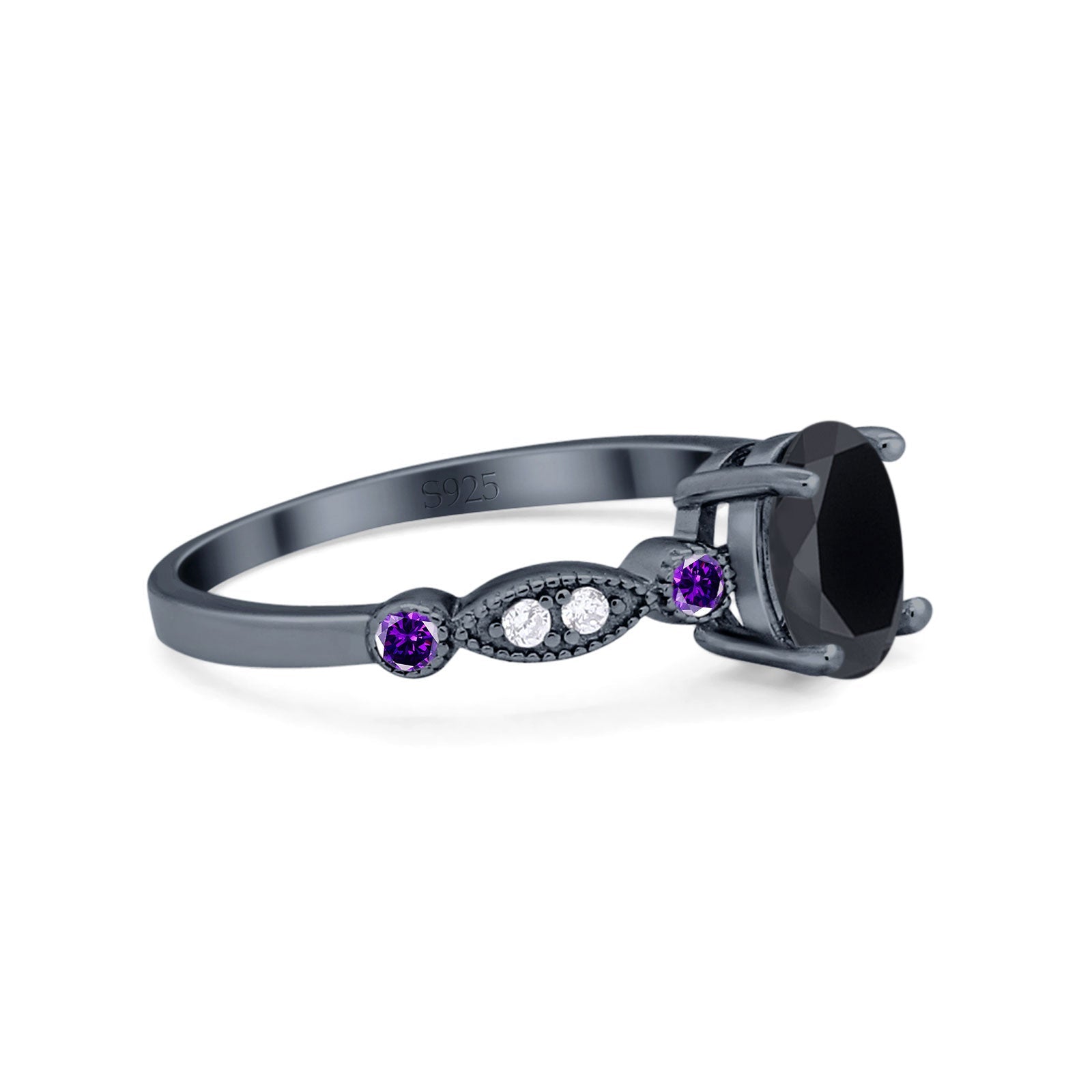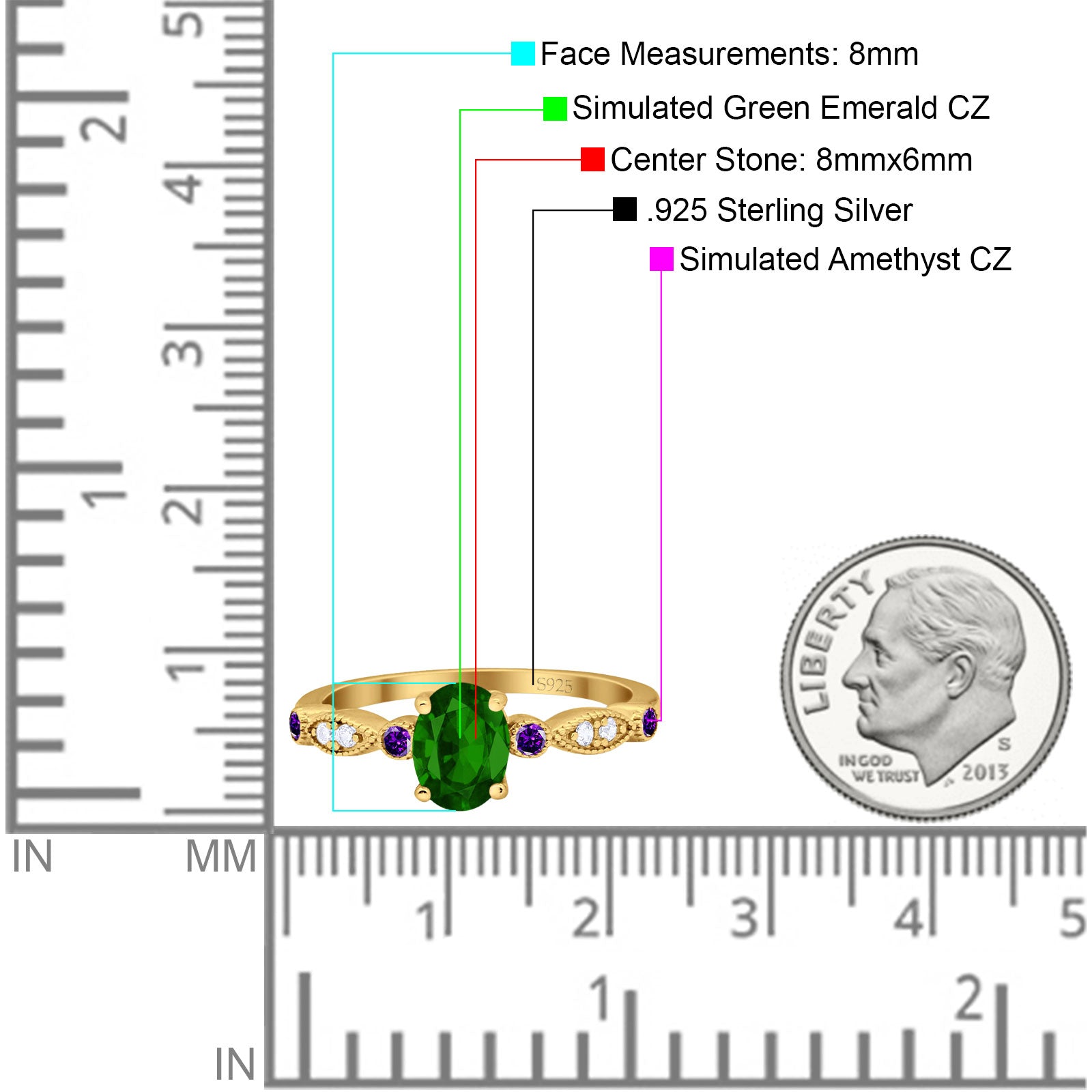 Vintage Style Oval Bridal Wedding Engagement Ring Round Amethyst Simulated Cubic Zirconia 925 Sterling Silver
