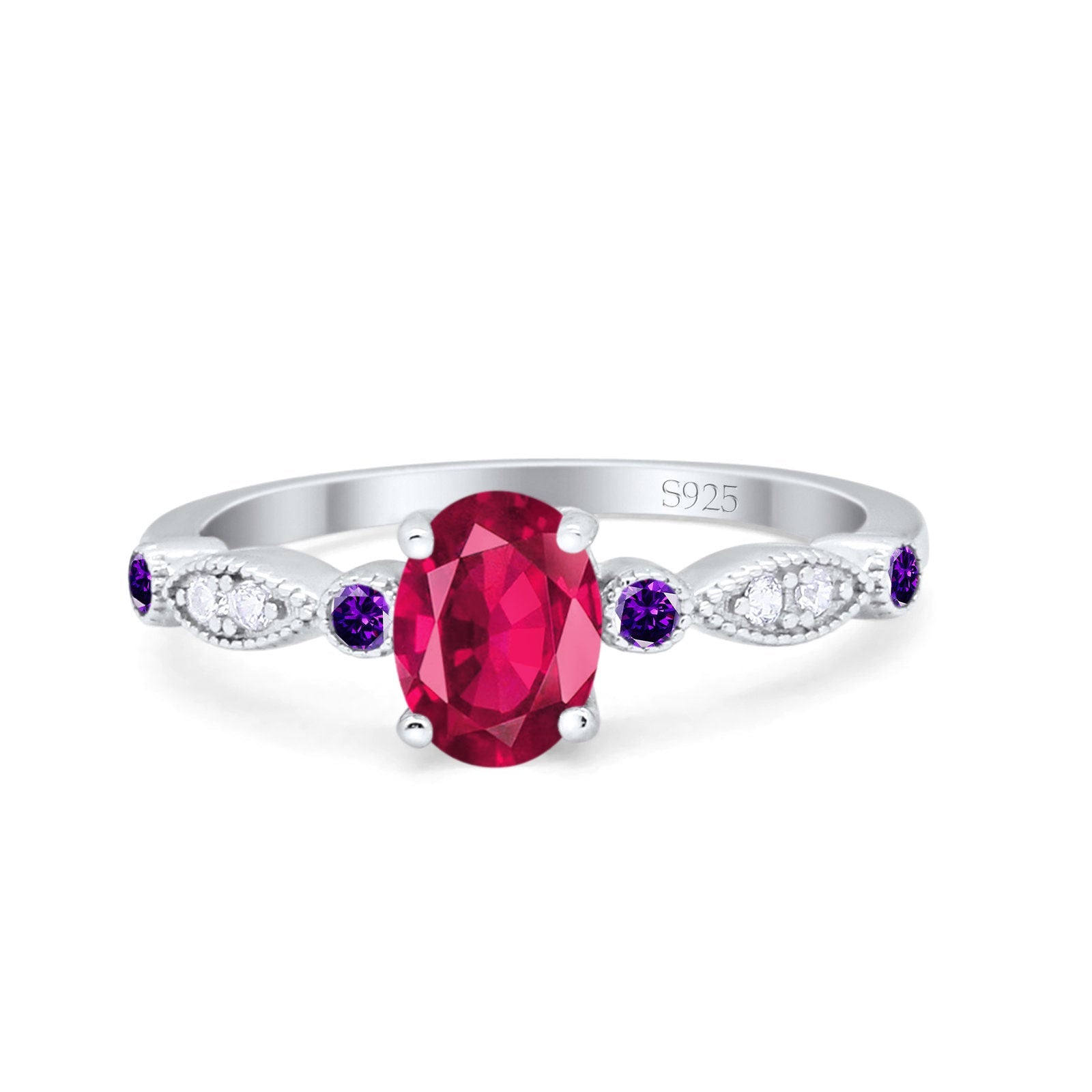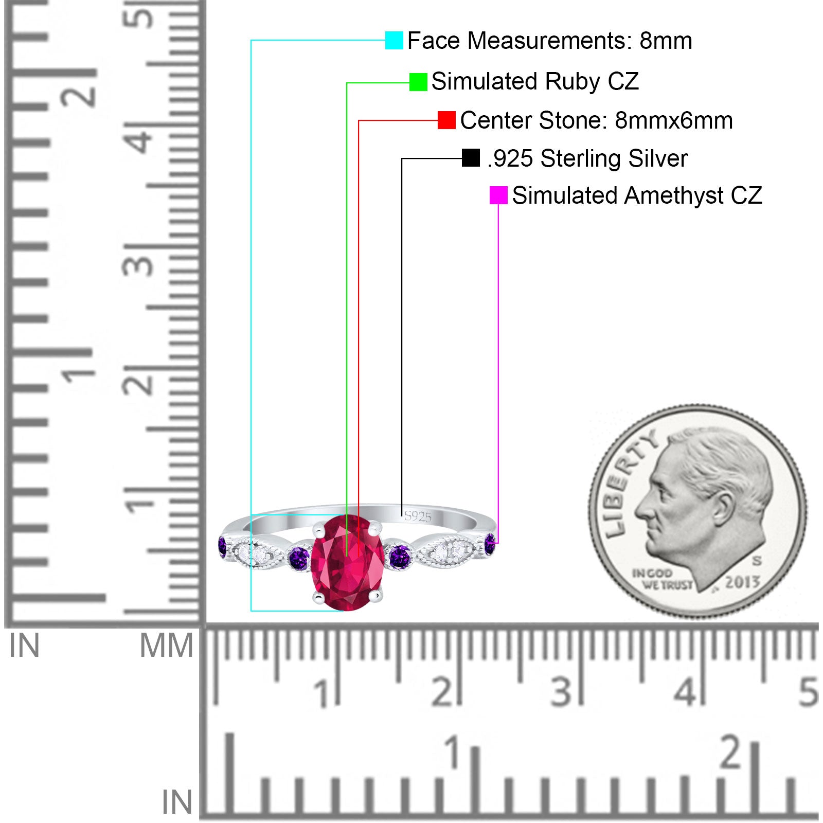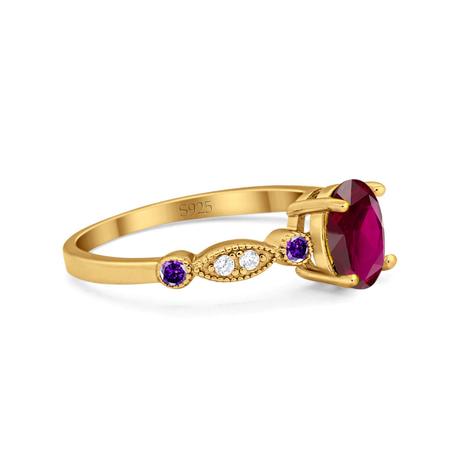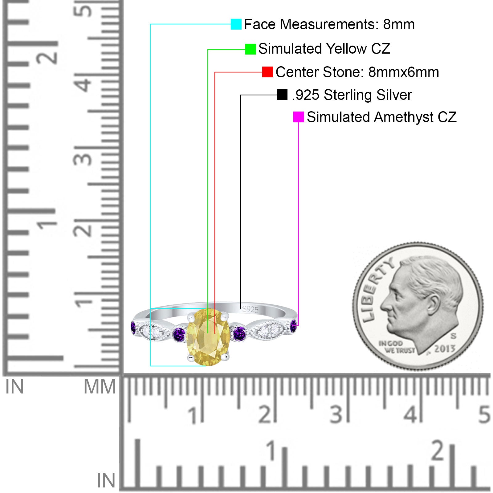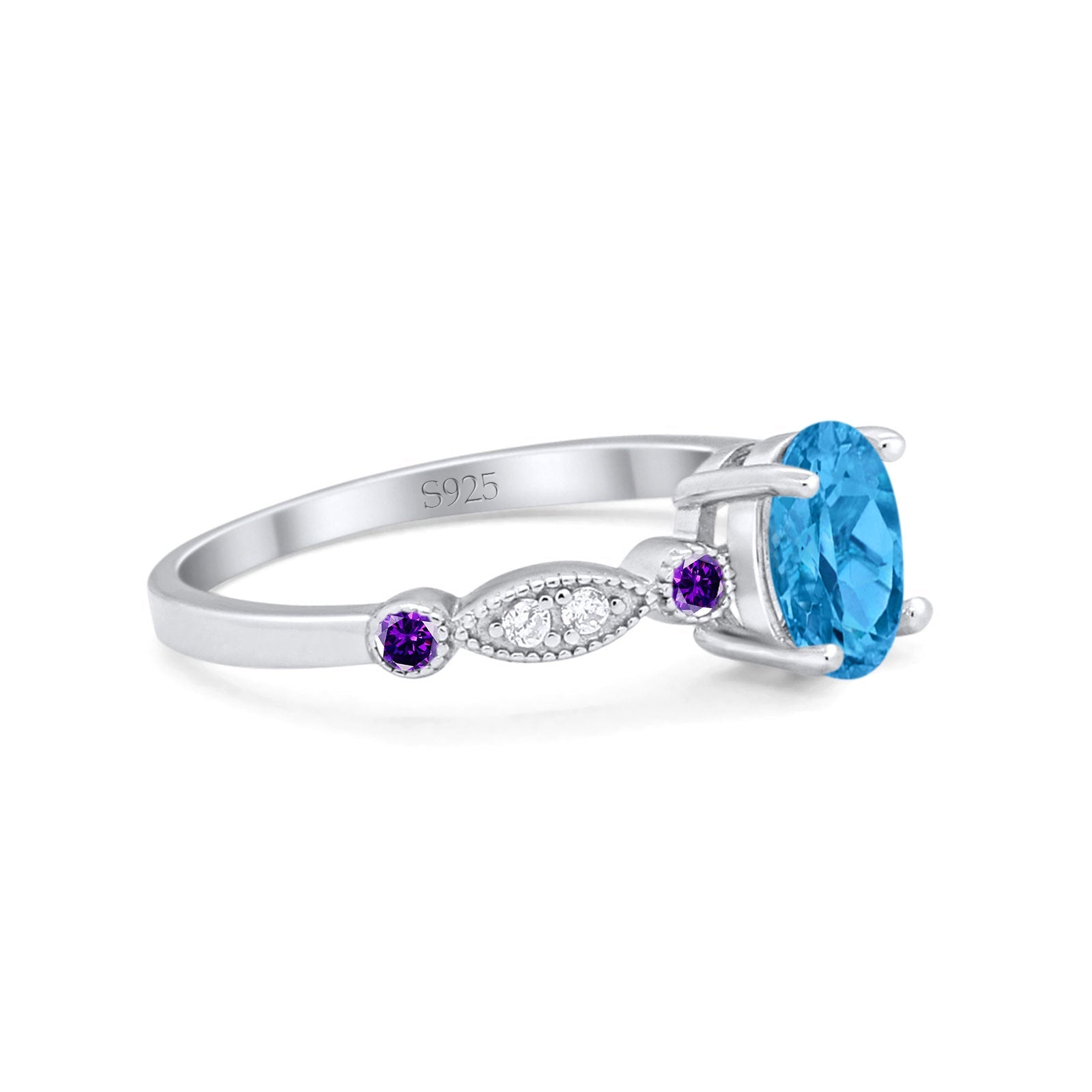Vintage Style Oval Bridal Wedding Engagement Ring Round Amethyst Simulated Cubic Zirconia 925 Sterling Silver