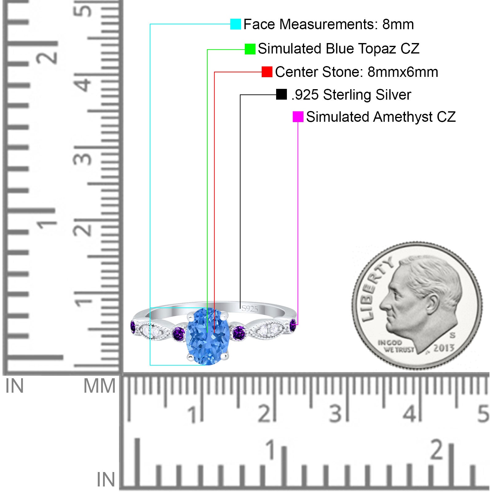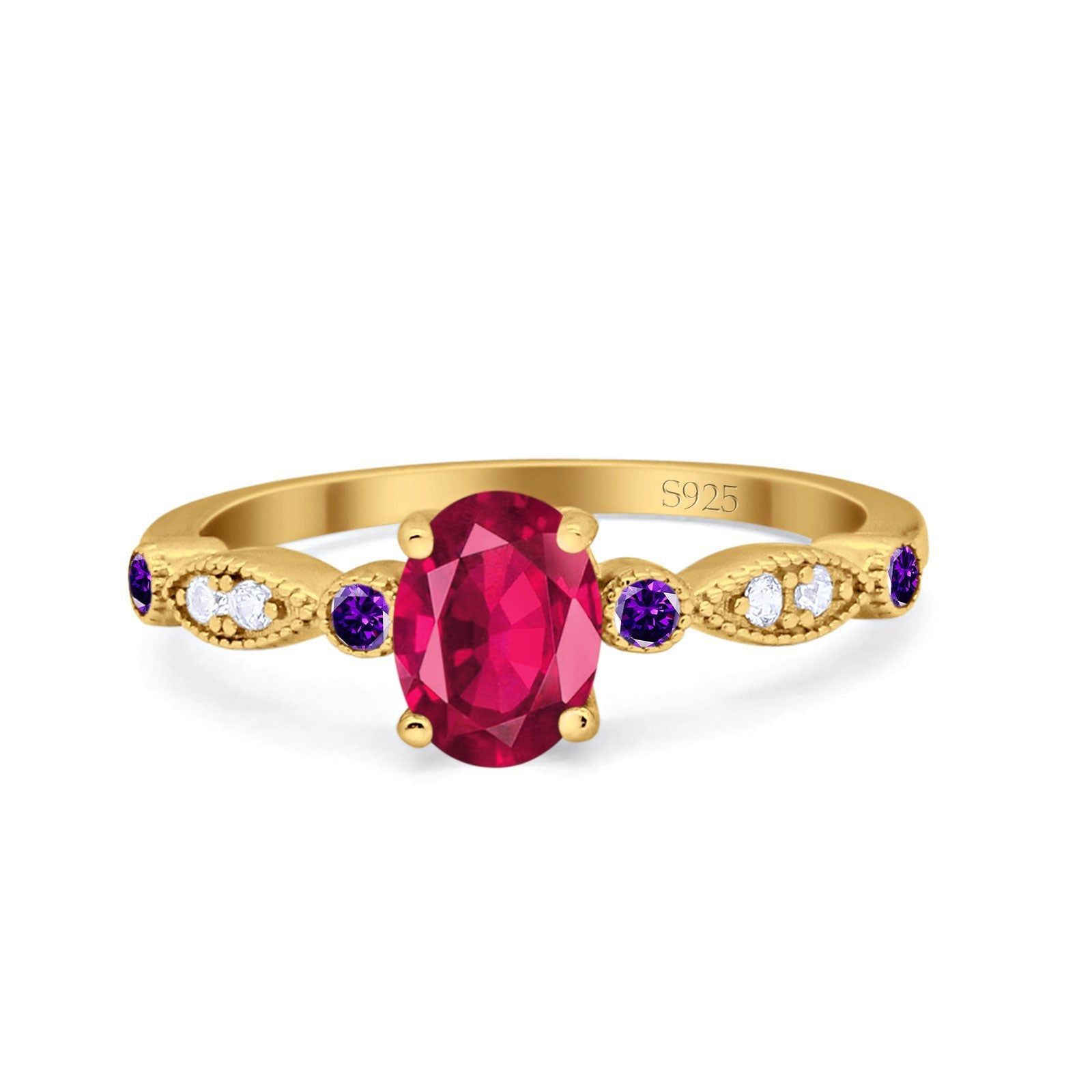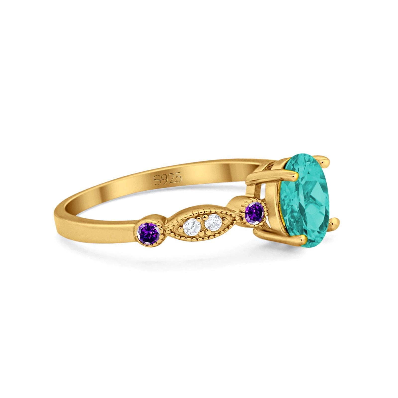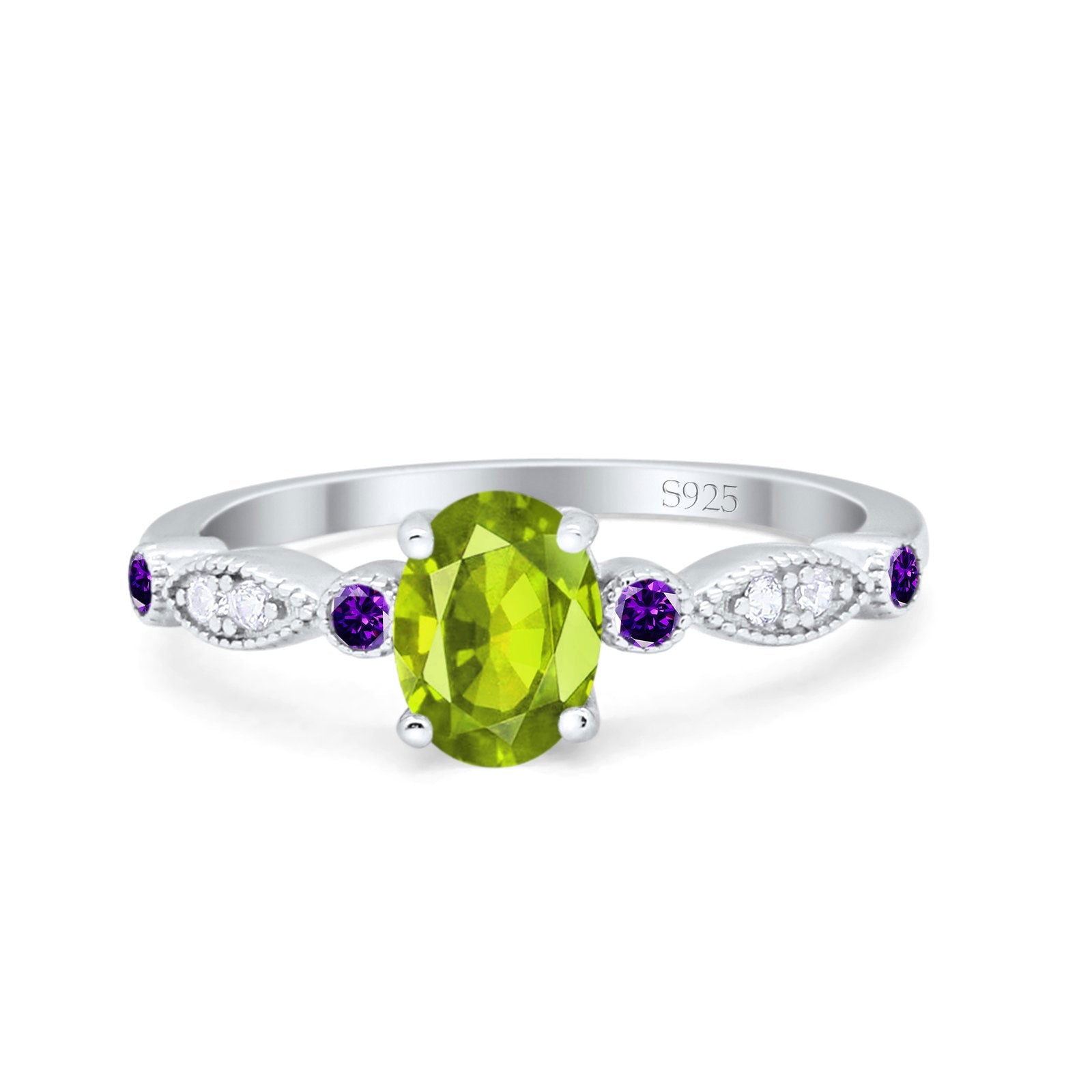 Vintage Style Oval Bridal Wedding Engagement Ring Round Amethyst Simulated Cubic Zirconia 925 Sterling Silver