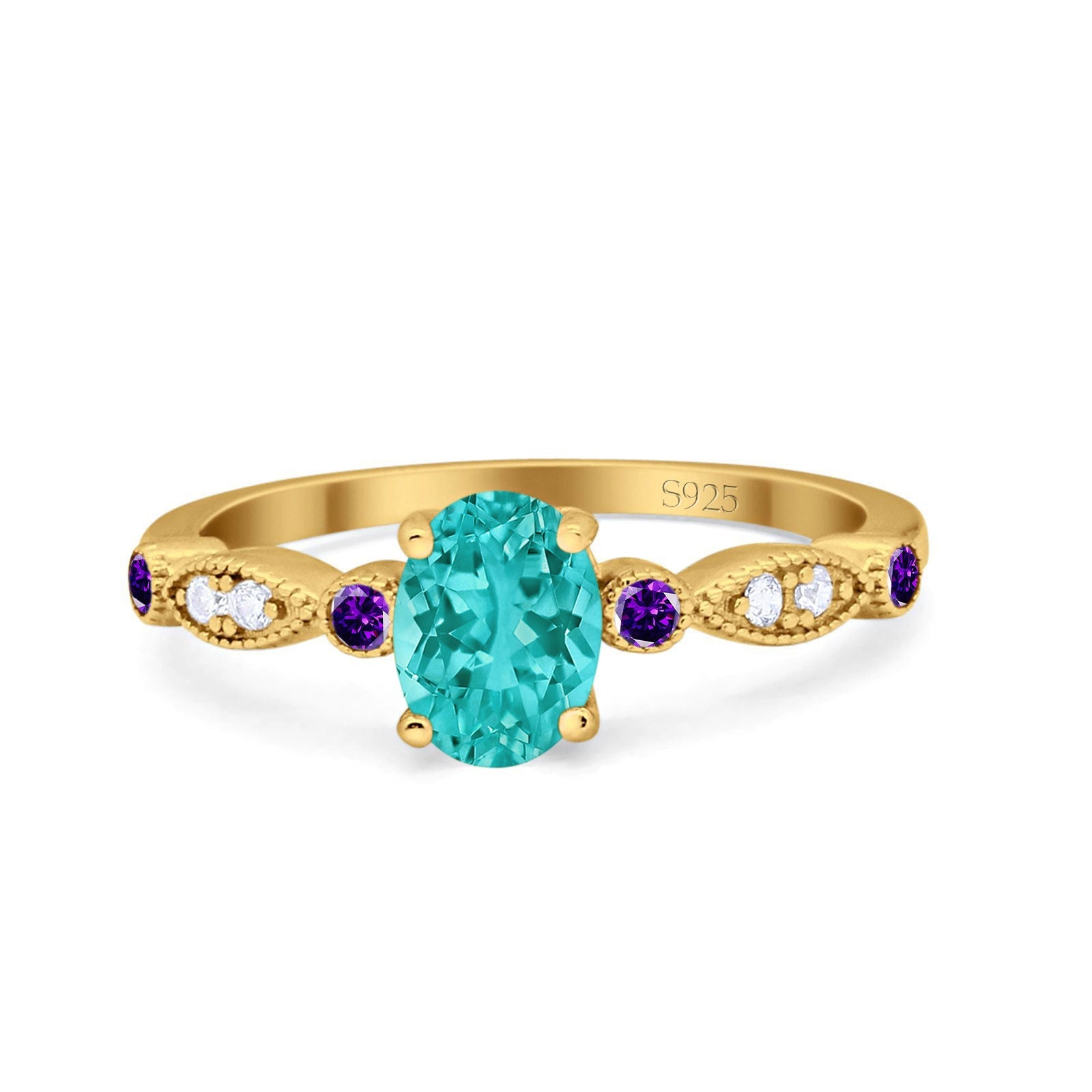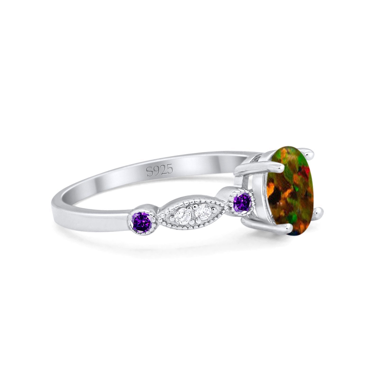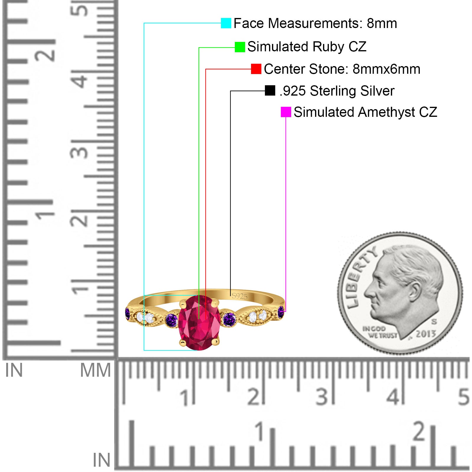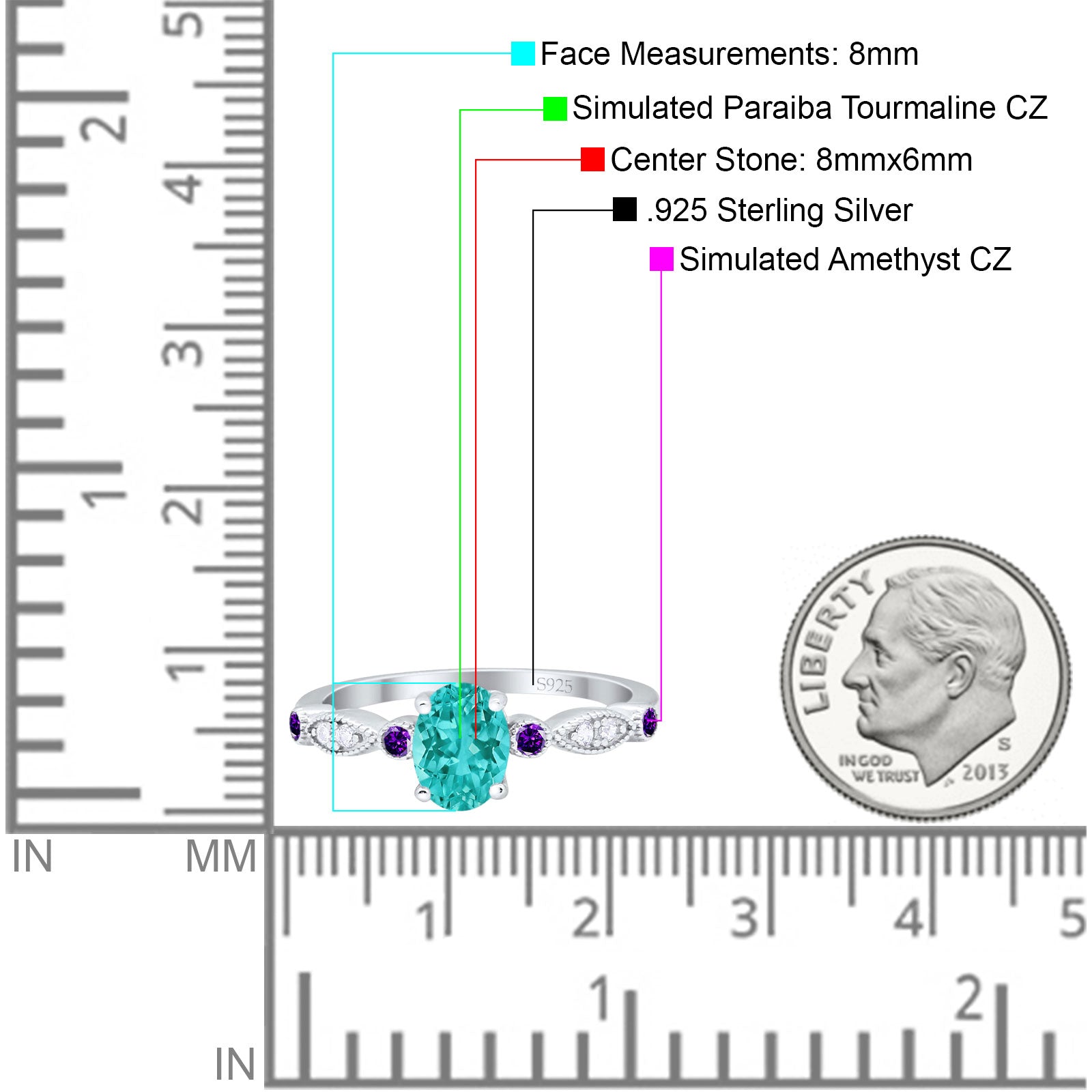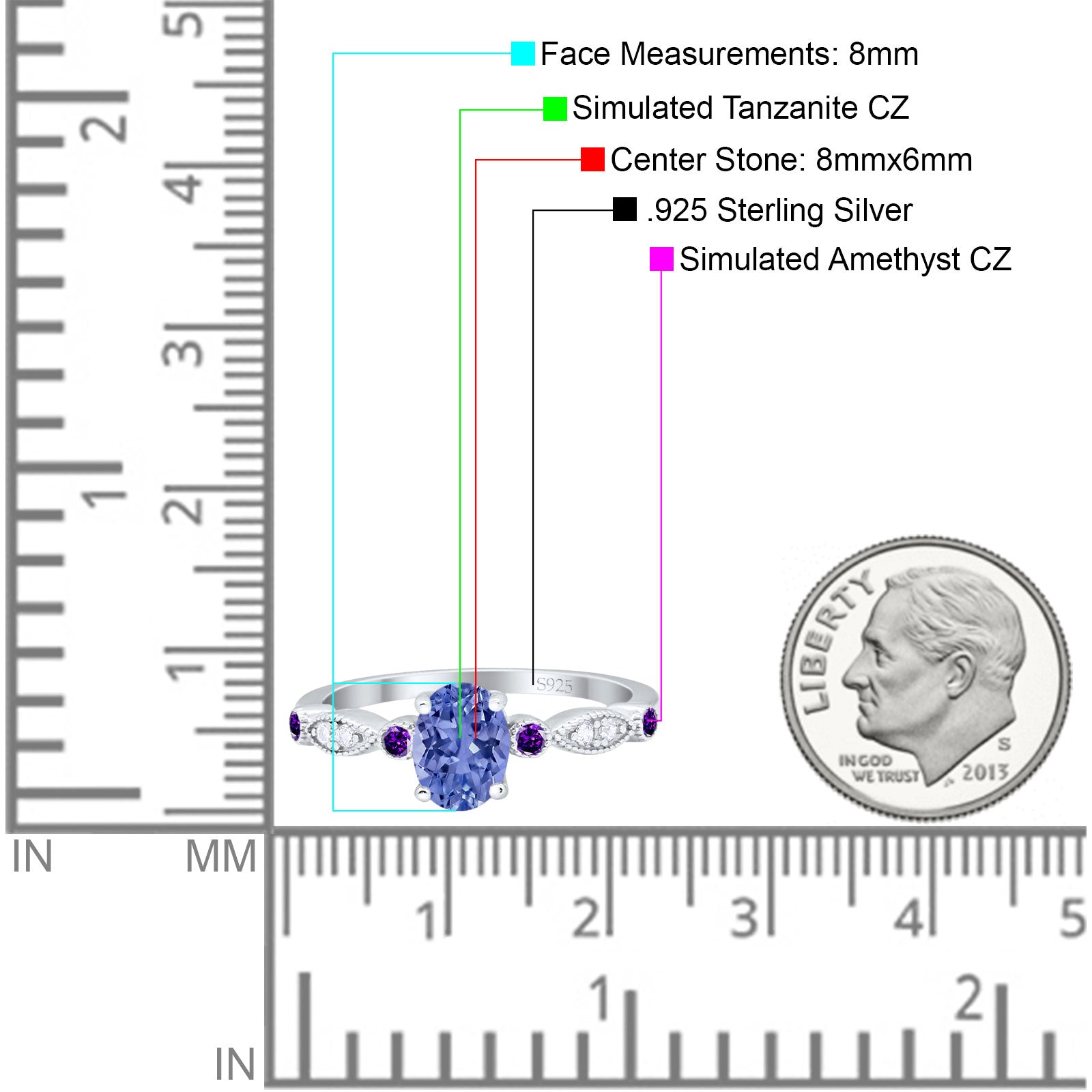 Vintage Style Oval Bridal Wedding Engagement Ring Round Amethyst Simulated Cubic Zirconia 925 Sterling Silver