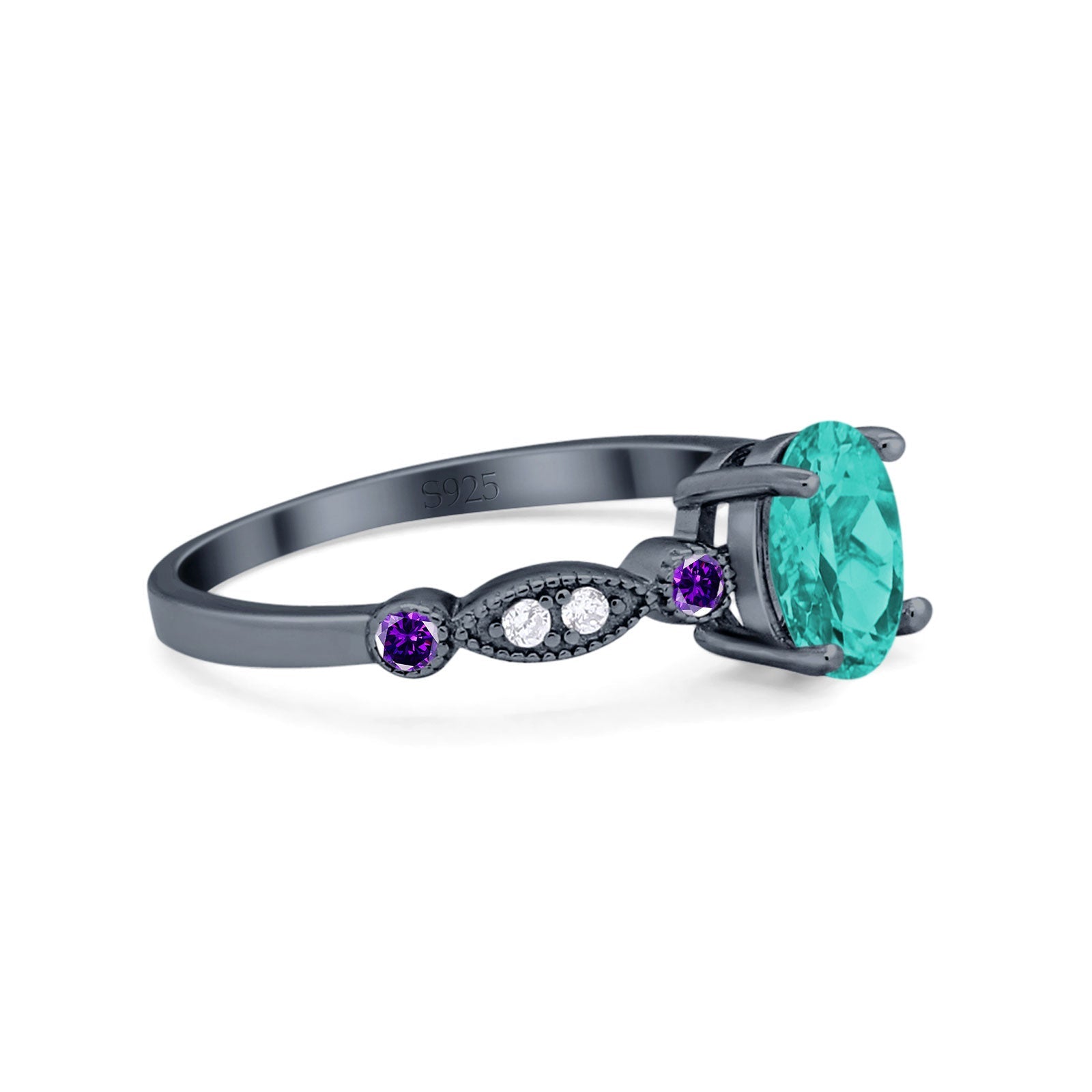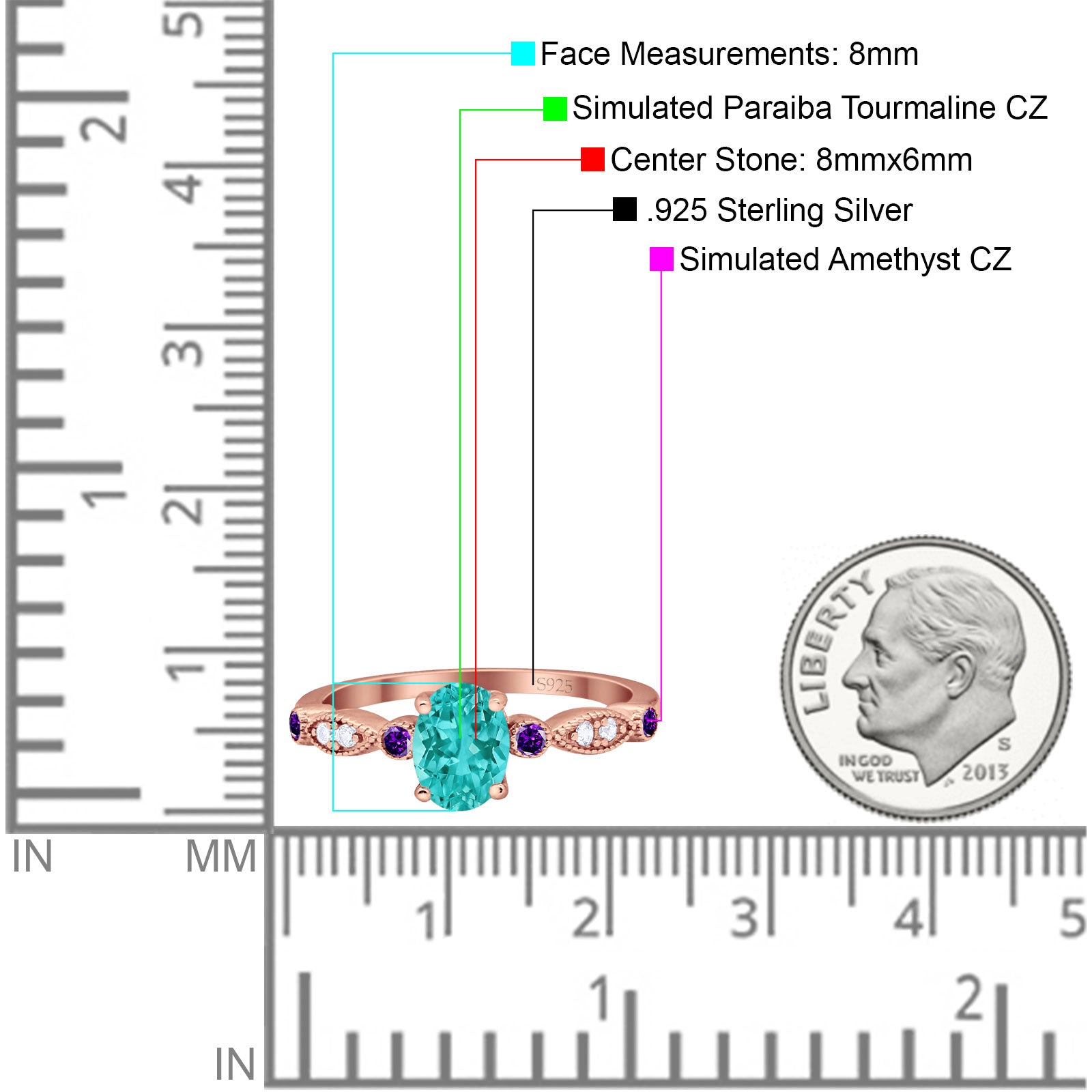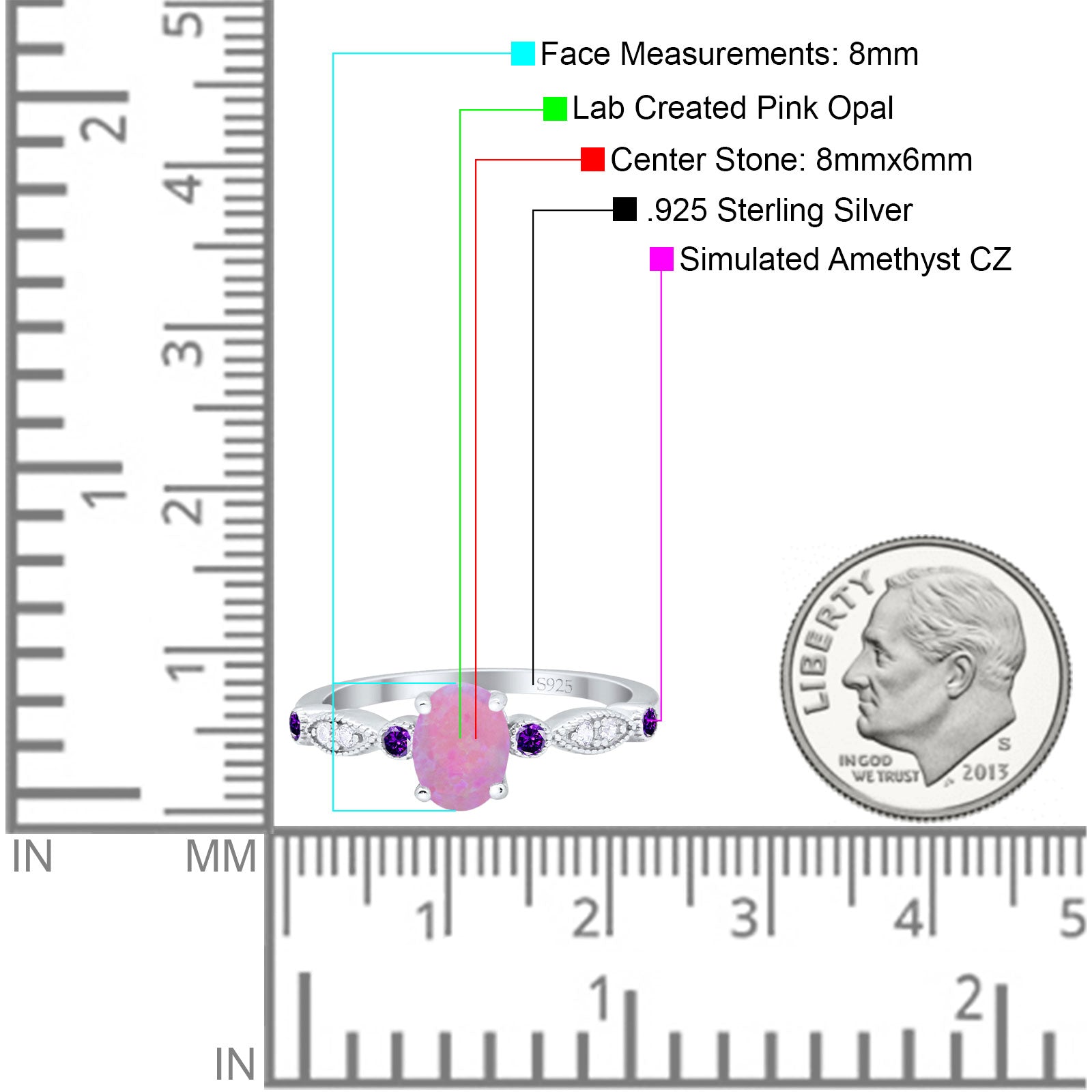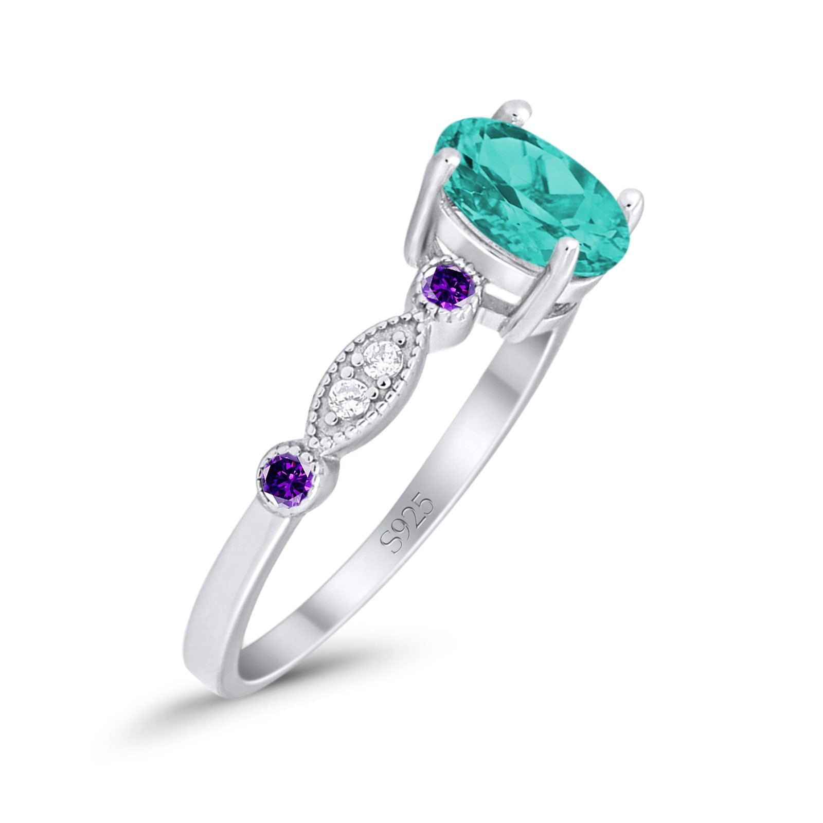 Vintage Style Oval Bridal Wedding Engagement Ring Round Amethyst Simulated Cubic Zirconia 925 Sterling Silver