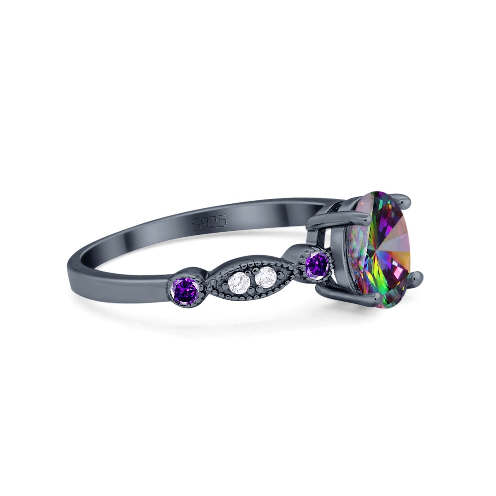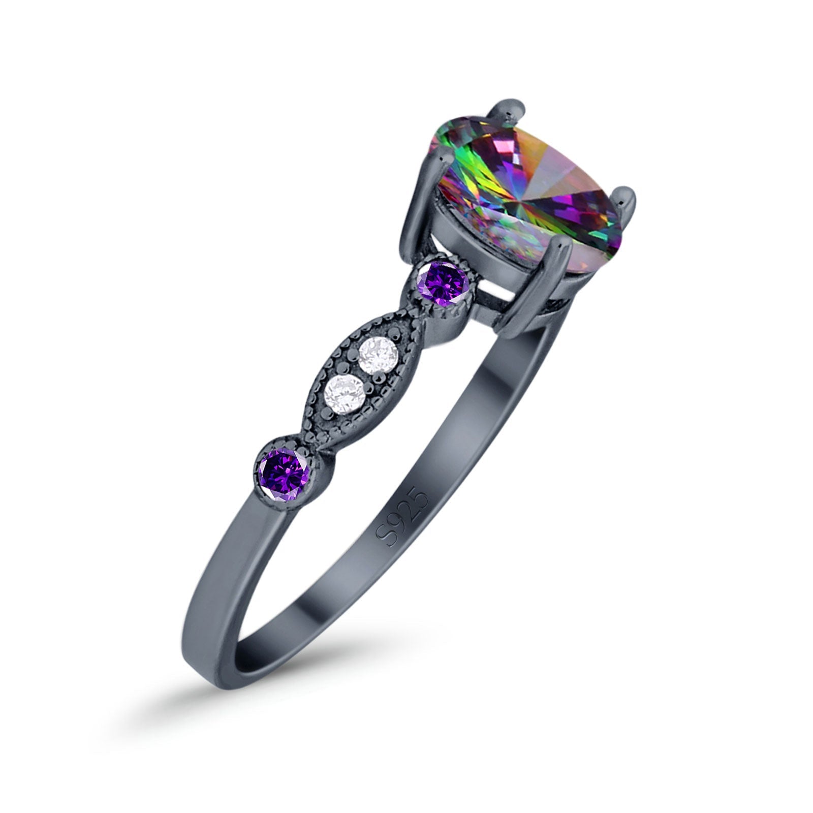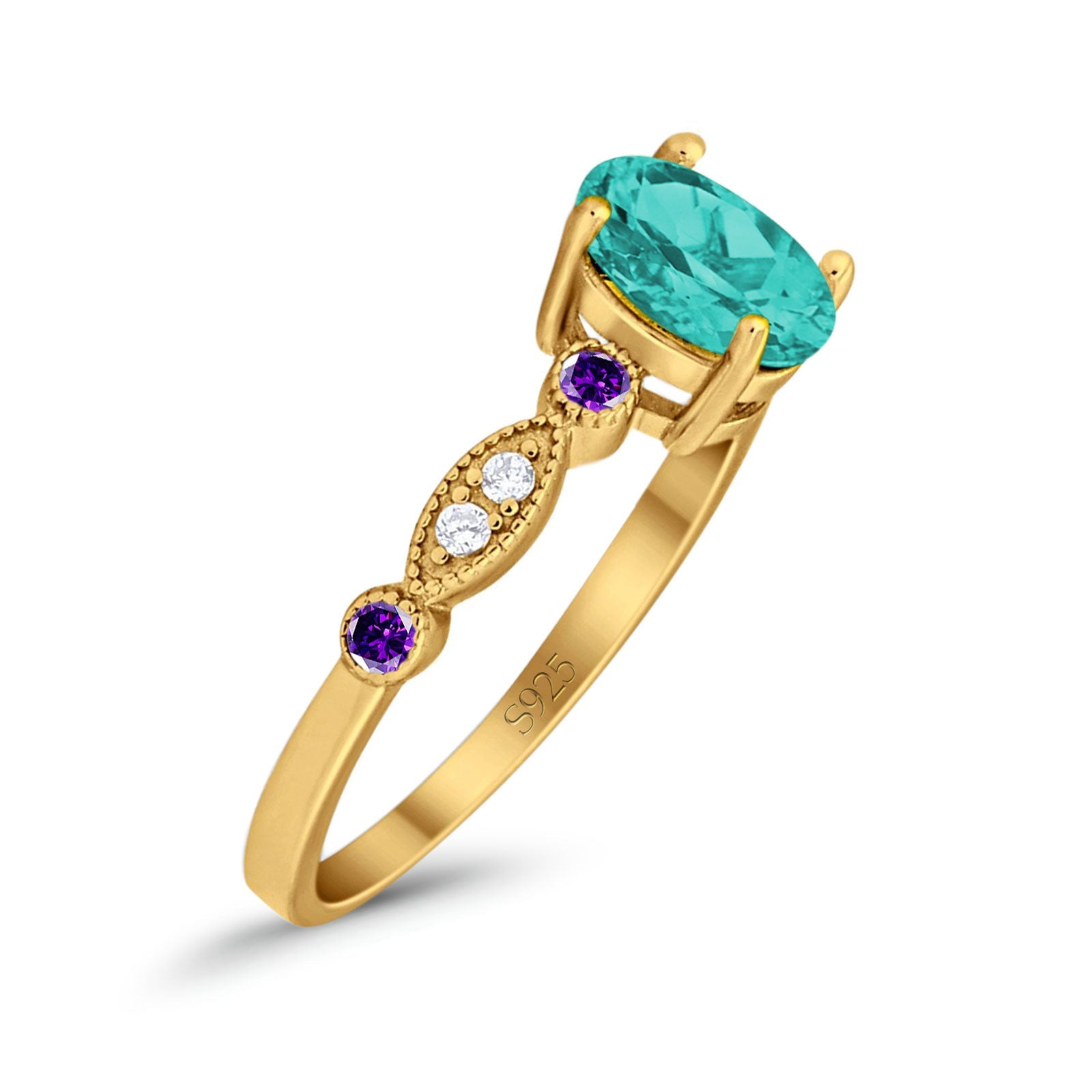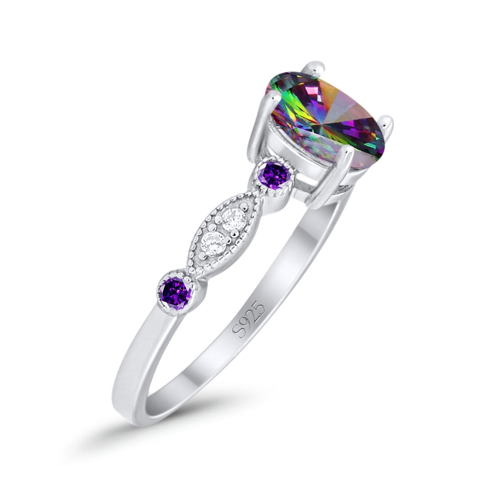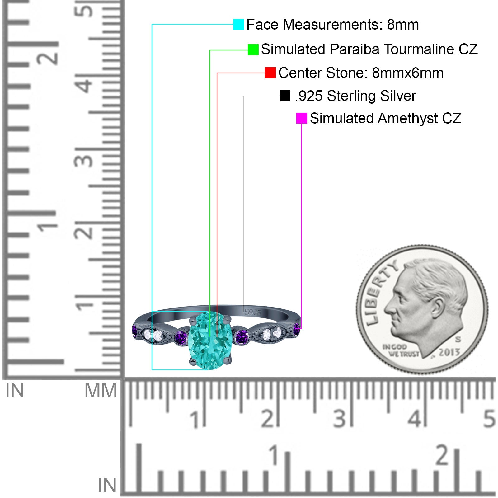 Vintage Style Oval Bridal Wedding Engagement Ring Round Amethyst Simulated Cubic Zirconia 925 Sterling Silver
