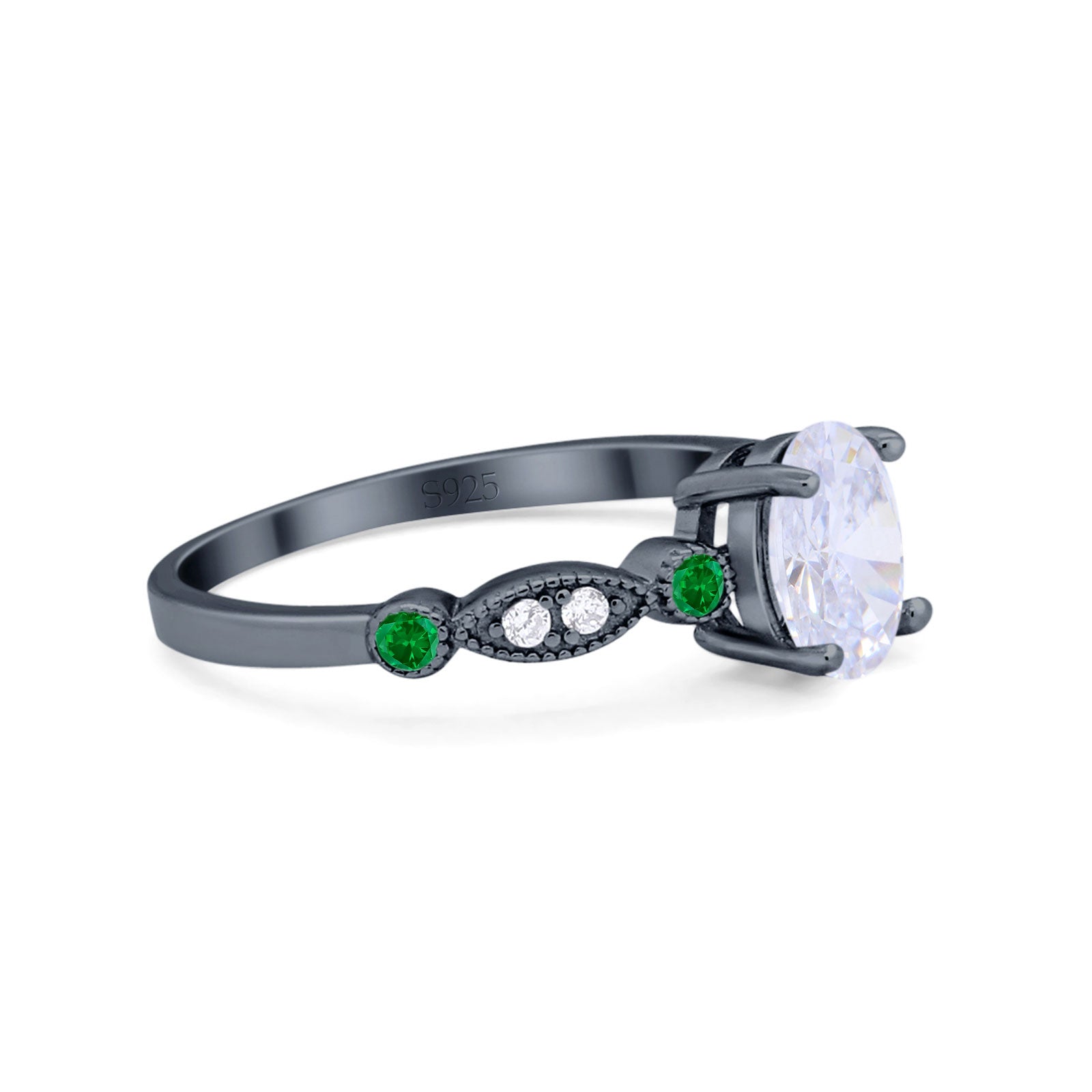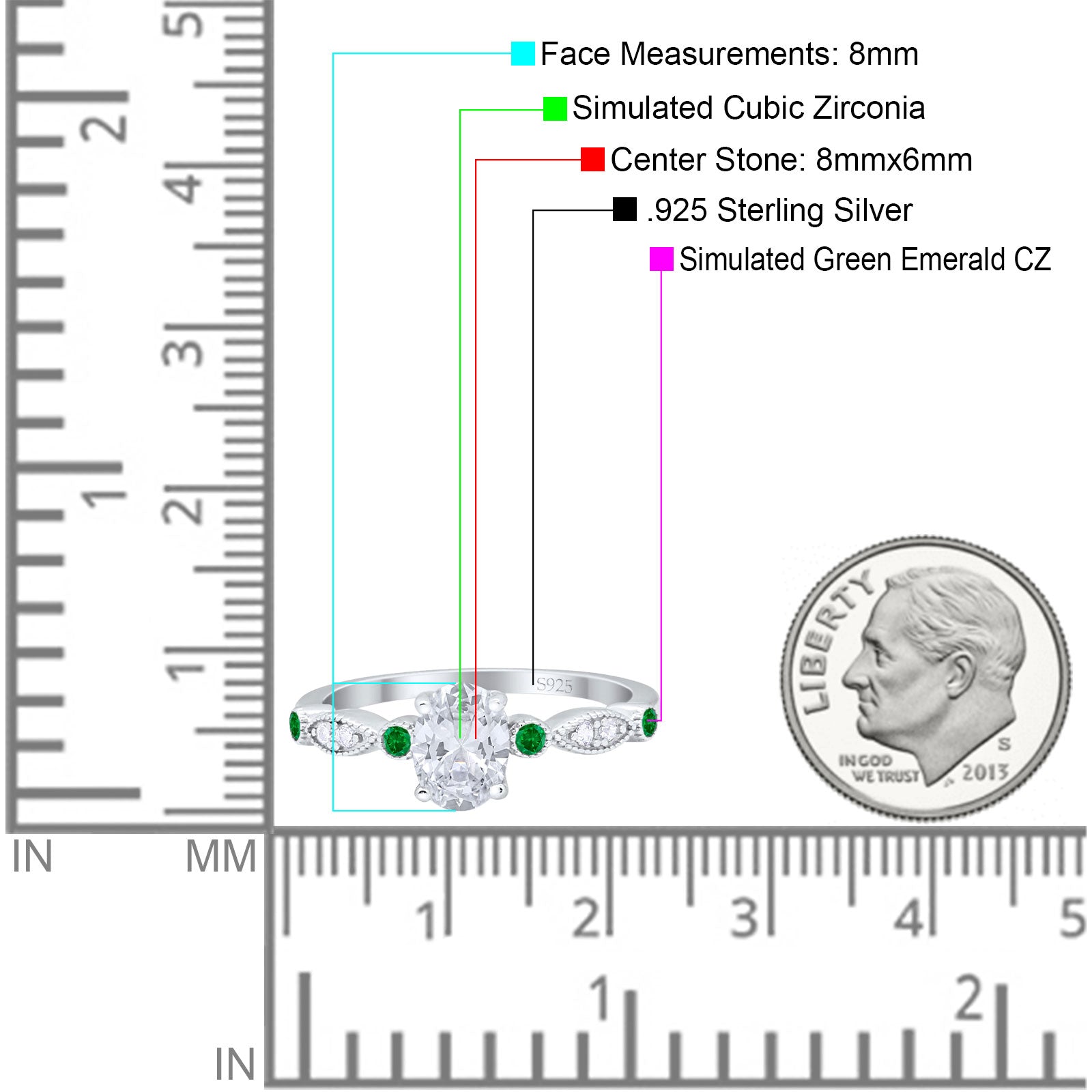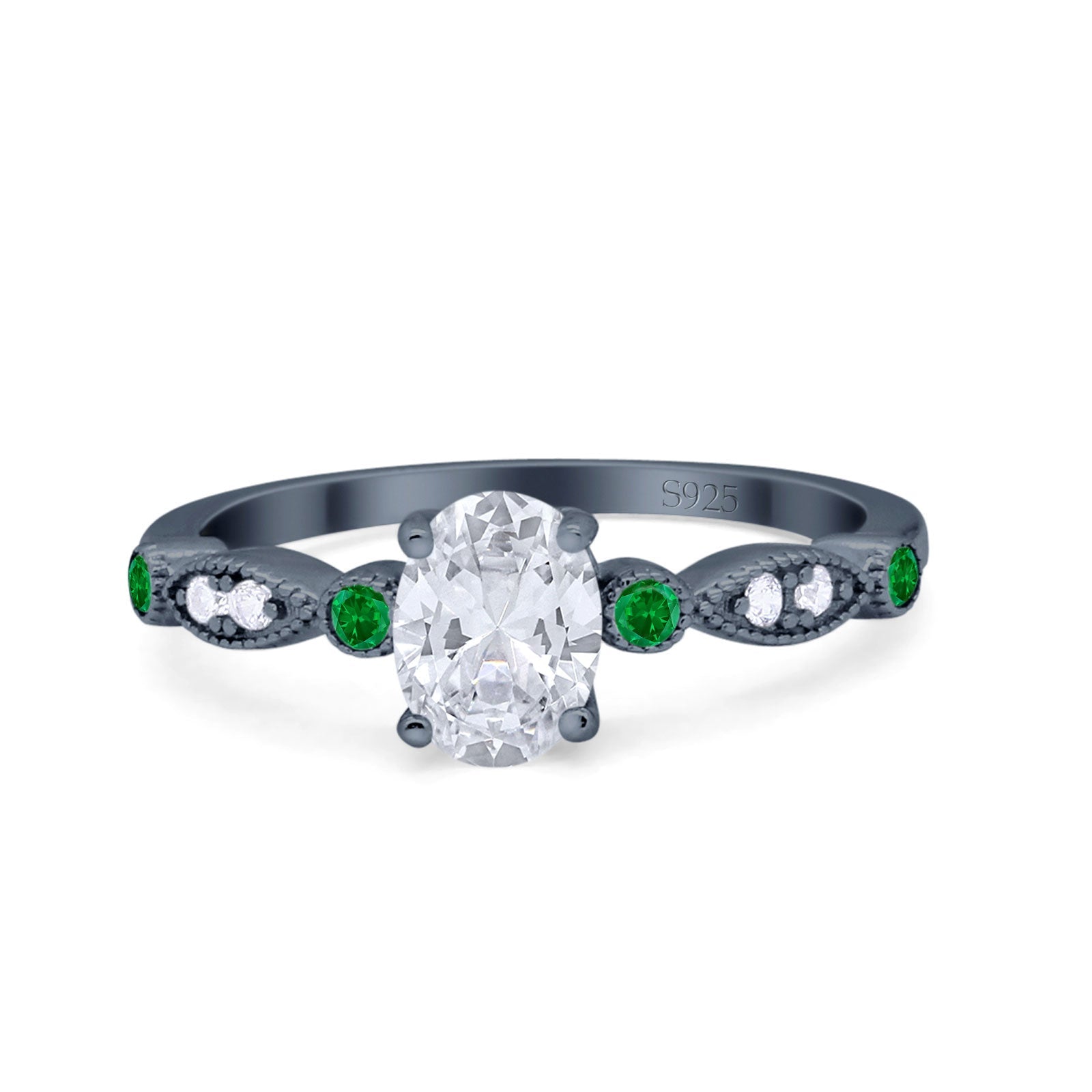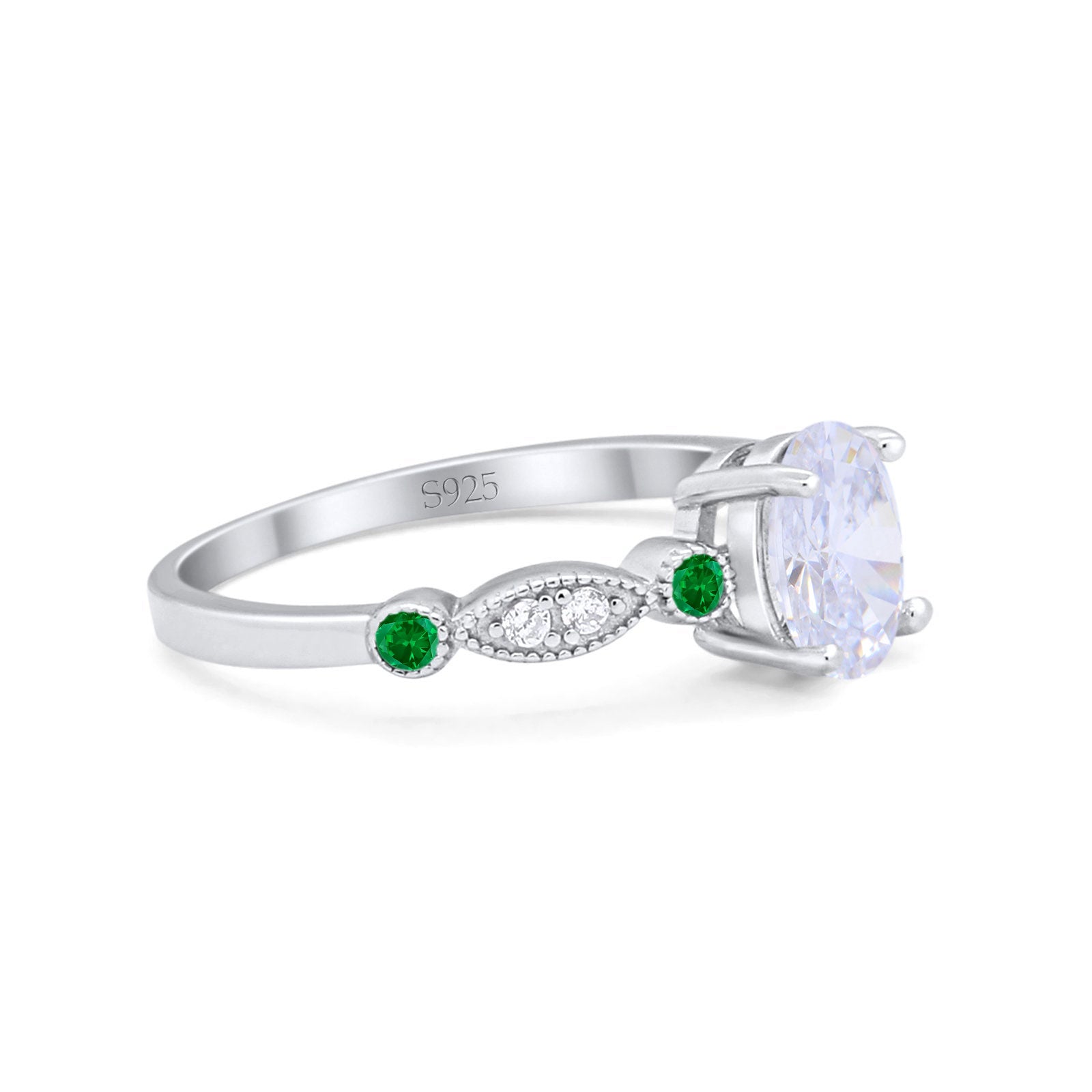 Vintage Style Oval Bridal Wedding Engagement Ring Round Green Emerald Simulated Cubic Zirconia 925 Sterling Silver
