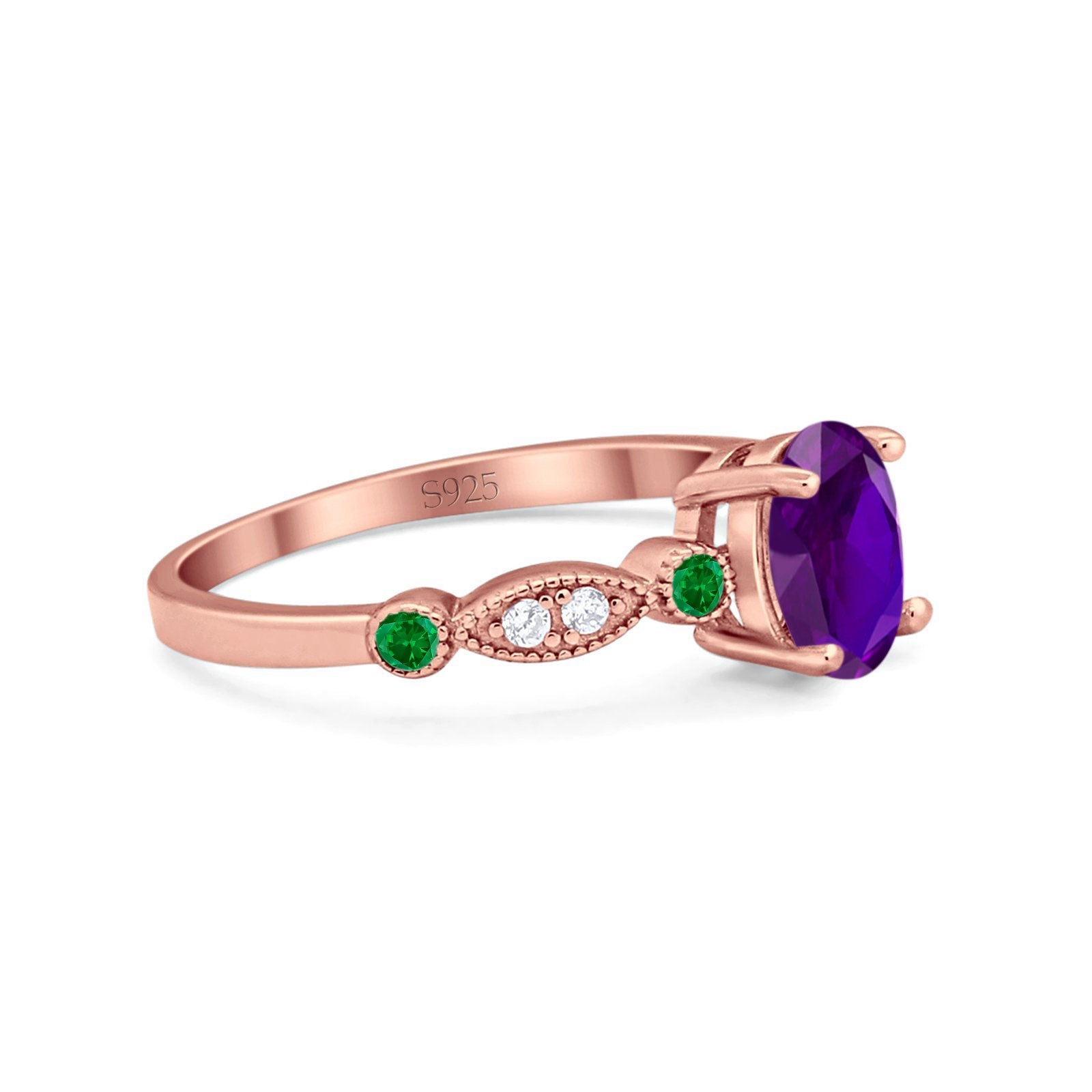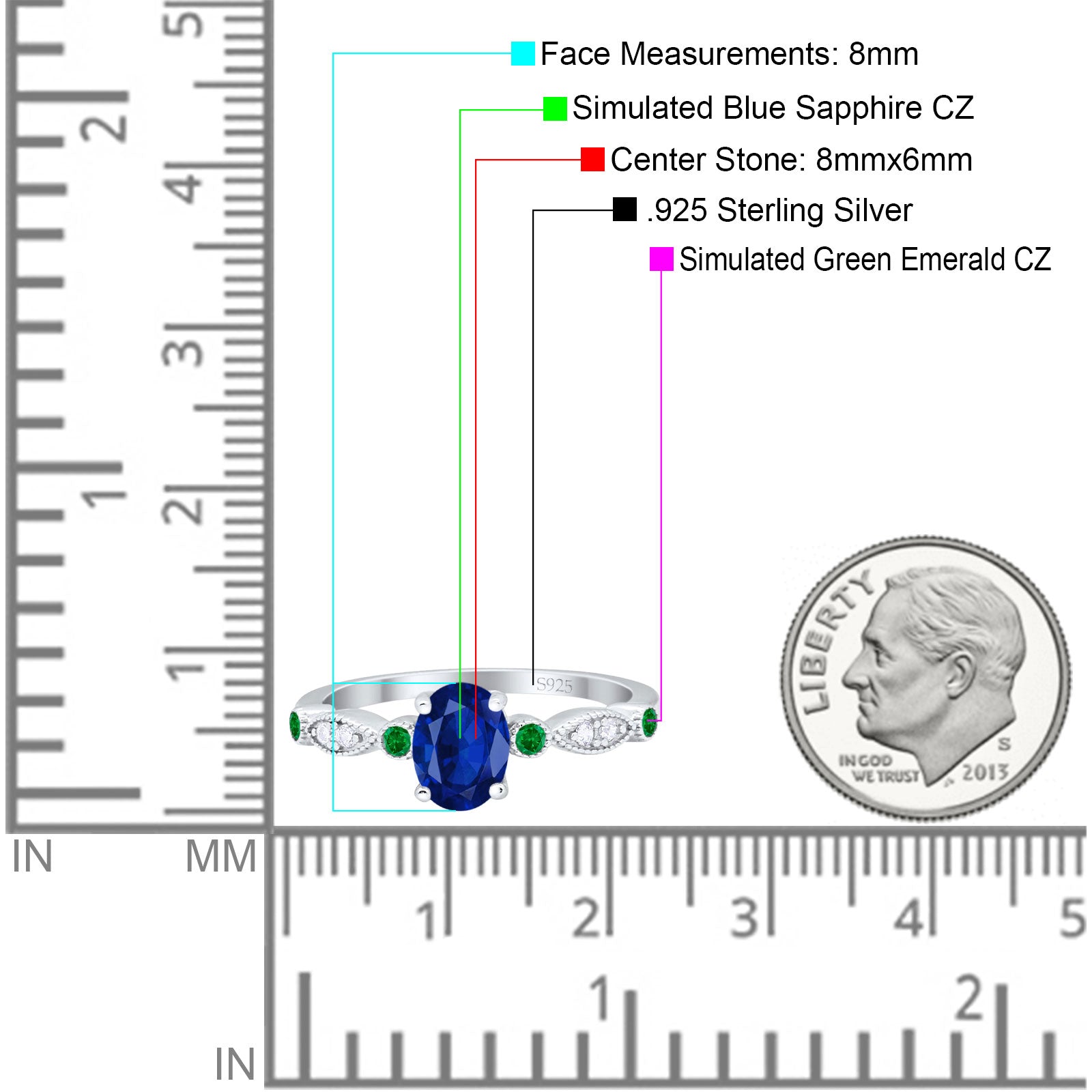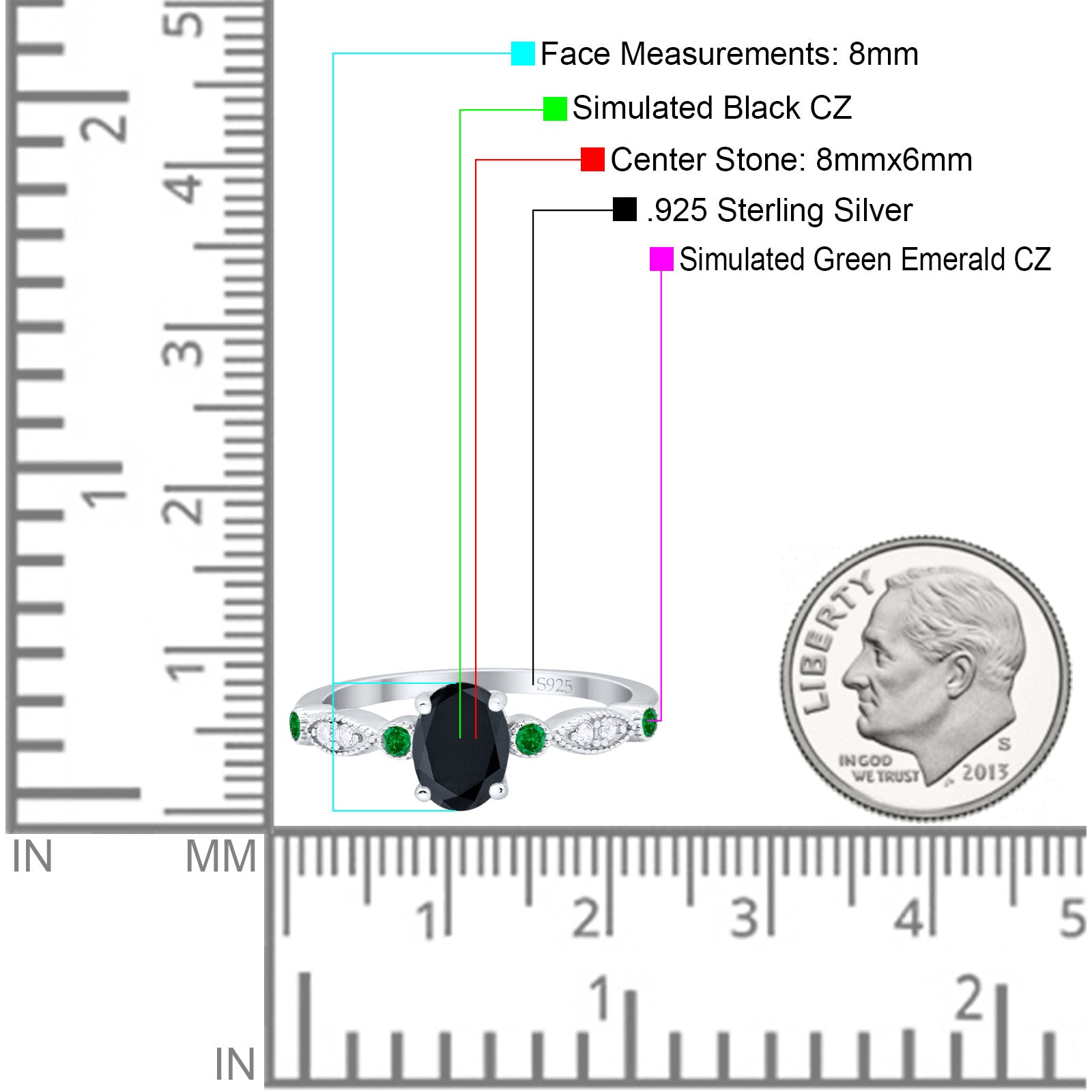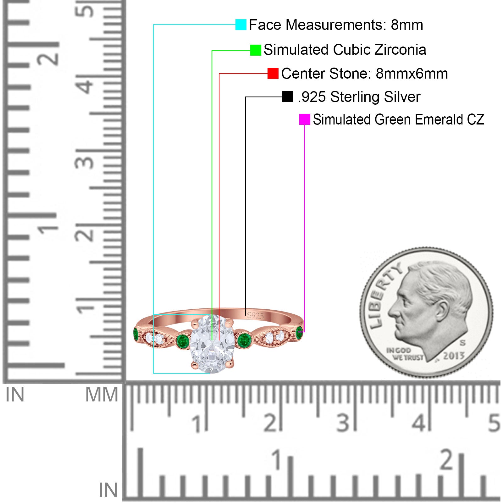 Vintage Style Oval Bridal Wedding Engagement Ring Round Green Emerald Simulated Cubic Zirconia 925 Sterling Silver
