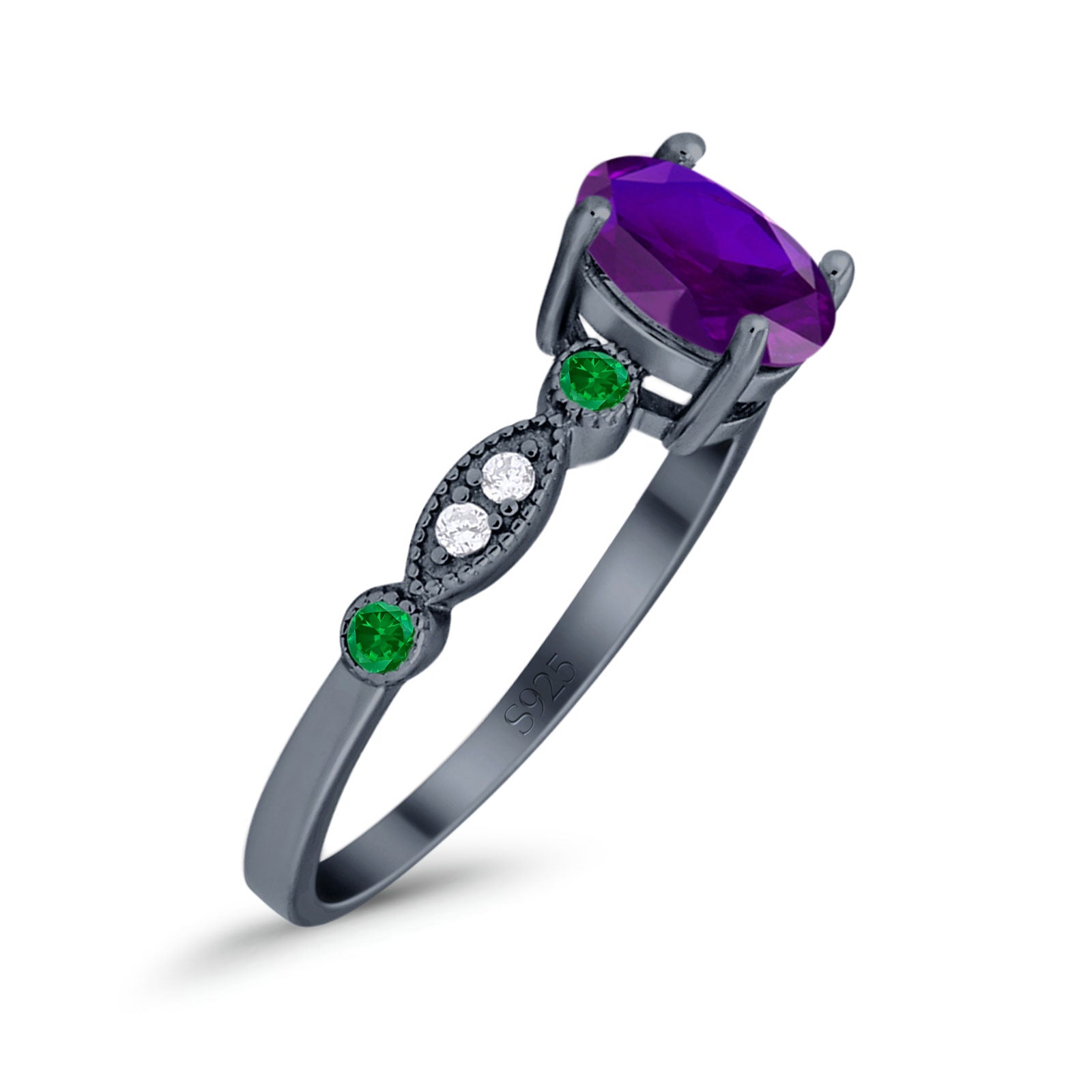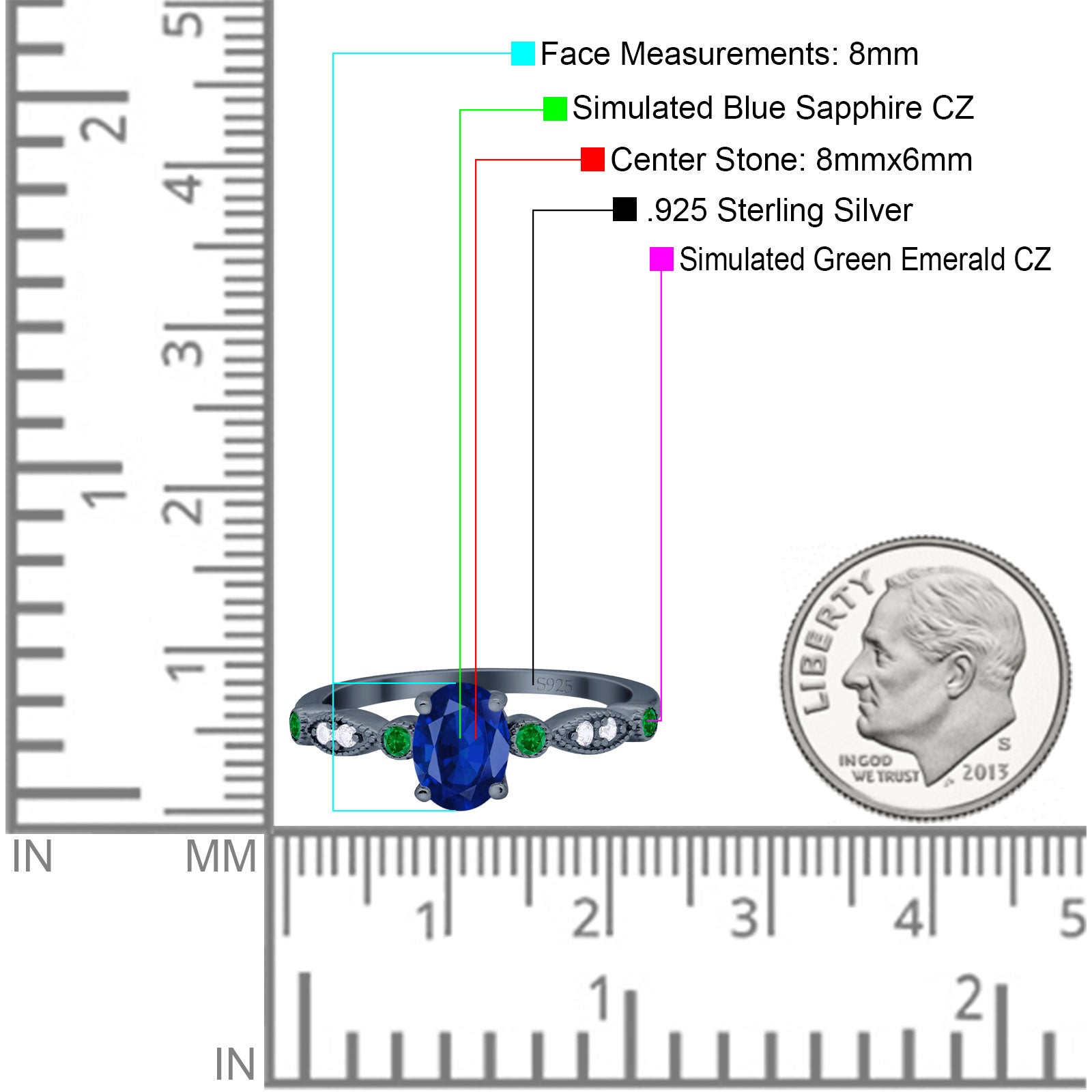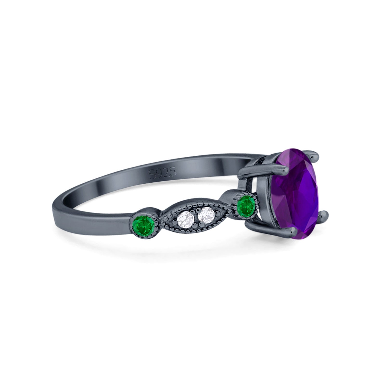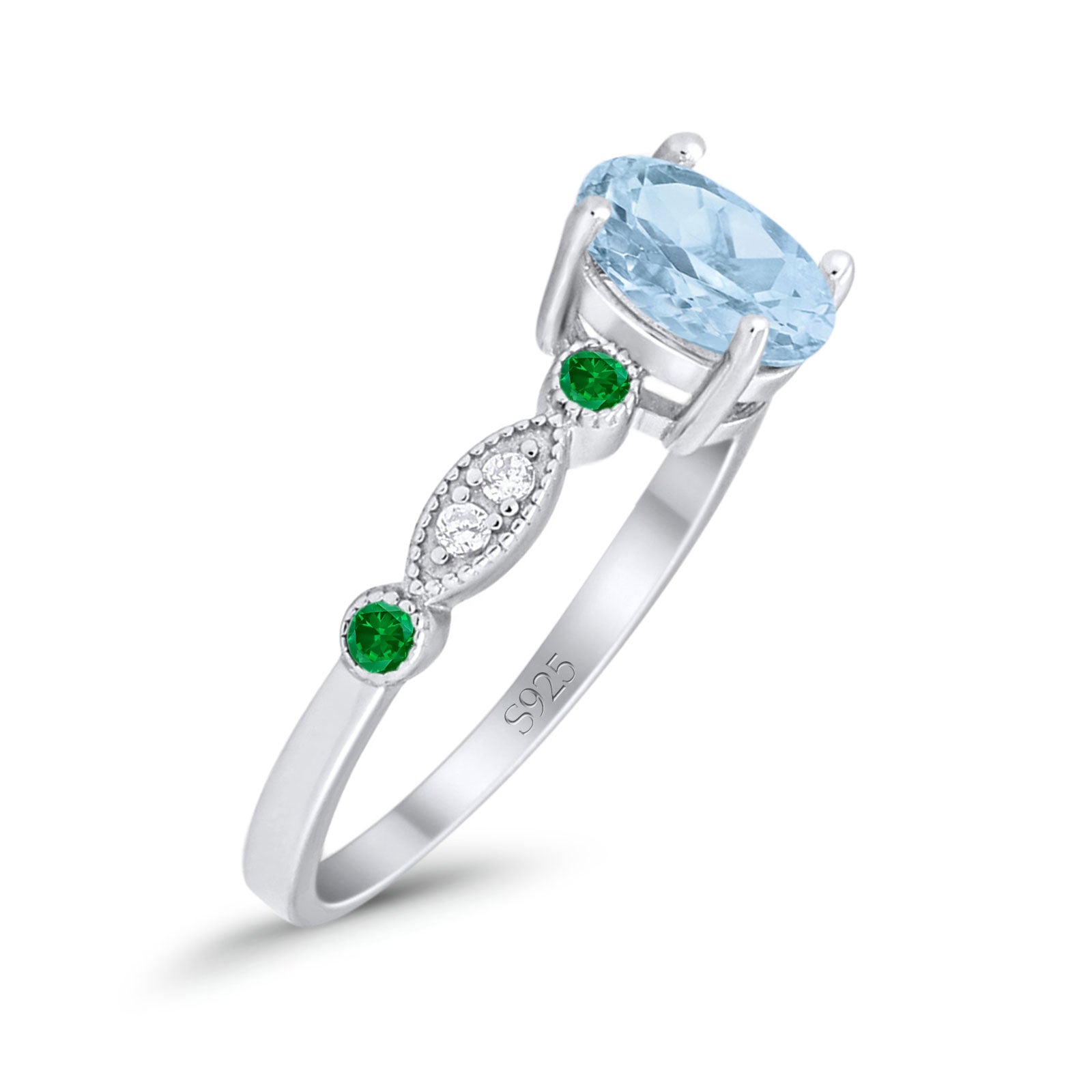 Vintage Style Oval Bridal Wedding Engagement Ring Round Green Emerald Simulated Cubic Zirconia 925 Sterling Silver