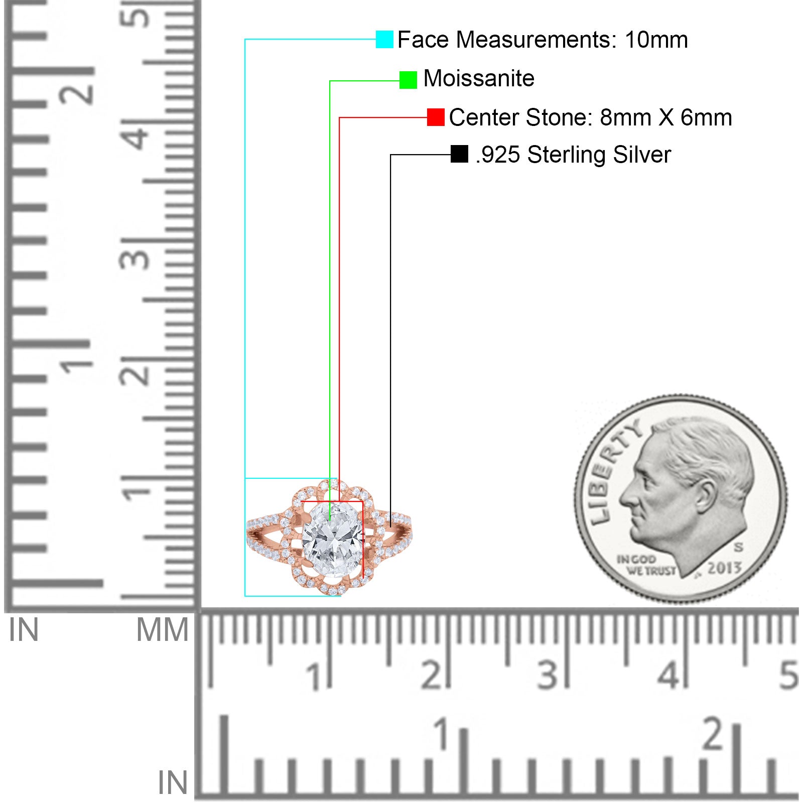 Center Stone Measurements: 8mmX6mm.