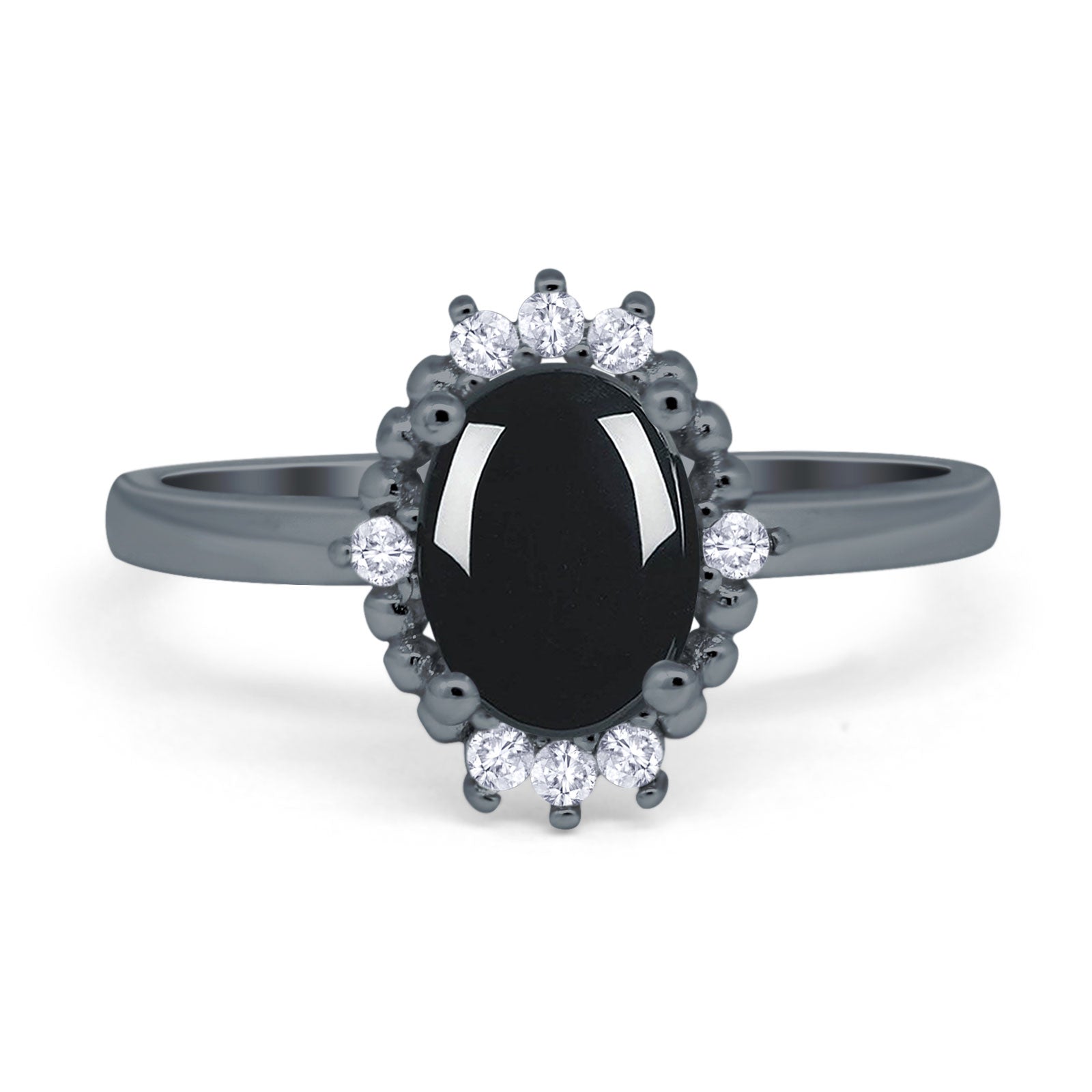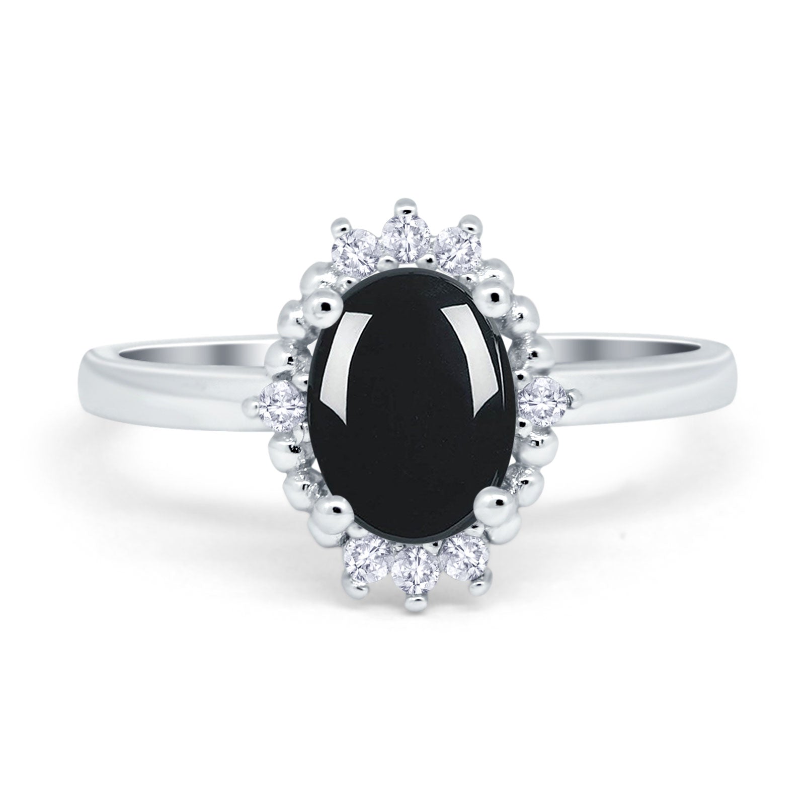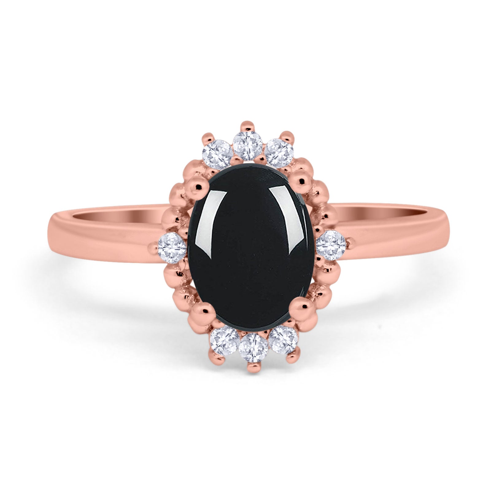 Vintage Style Oval Natural Black Onyx Beaded Ring 925 Sterling Silver
