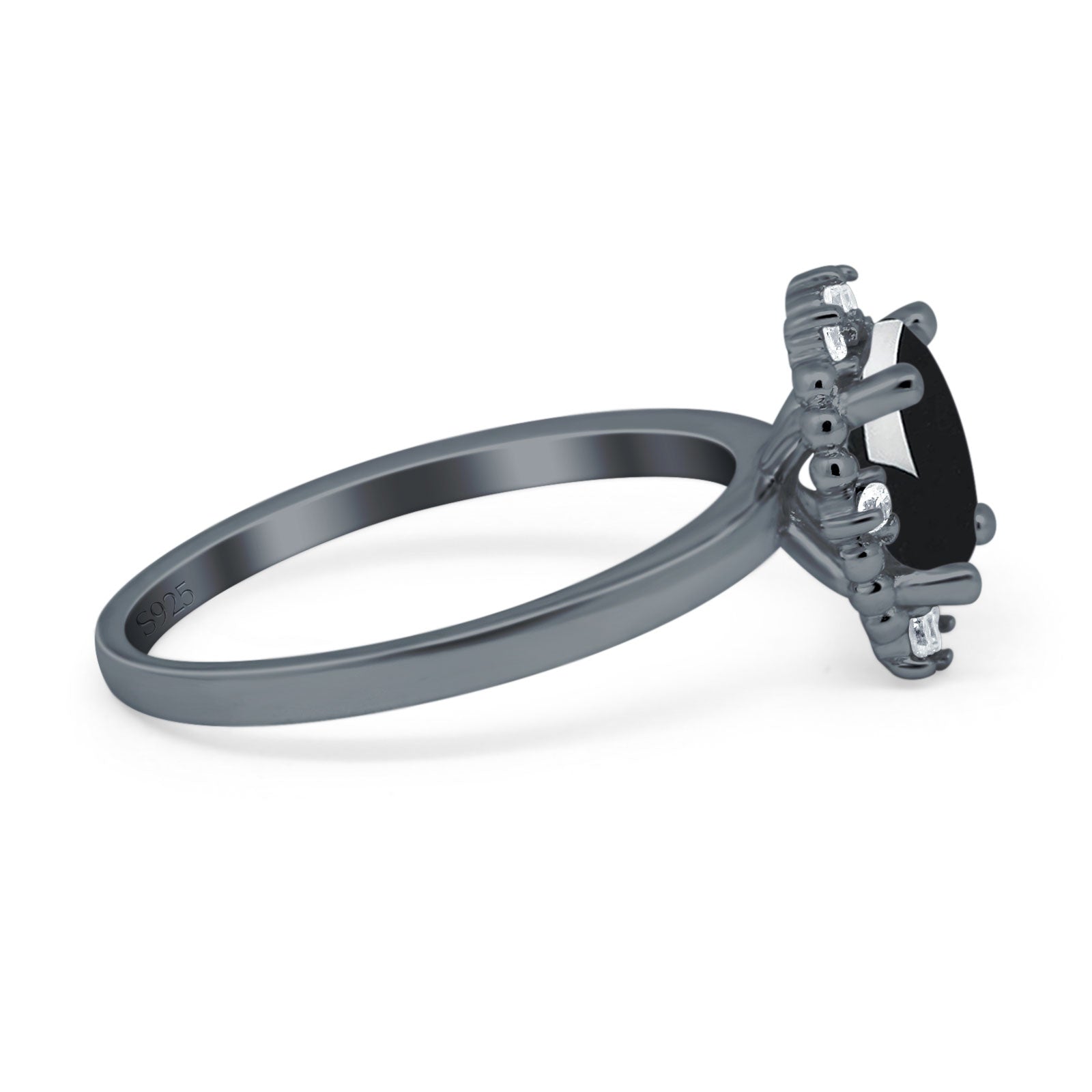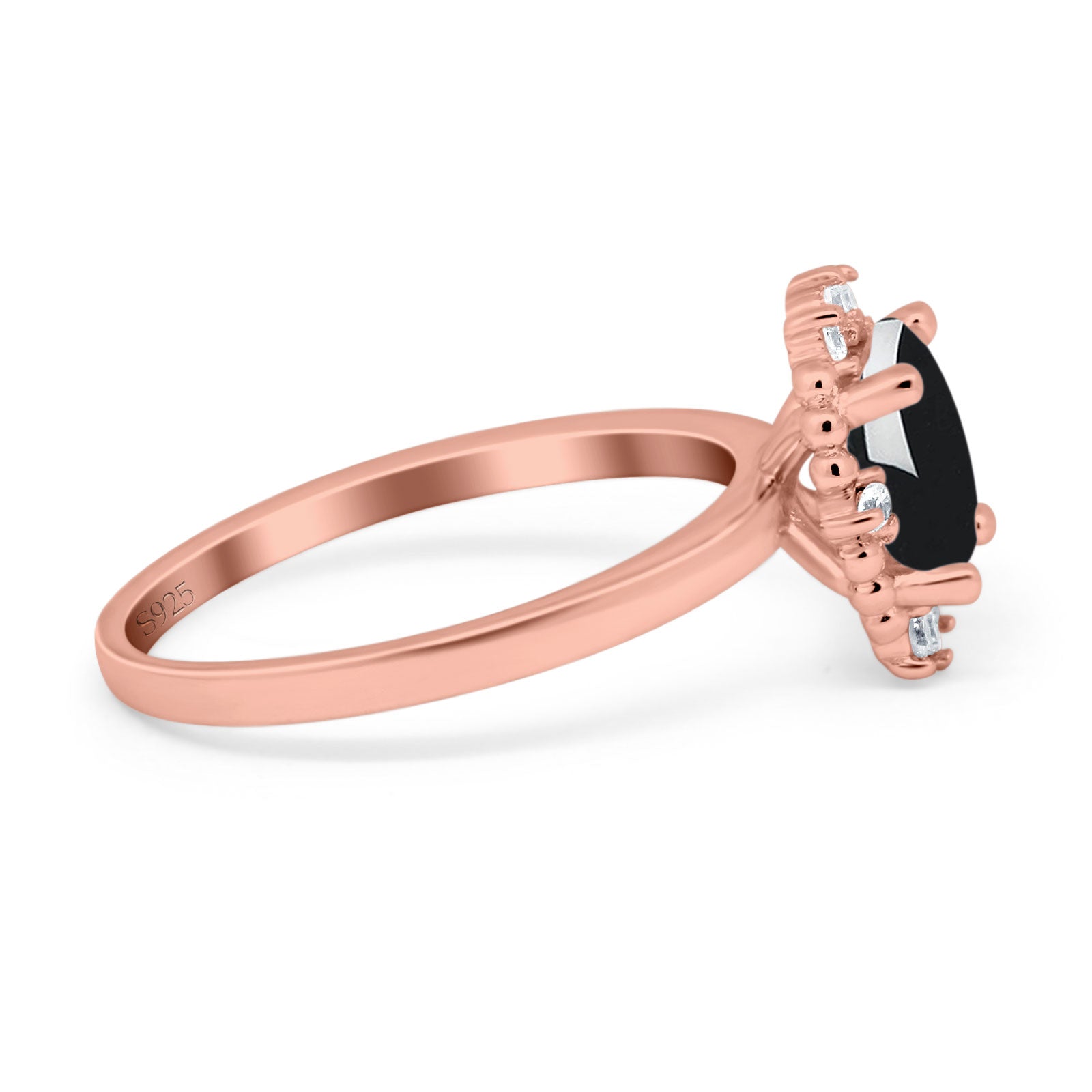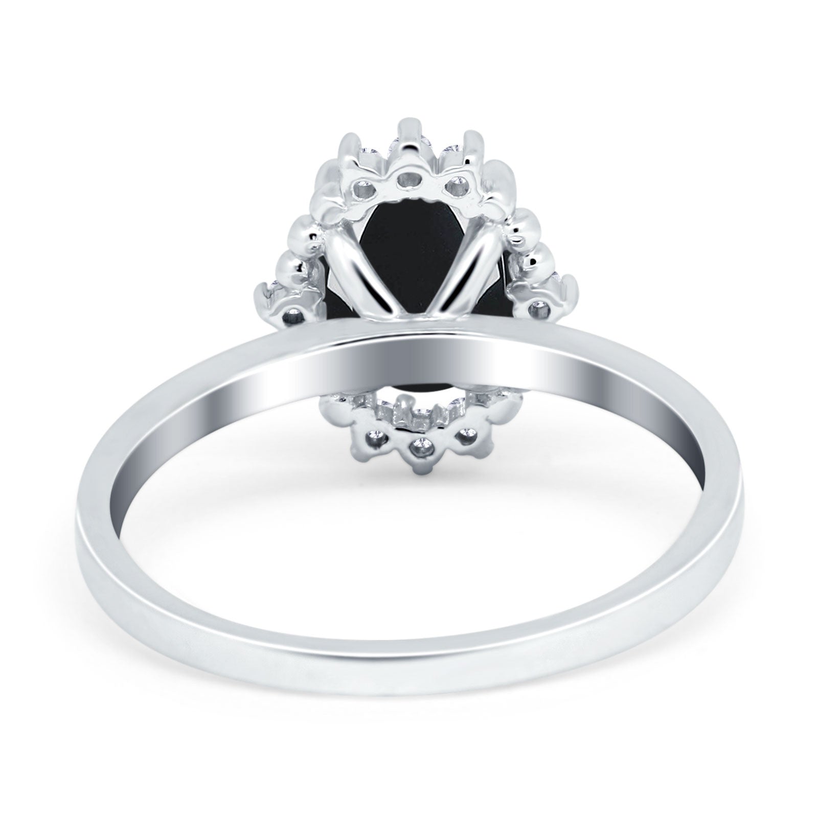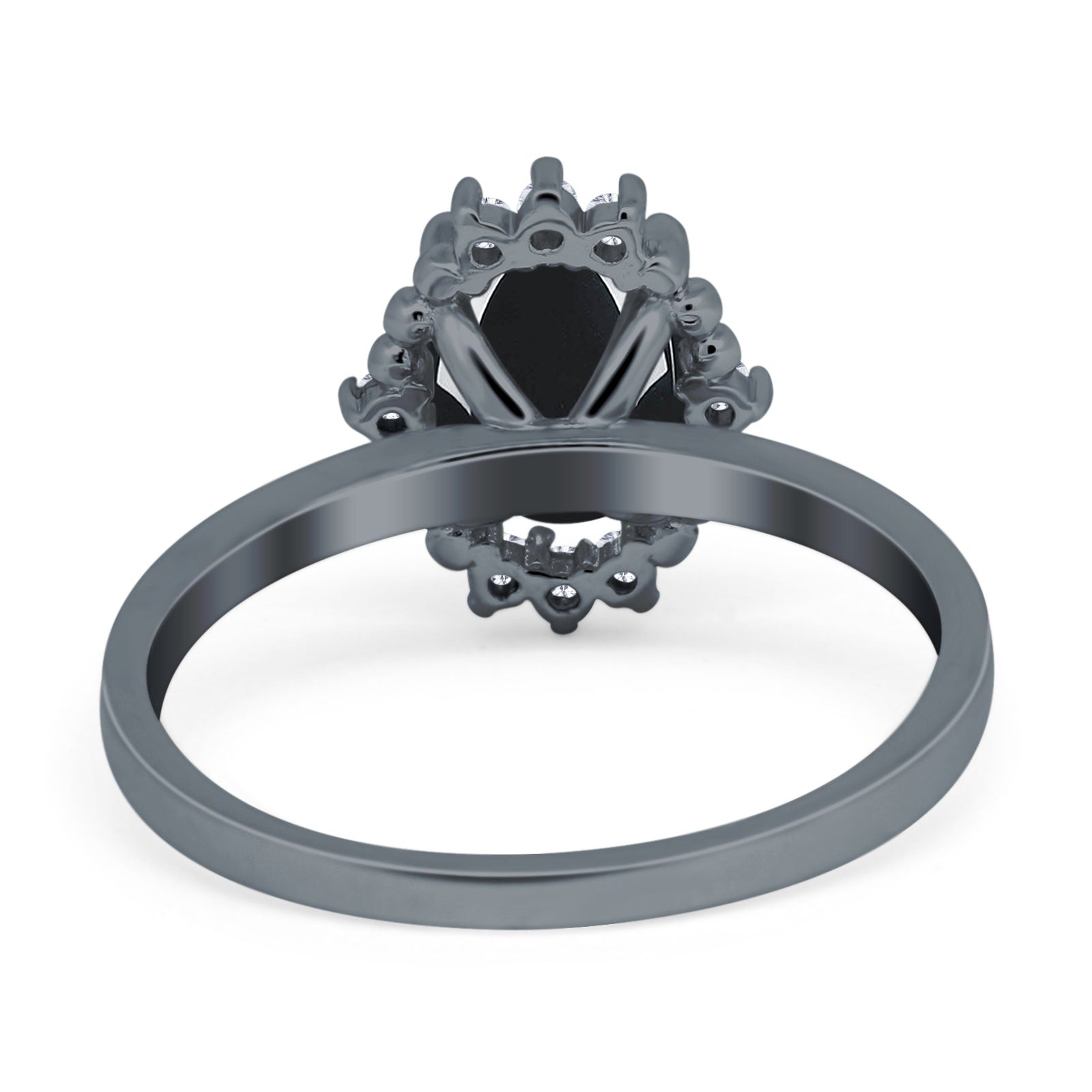 Vintage Style Oval Natural Black Onyx Beaded Ring 925 Sterling Silver