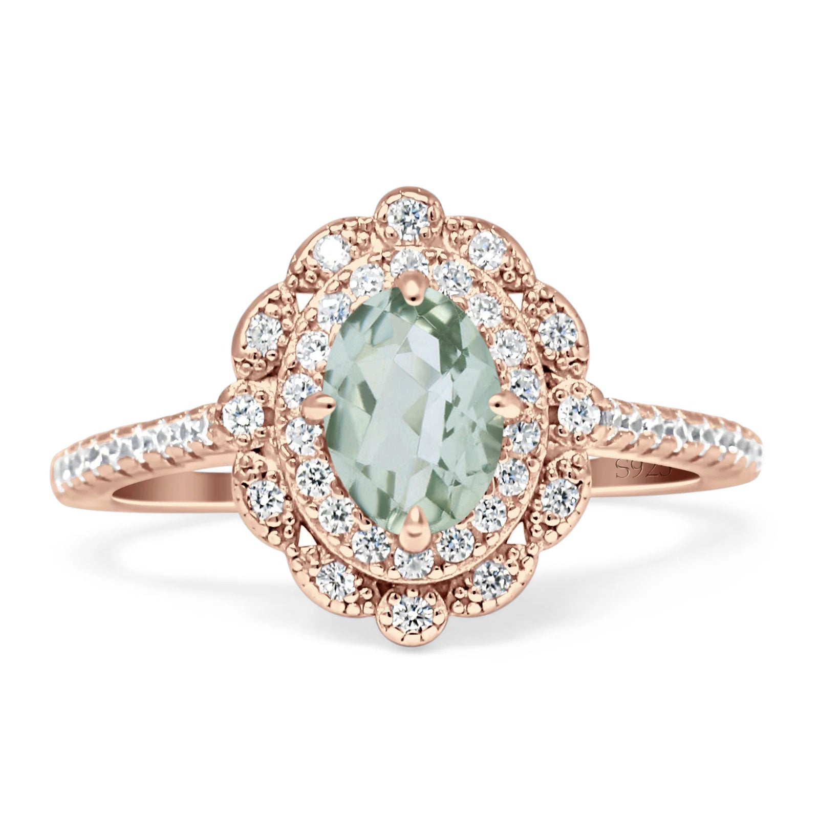 Product Description: The vintage style oval natural gemstone halo engagement ring is a timeless and elegant piece of jewelry that combines classic design with the beauty of nature's gemstones. Featuring a stunning oval shape natural gemstone at its center, this ring is encircled by a delicate halo of smaller, sparkling stones that add brilliance and charm to the overall design. Its vintage-inspired setting and intricate details evoke a sense of nostalgia, making it the perfect choice for those who appreciate the beauty of bygone eras.