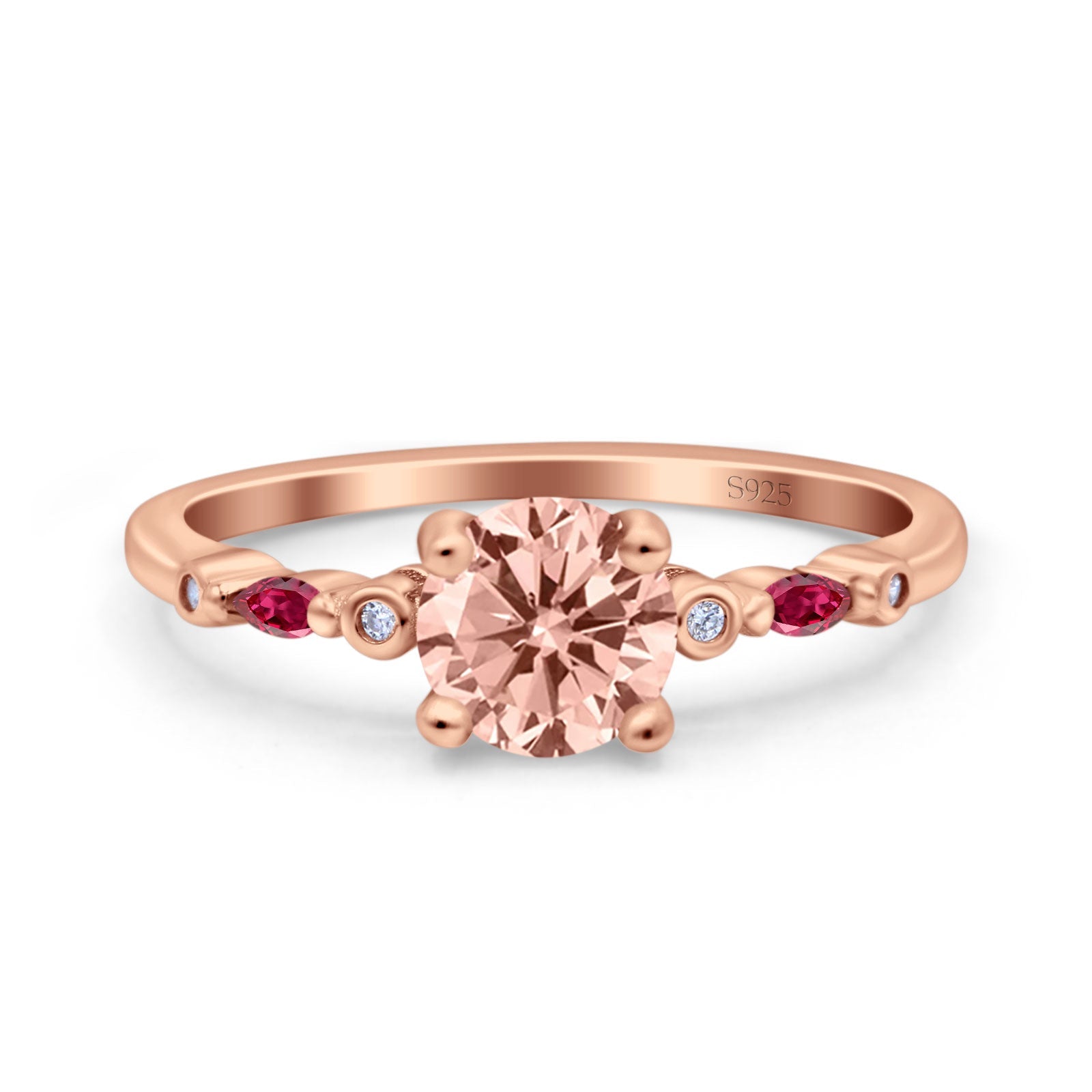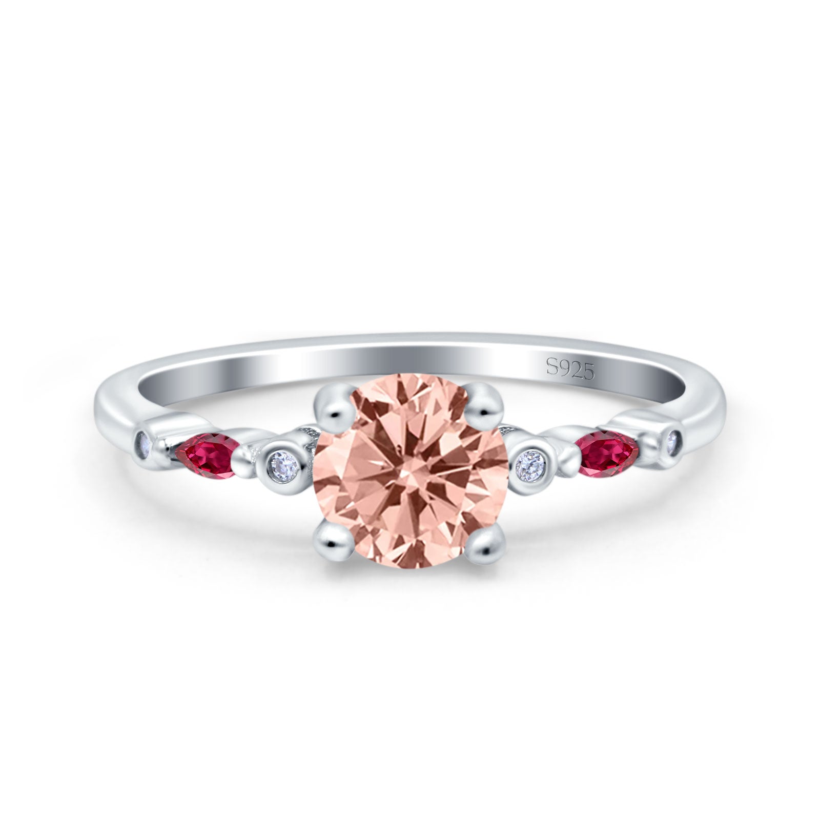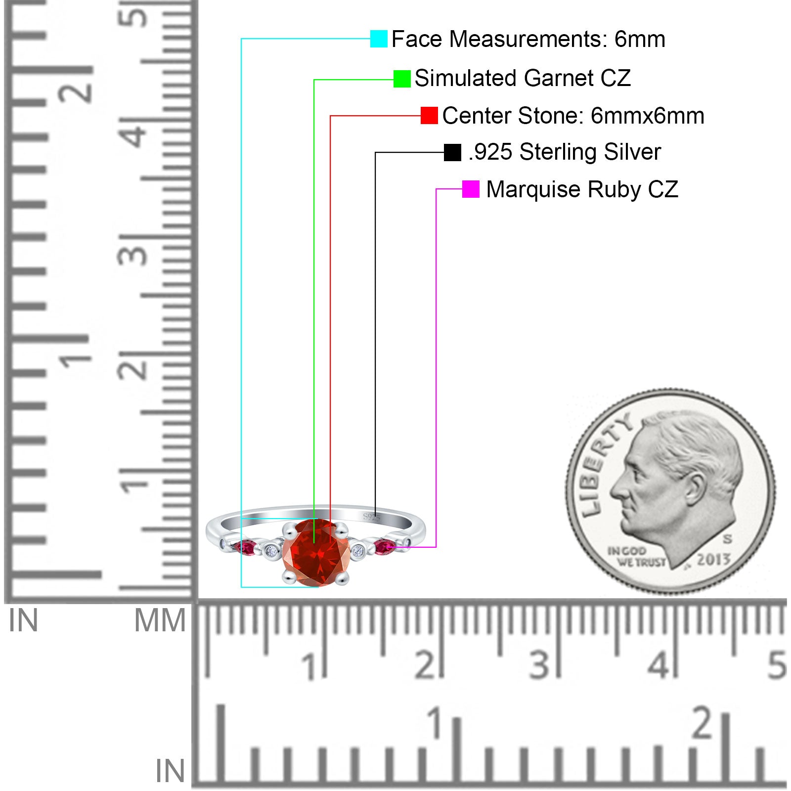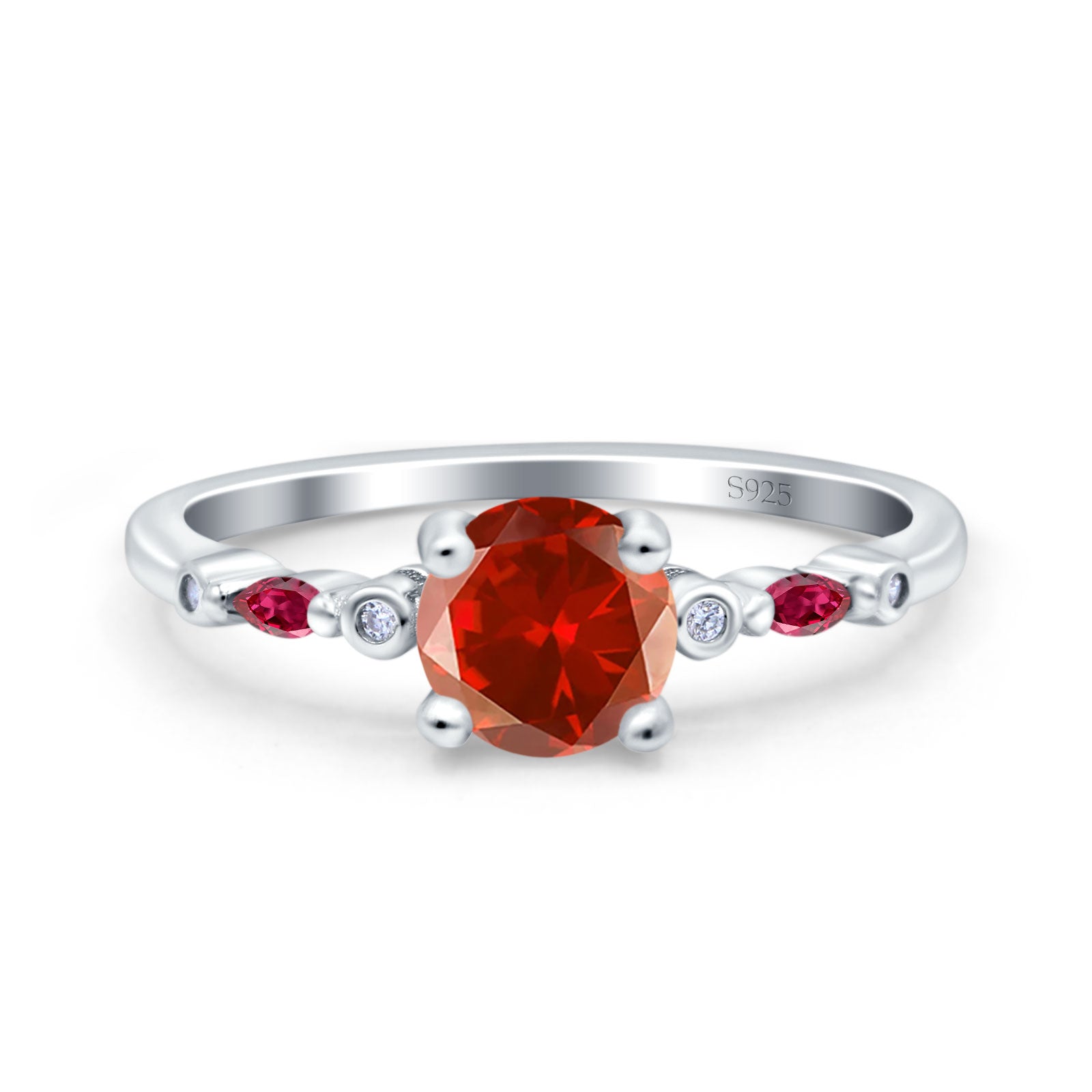 Vintage Style Round Bridal Wedding Engagement Ring Marquise Ruby Simulated Cubic Zirconia 925 Sterling Silver