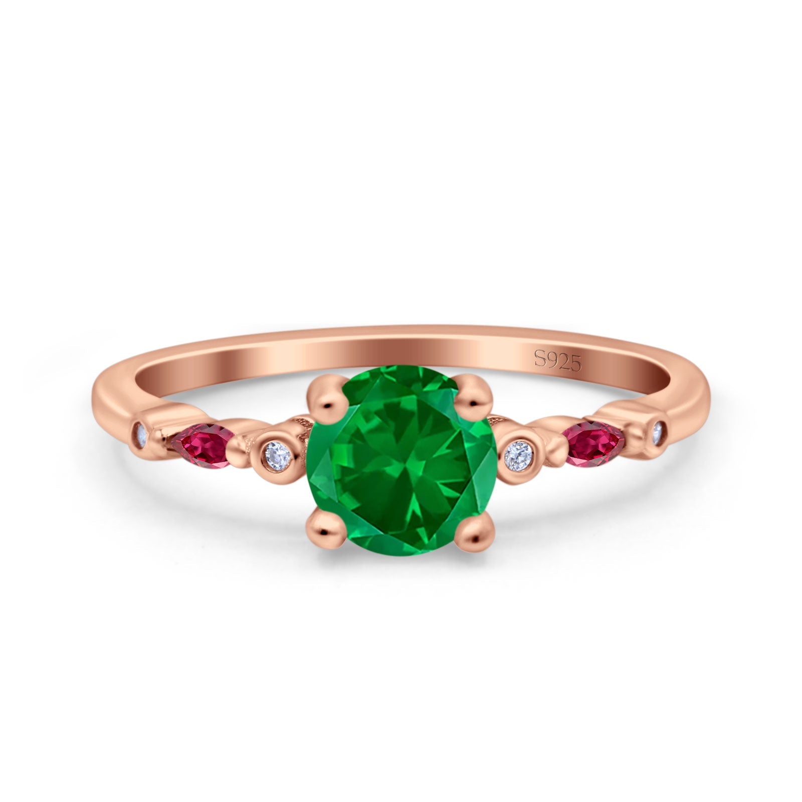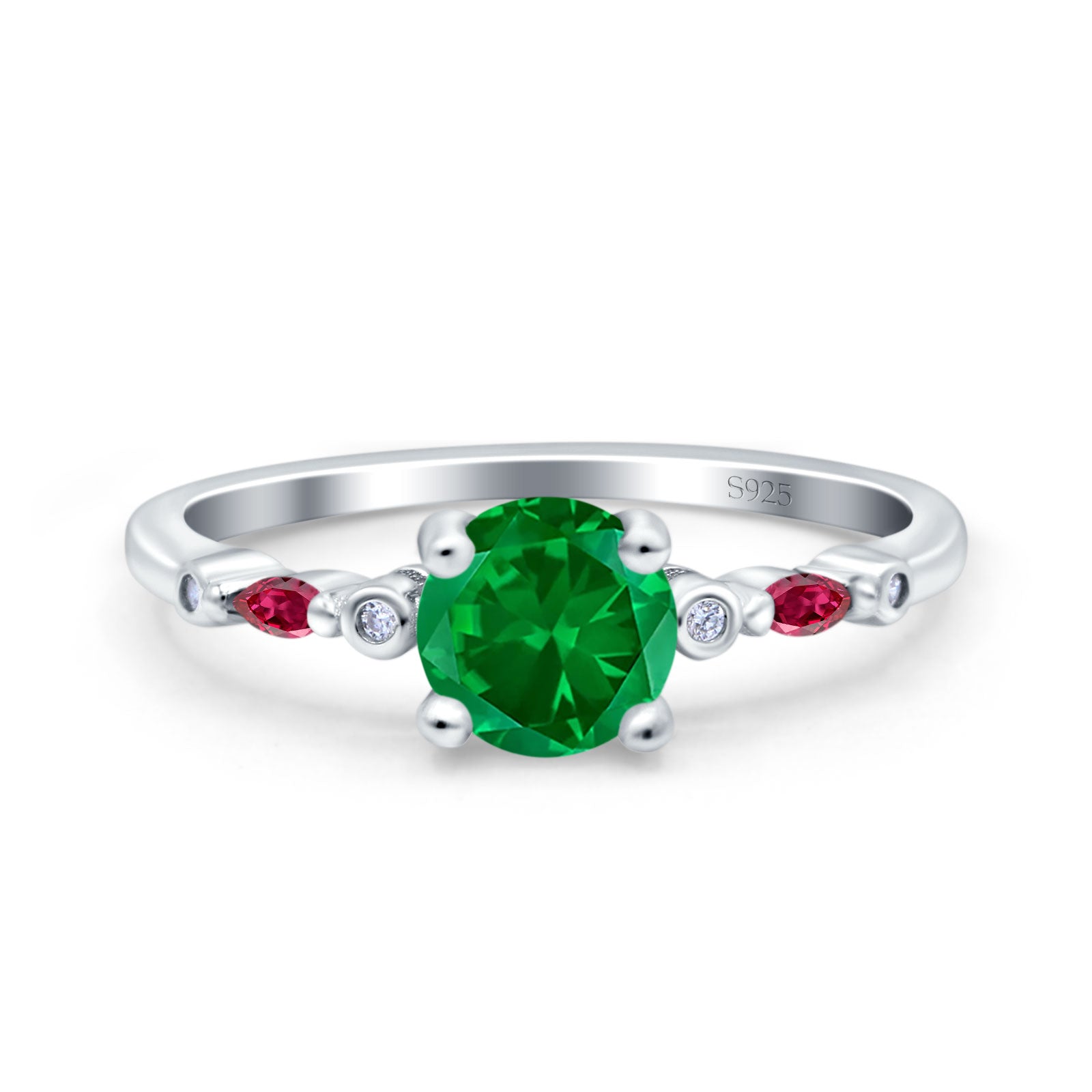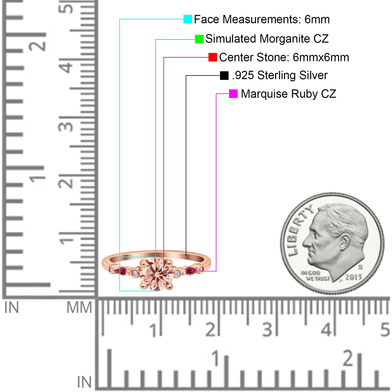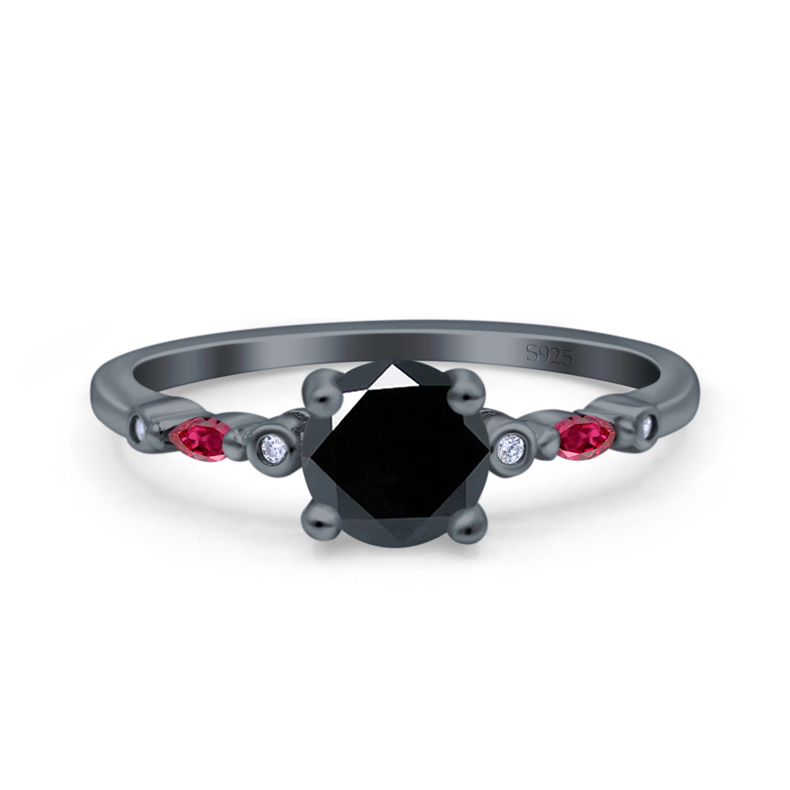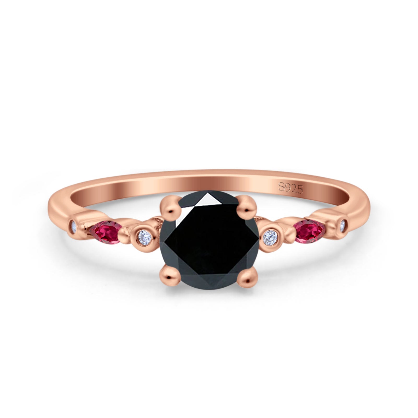 Vintage Style Round Bridal Wedding Engagement Ring Marquise Ruby Simulated Cubic Zirconia 925 Sterling Silver