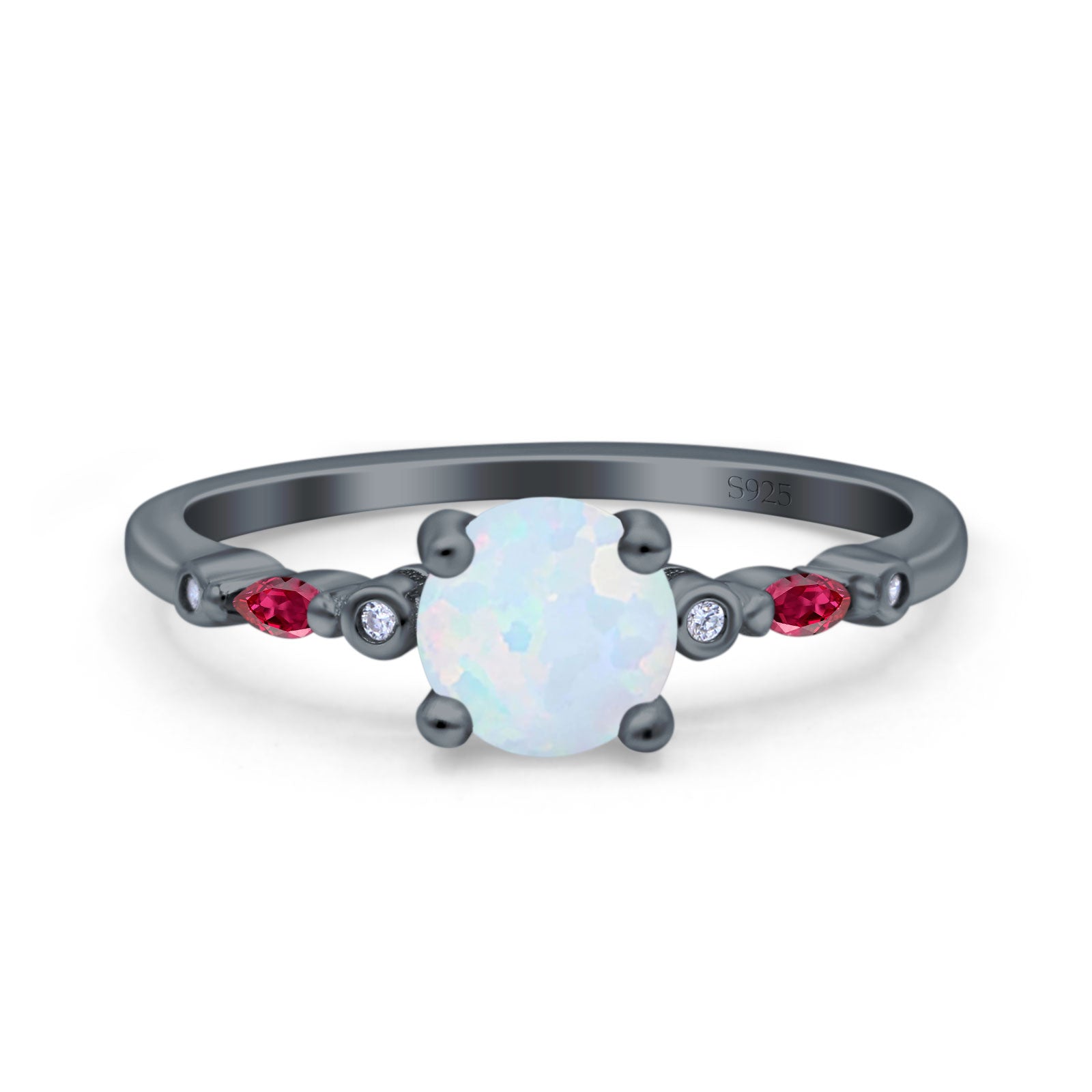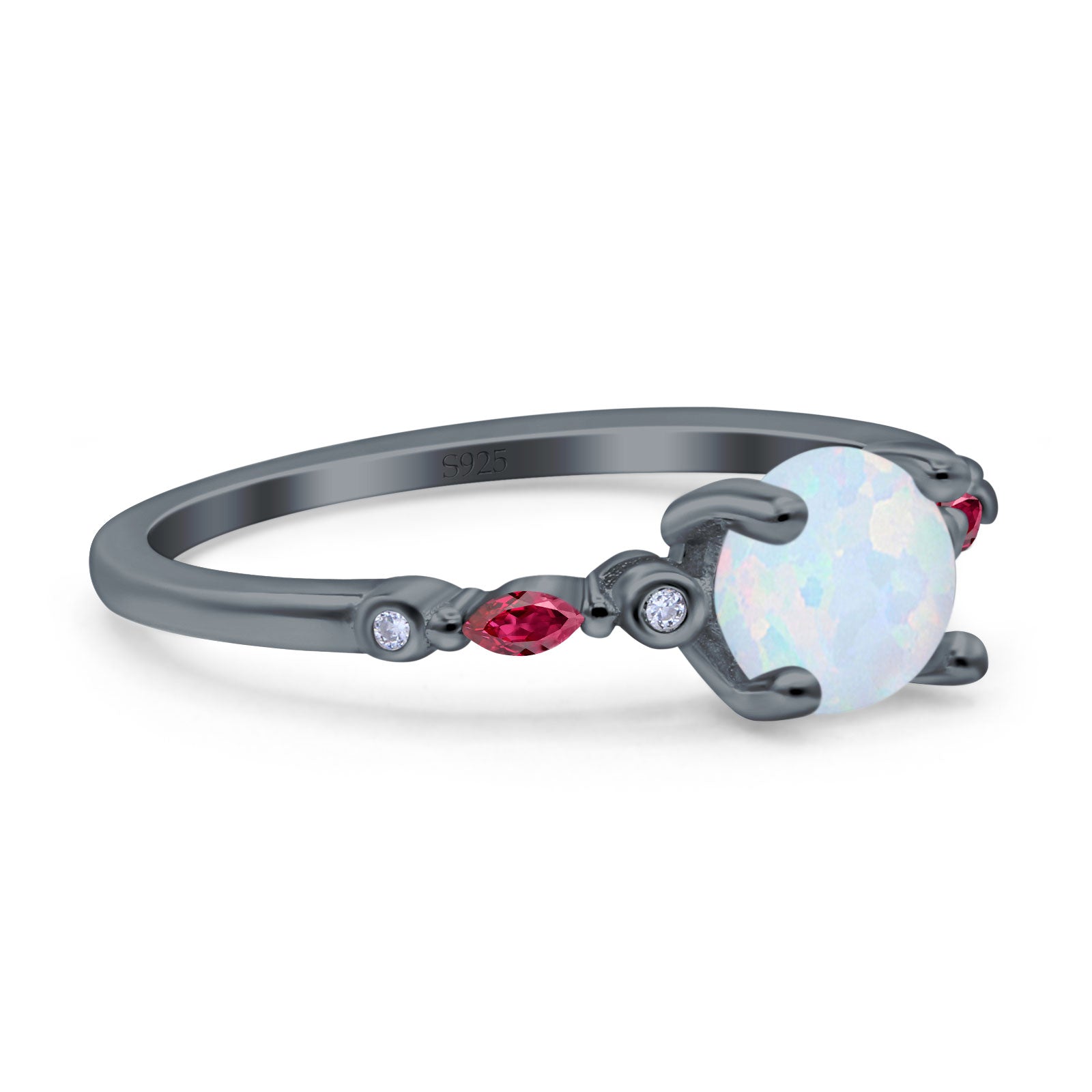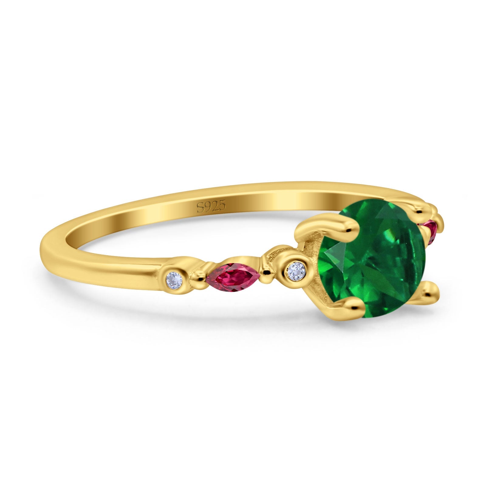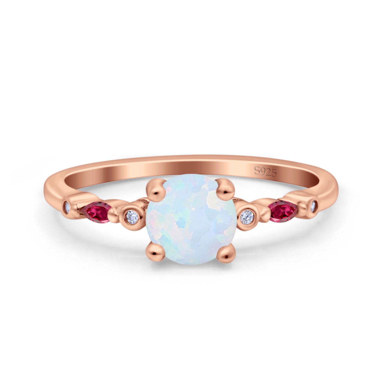 Vintage Style Round Bridal Wedding Engagement Ring Marquise Ruby Simulated Cubic Zirconia 925 Sterling Silver