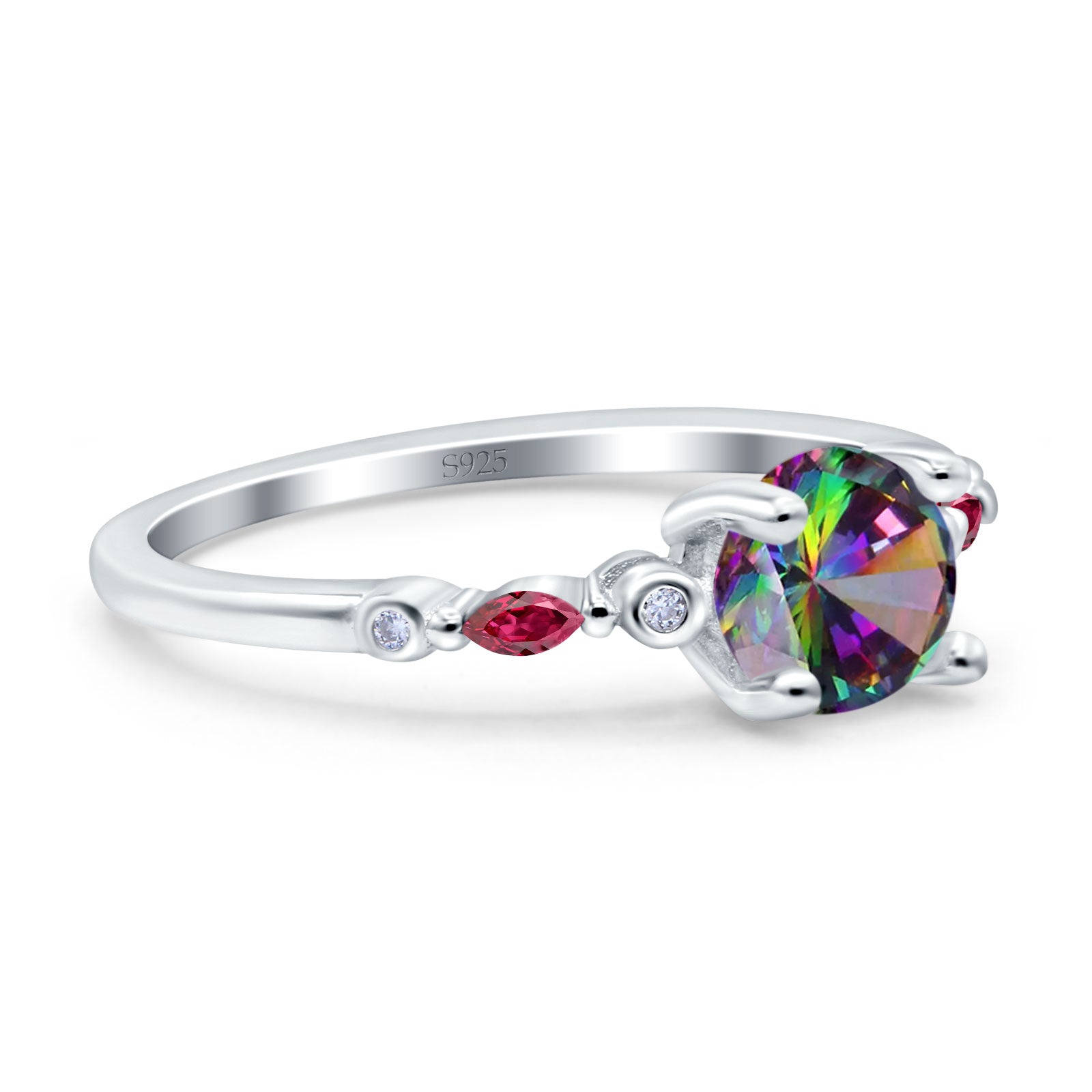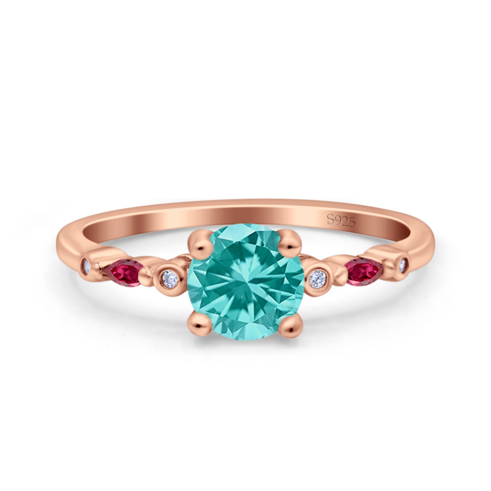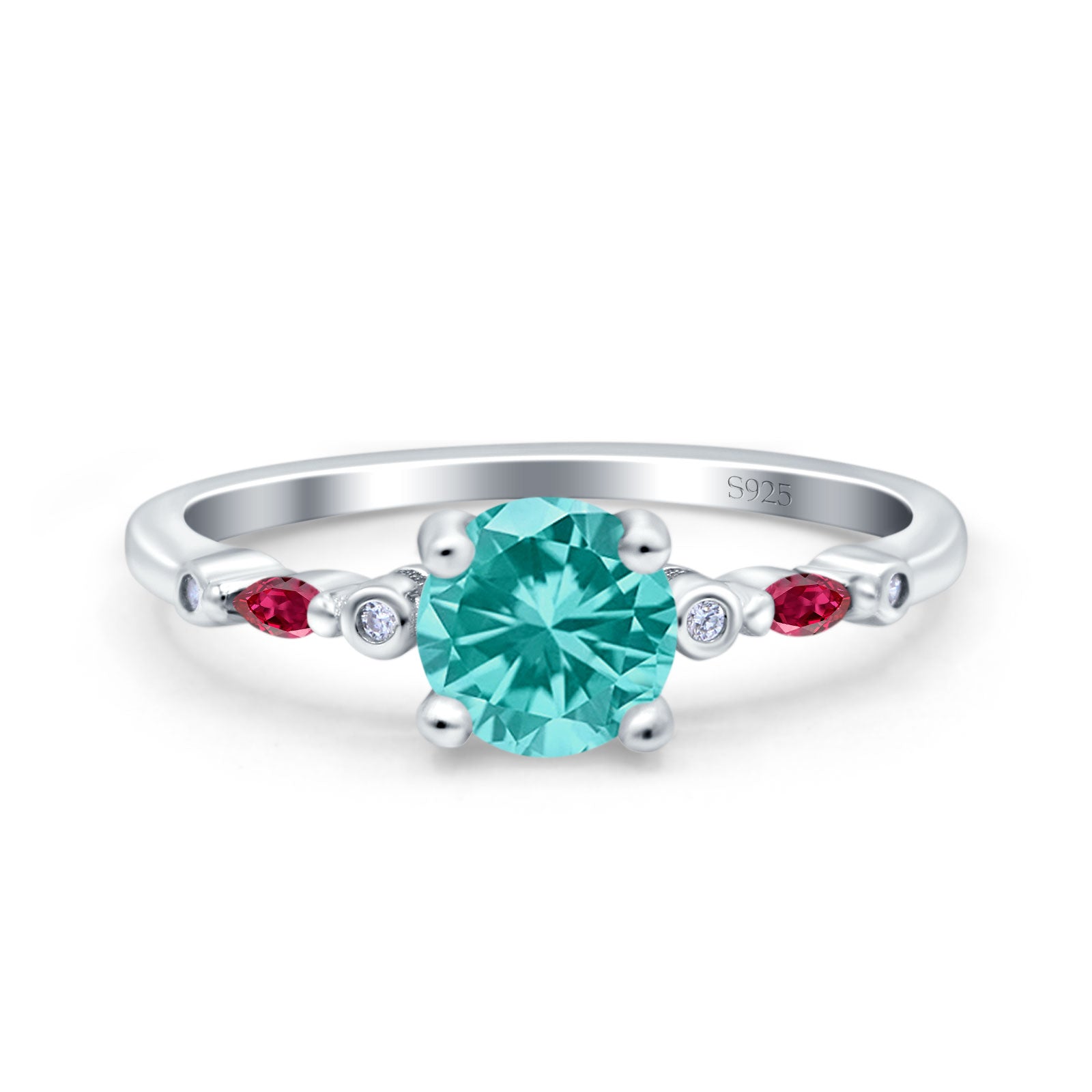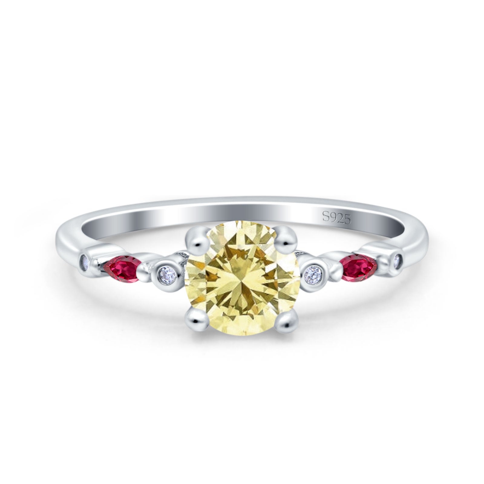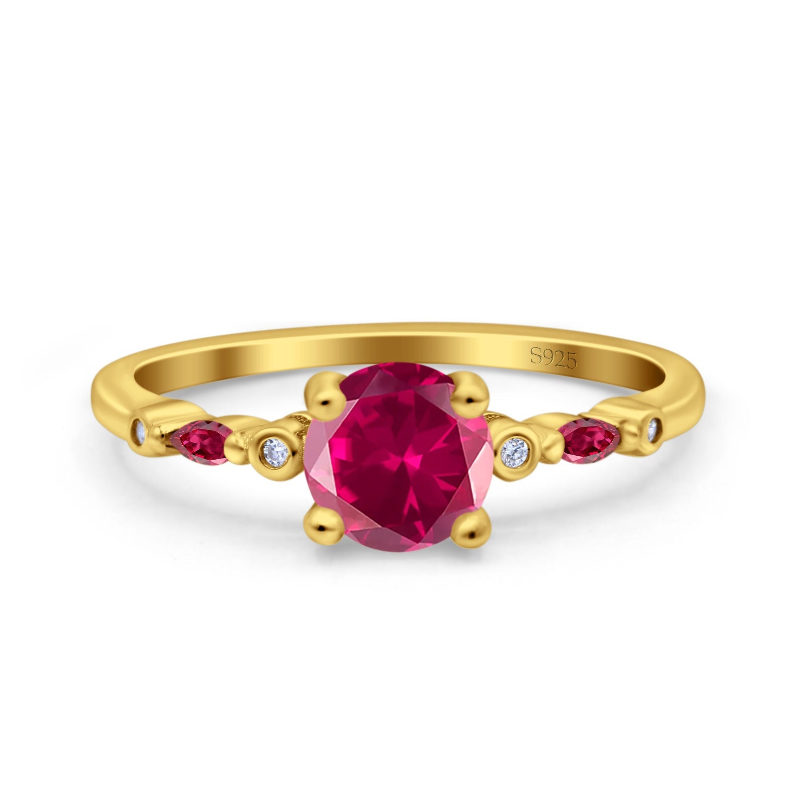 Vintage Style Round Bridal Wedding Engagement Ring Marquise Ruby Simulated Cubic Zirconia 925 Sterling Silver