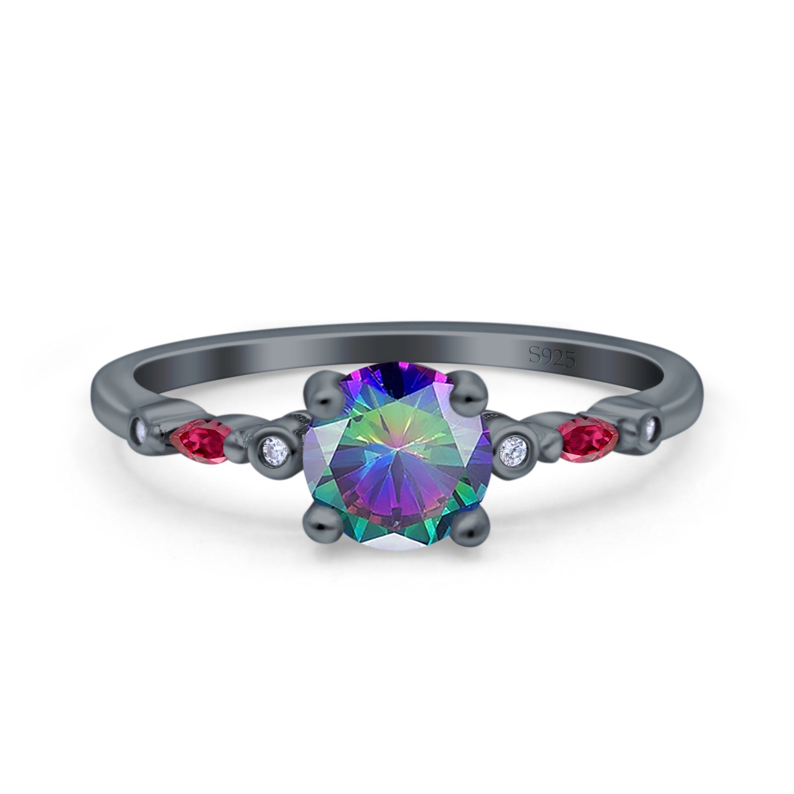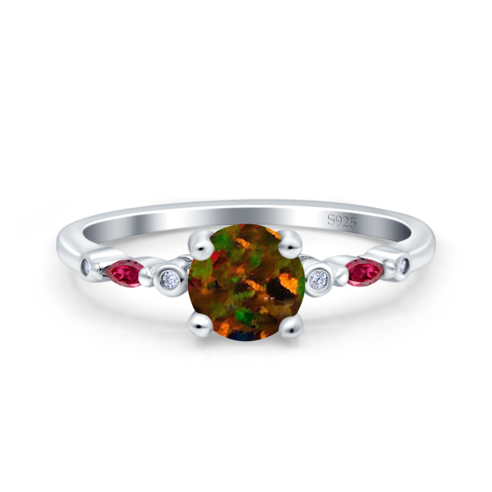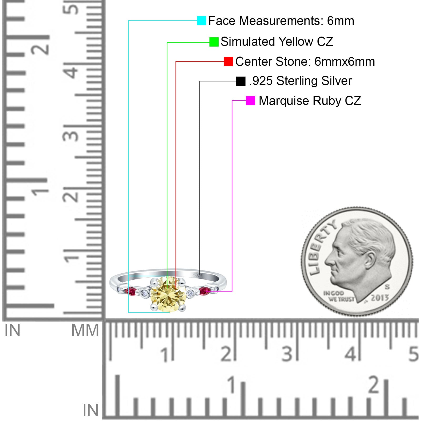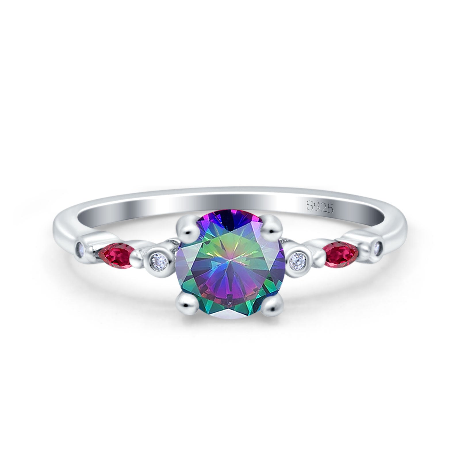 Vintage Style Round Bridal Wedding Engagement Ring Marquise Ruby Simulated Cubic Zirconia 925 Sterling Silver