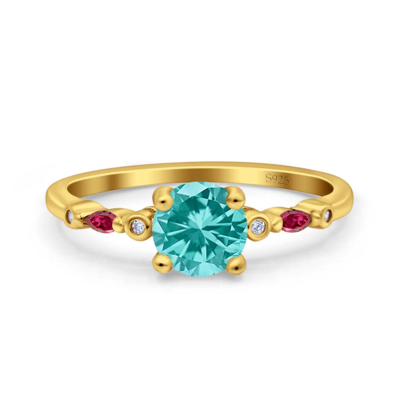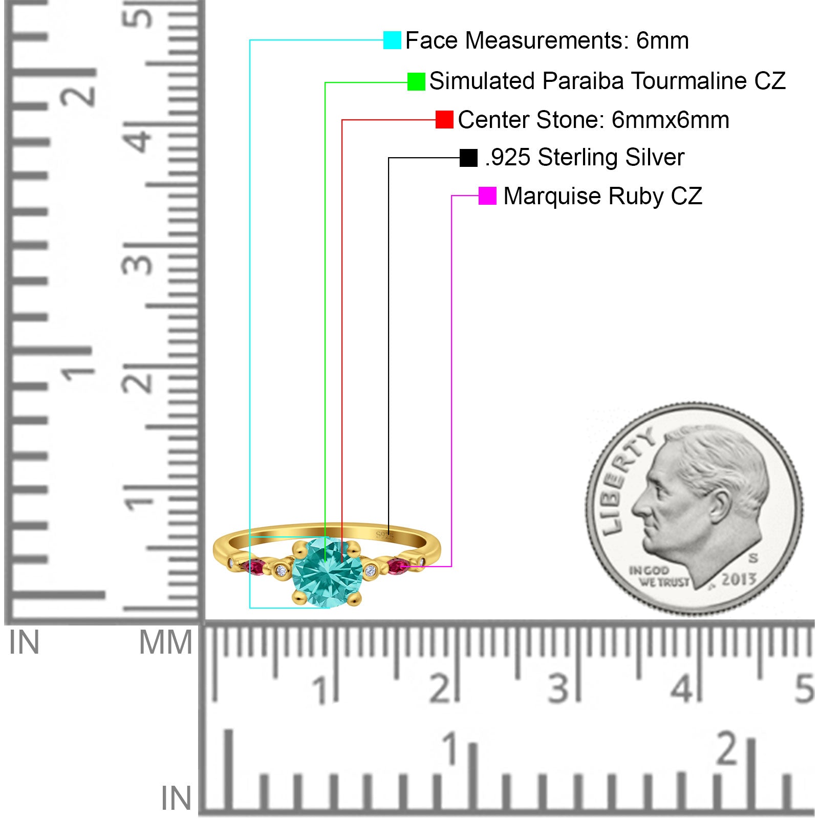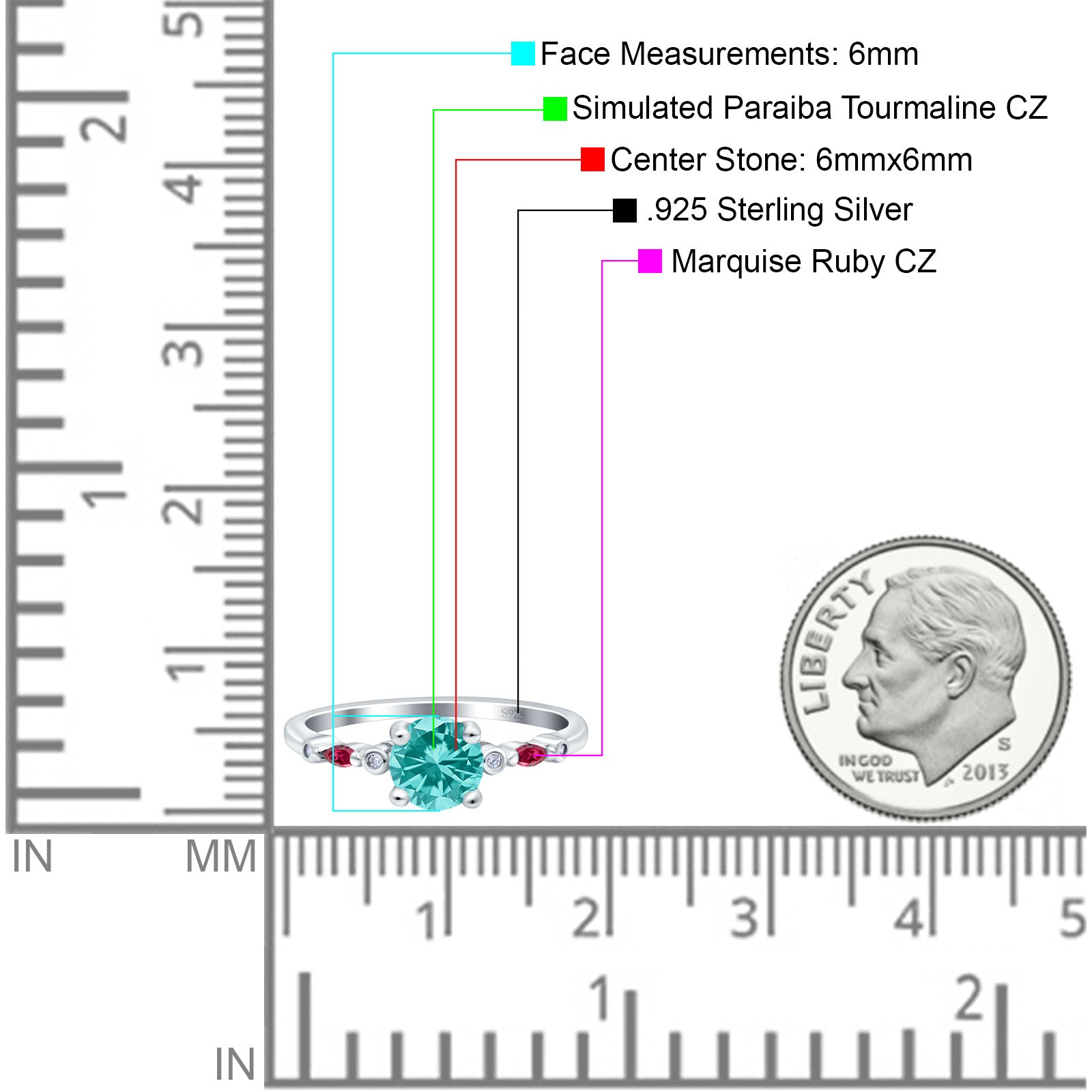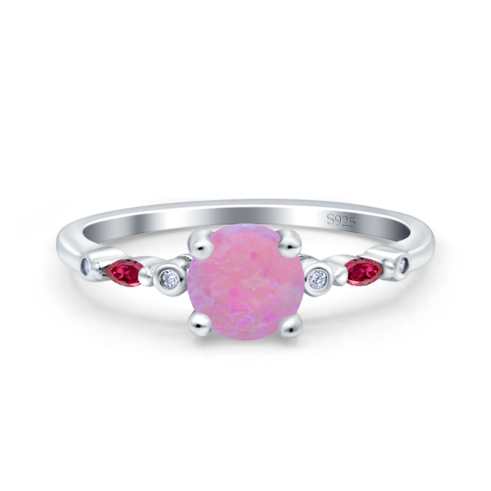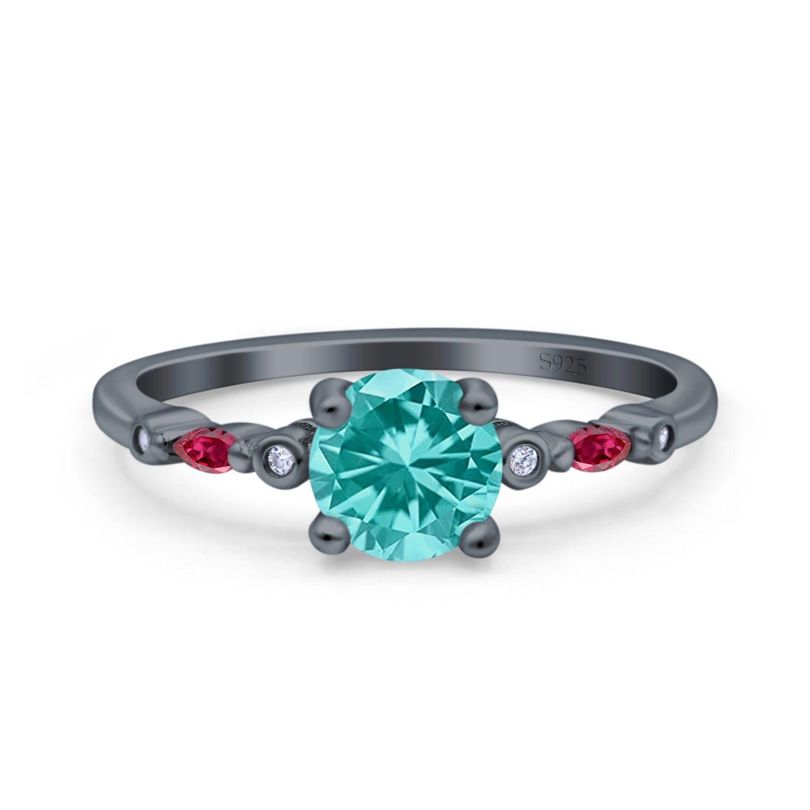 Vintage Style Round Bridal Wedding Engagement Ring Marquise Ruby Simulated Cubic Zirconia 925 Sterling Silver