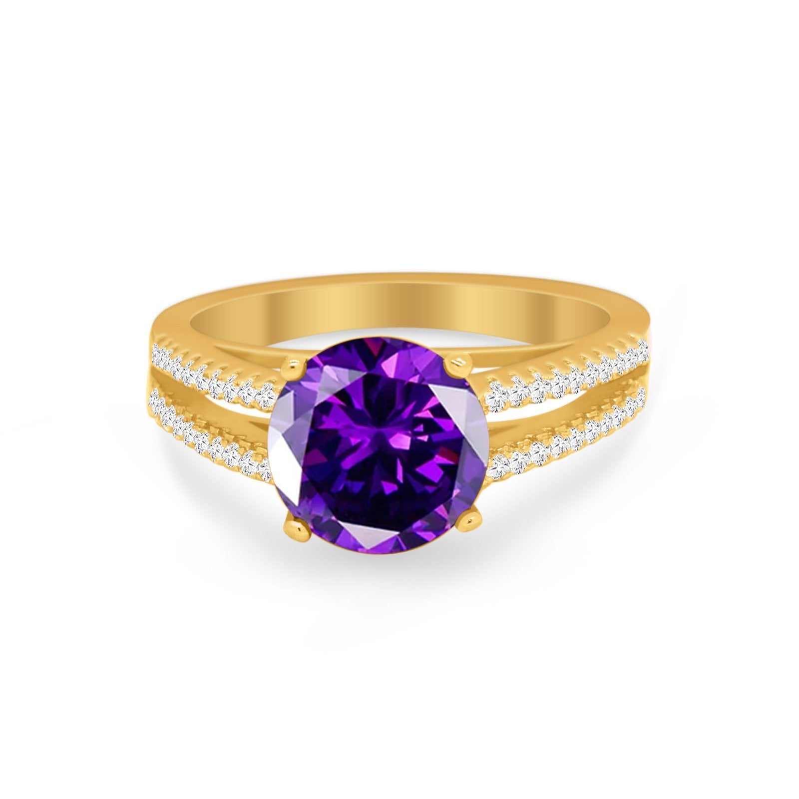 CZ & Blue Sapphire CZ Yellow Tone Silver