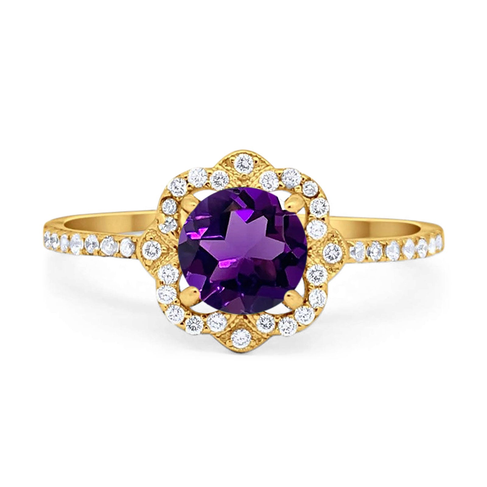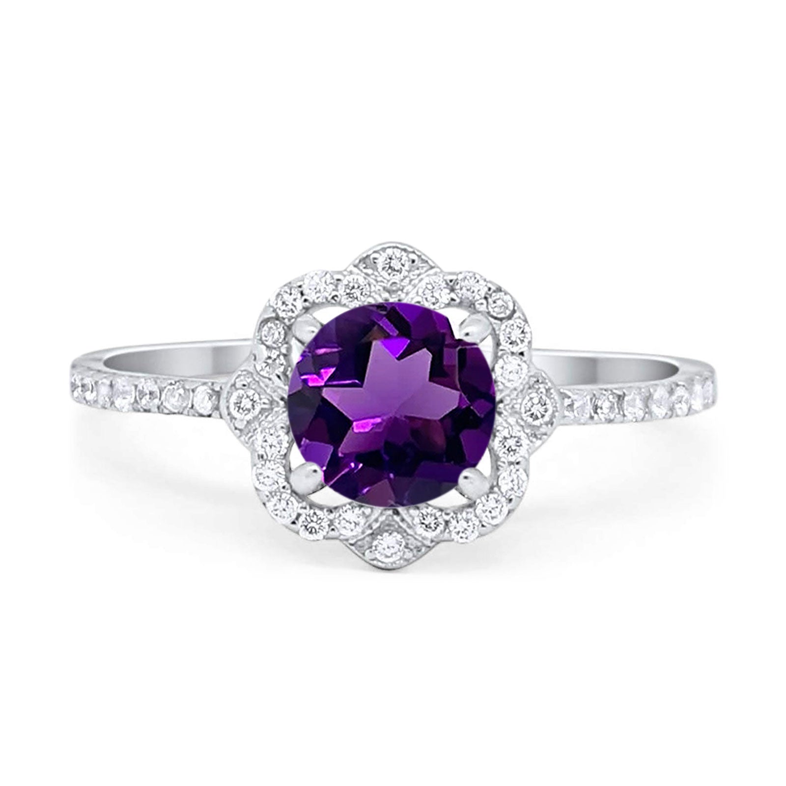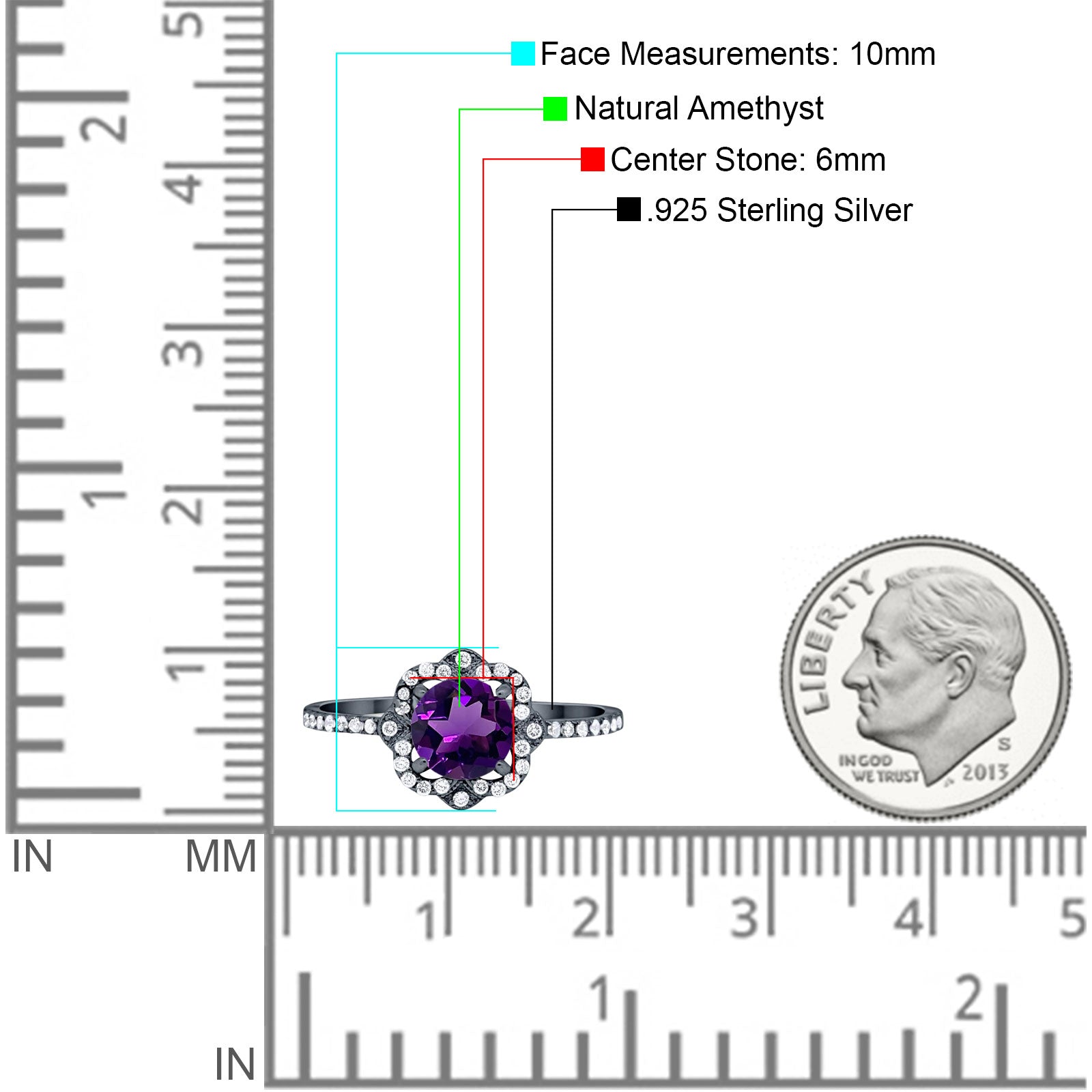 Vintage Style Round Natural Amethyst Flower Ring 925 Sterling Silver