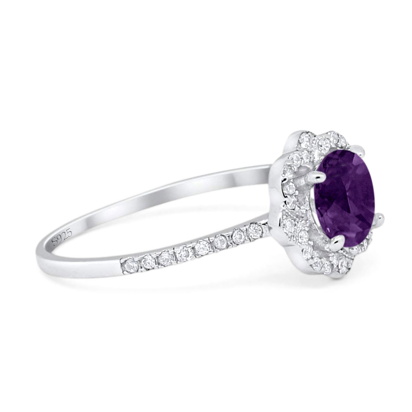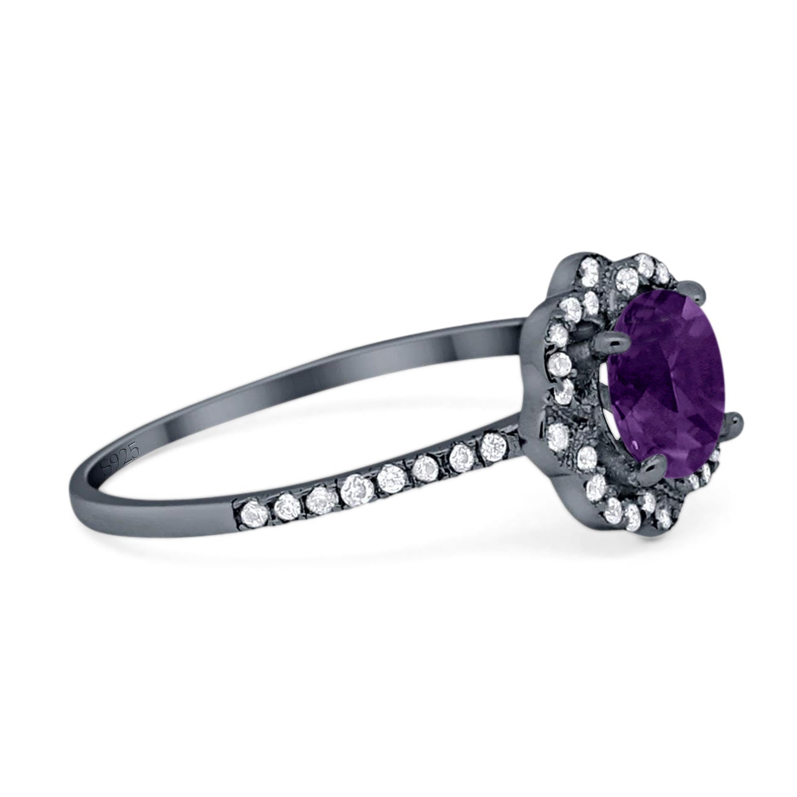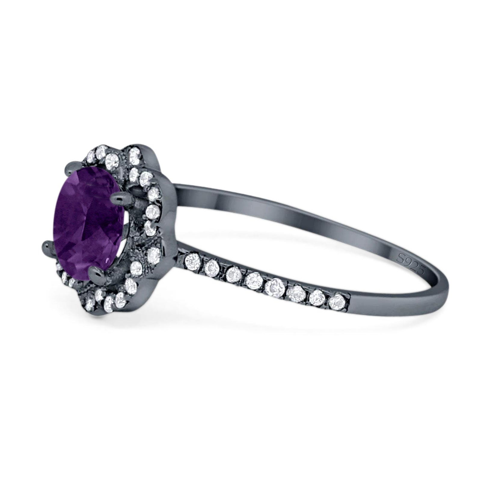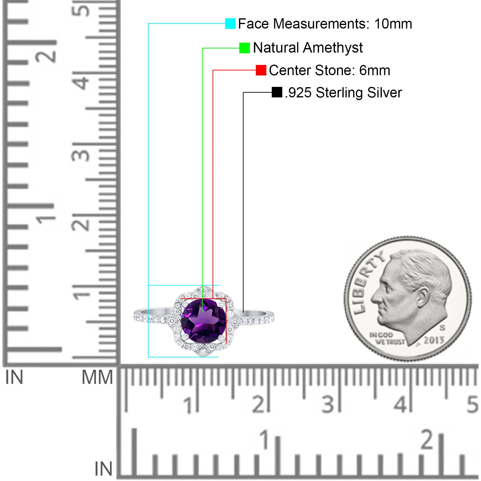 Vintage Style Round Natural Amethyst Flower Ring 925 Sterling Silver