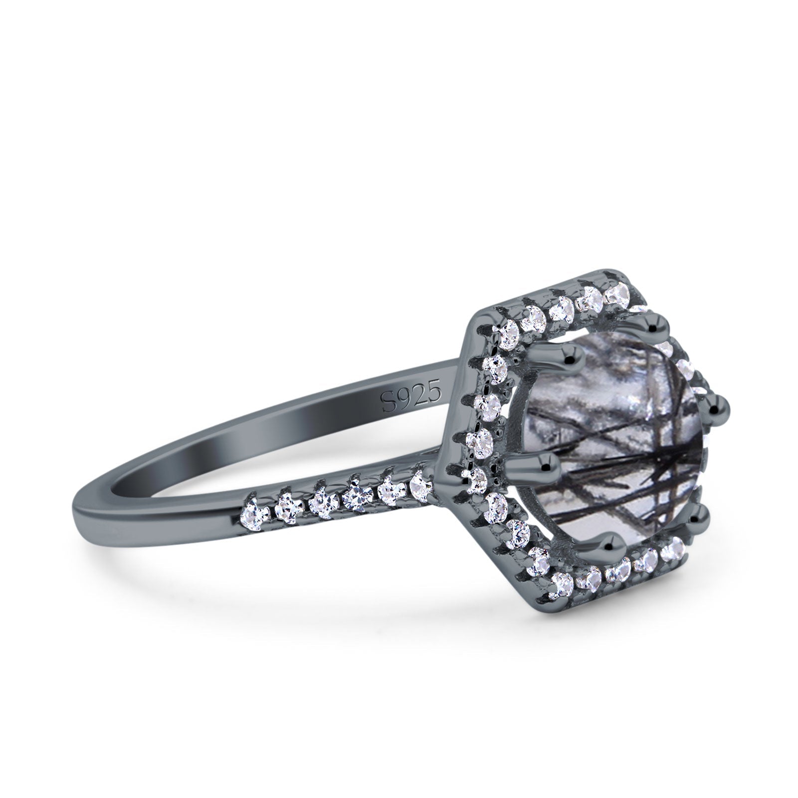 Minimalist 8mm Black Onyx Heart Ring 925 Sterling Silver