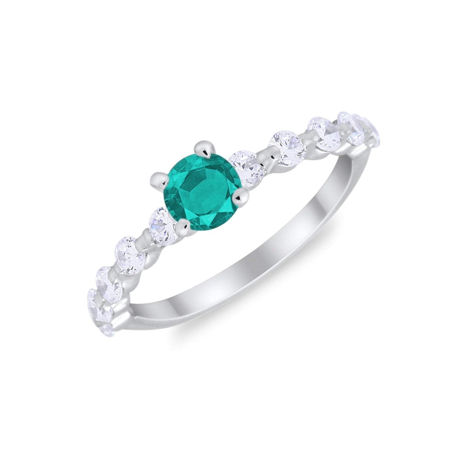 Minimalist 2.5mm Full Eternity Band CZ & Green Emerald CZ 925 Sterling Silver