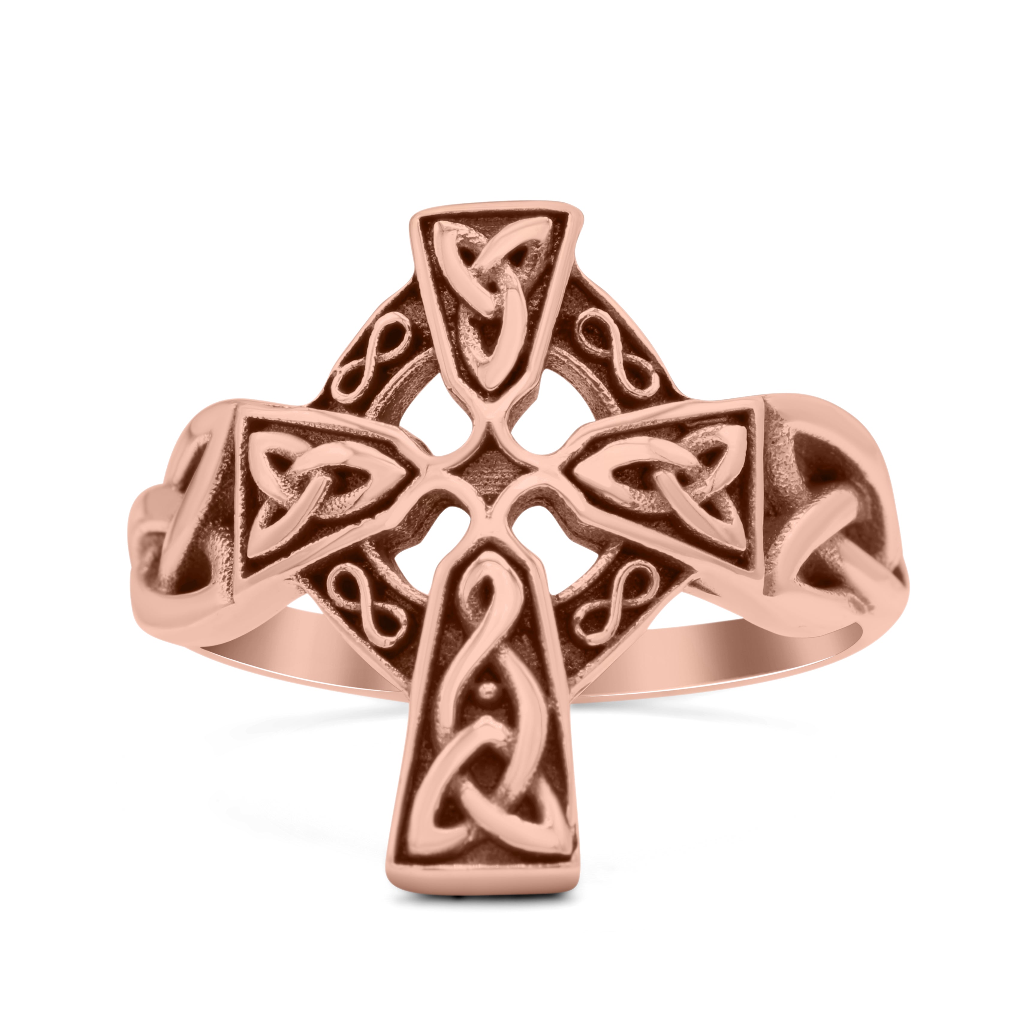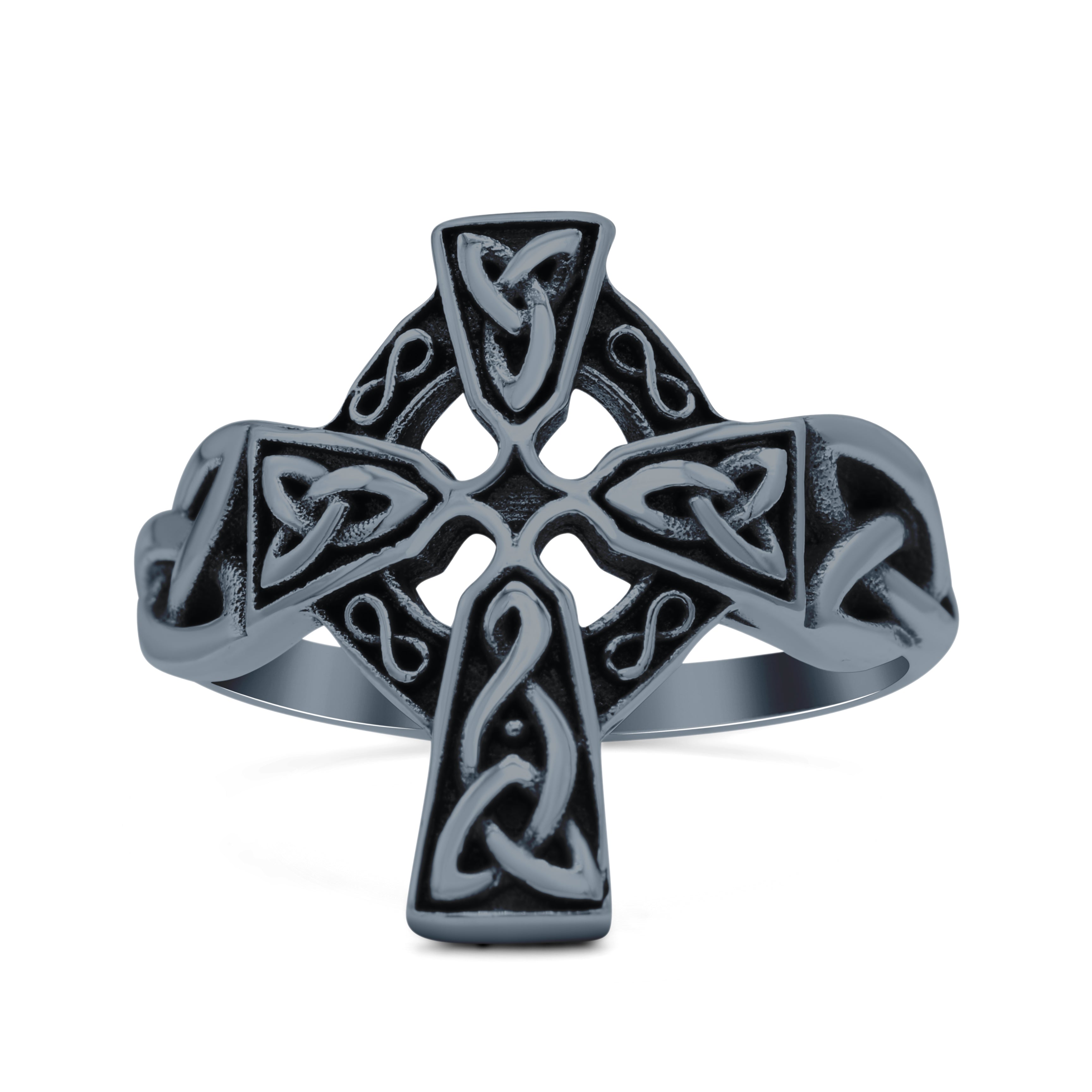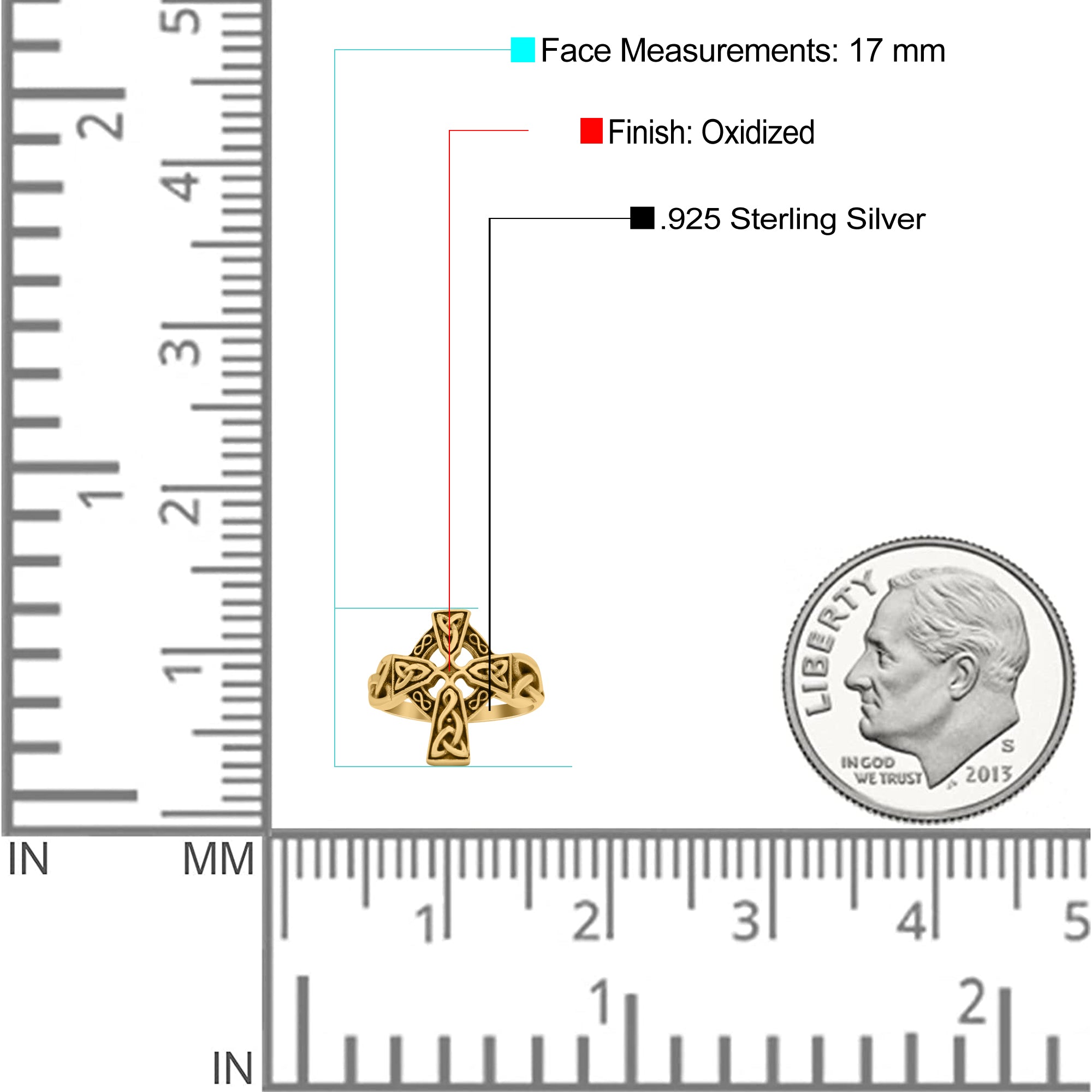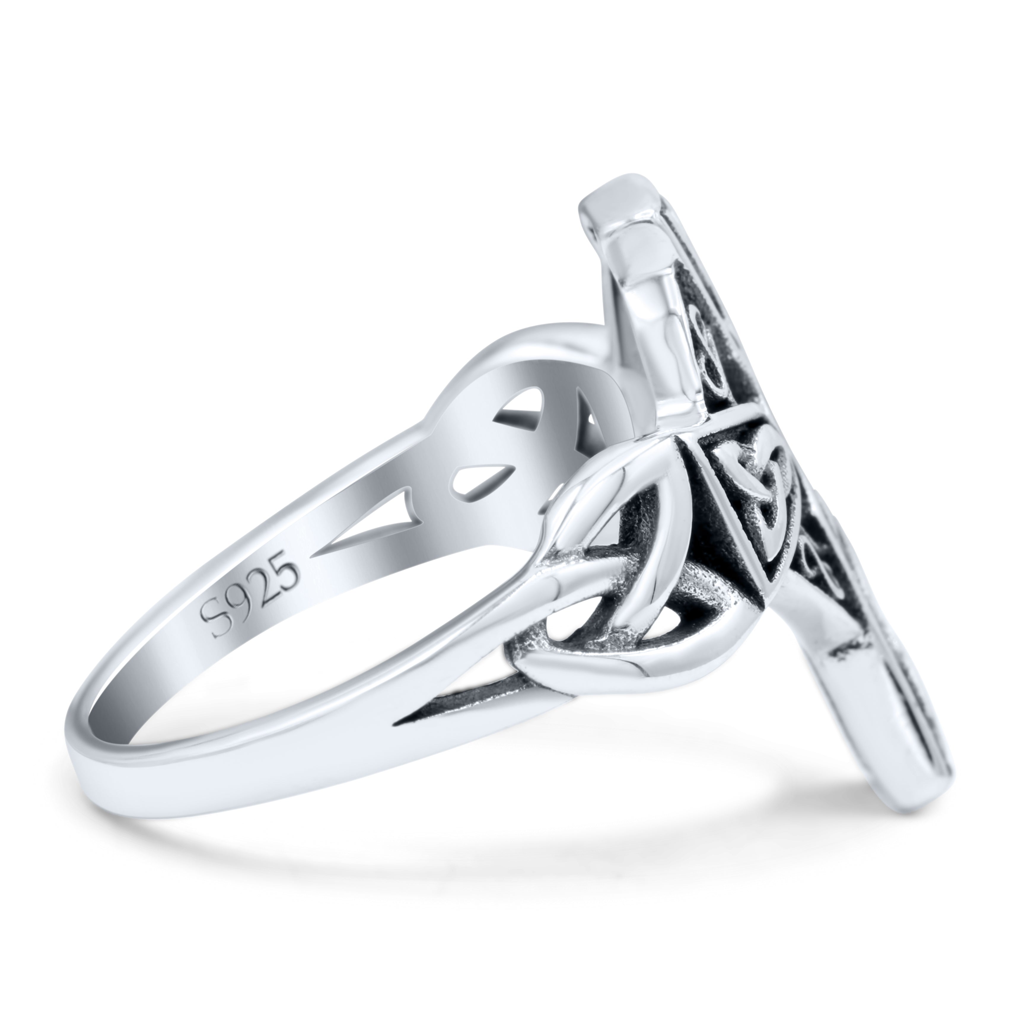 Vintage Triquetra Celtic Cross Traditional Infinity Knot Fashionable Oxidized Ring Band Thumb Ring (17mm)