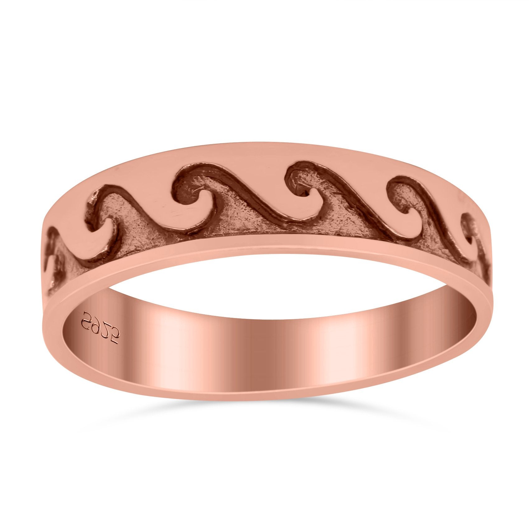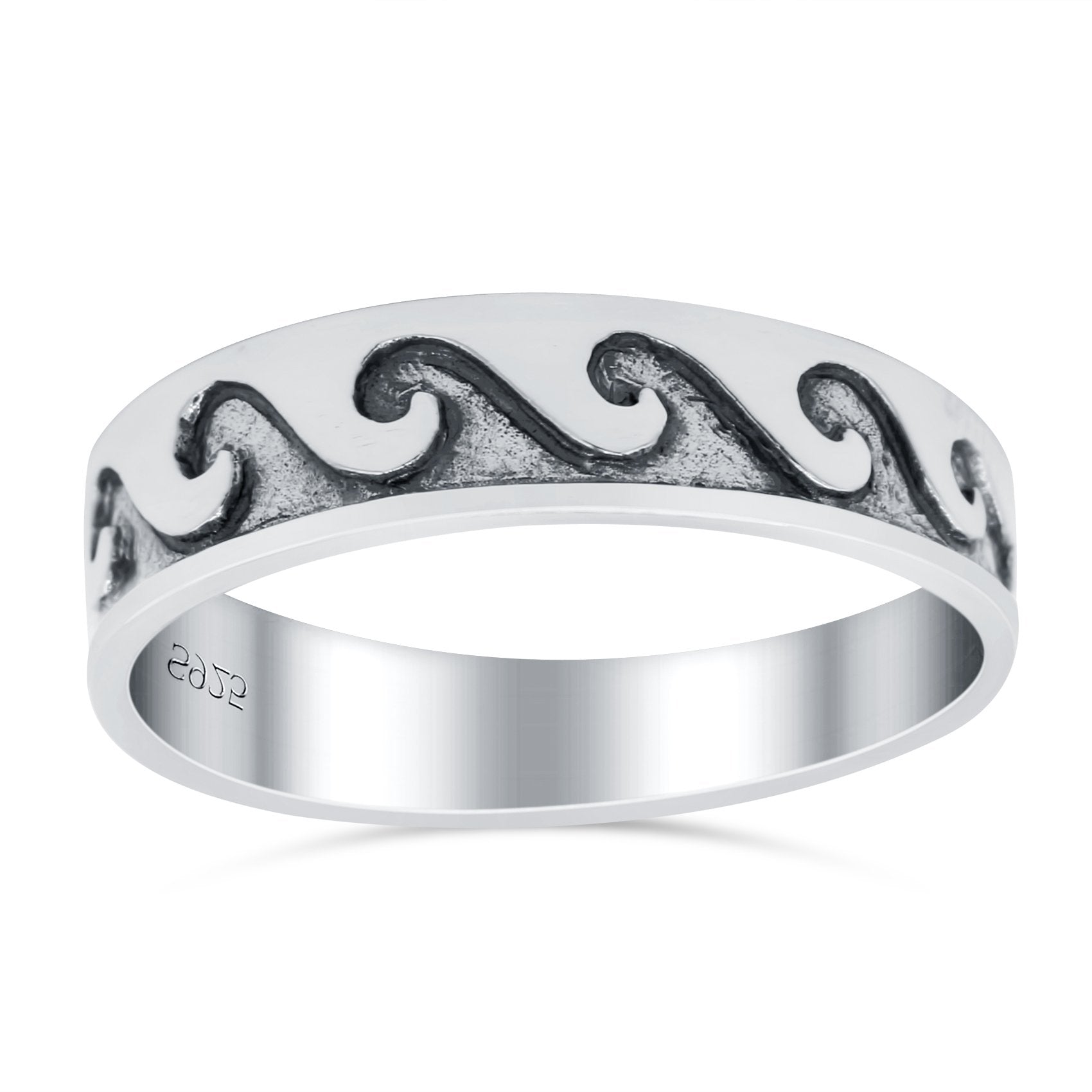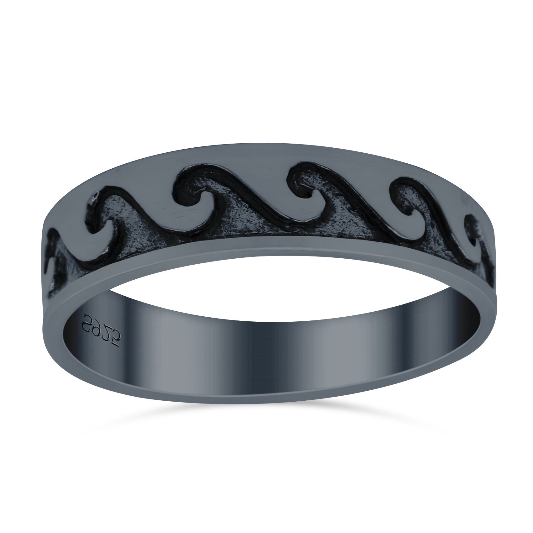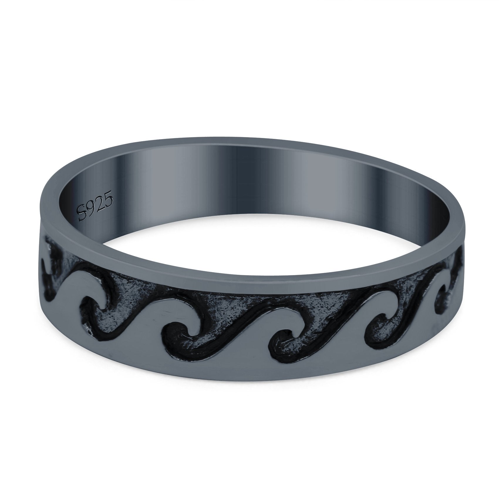 Wave Ring Oxidized Band Solid 925 Sterling Silver Thumb Ring (5mm)