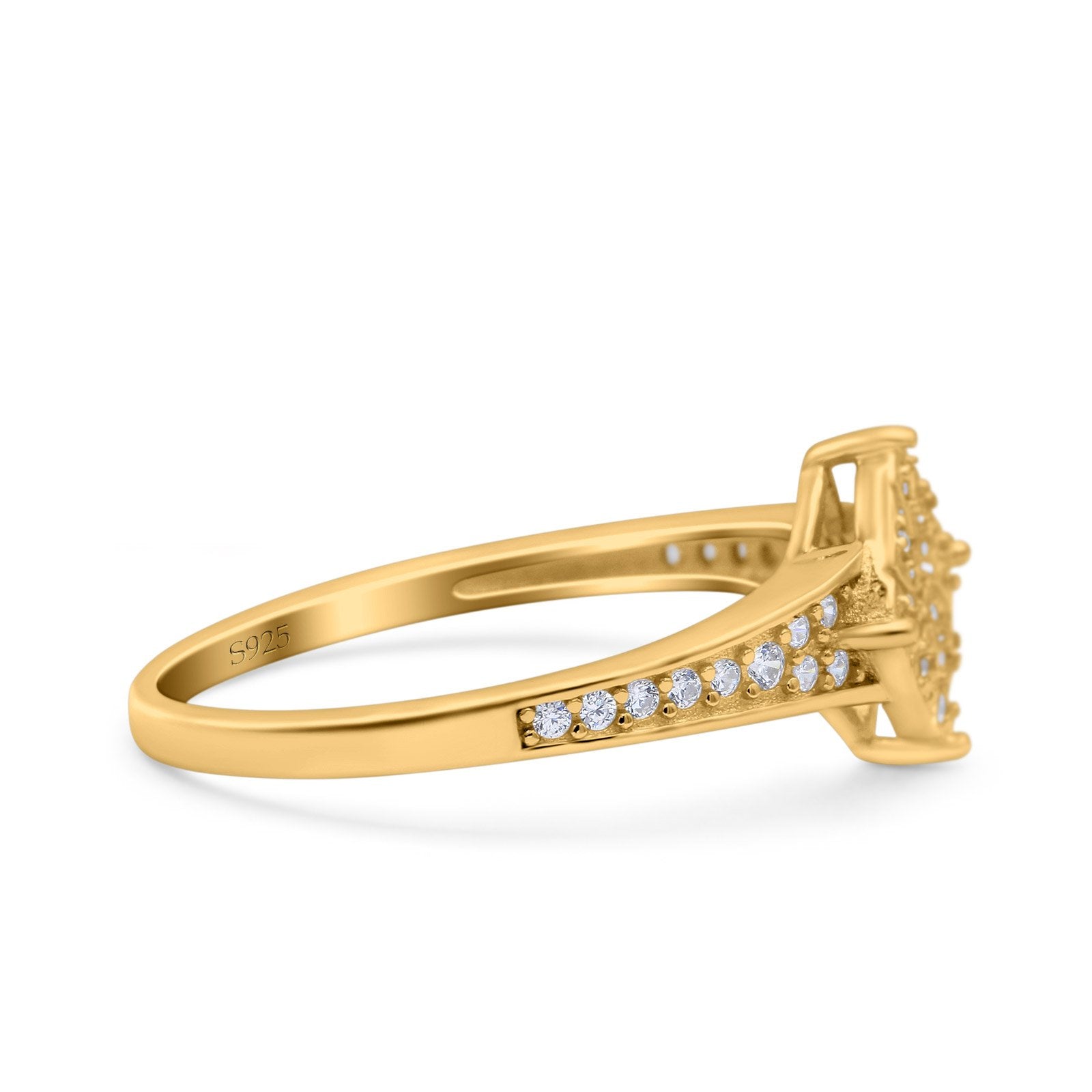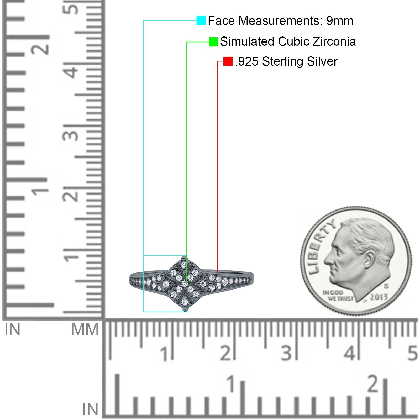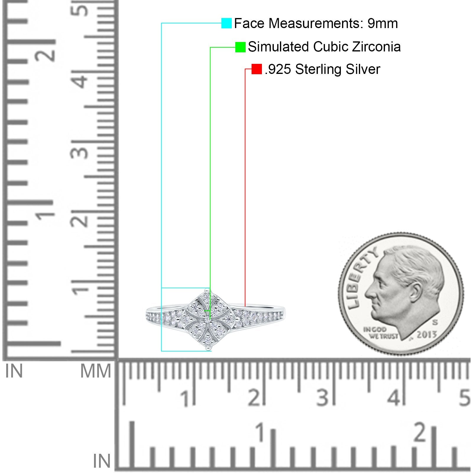 Wedding Engagement Ring Band Round Pave Simulated Cubic Zirconia 925 Sterling Silver (9mm)