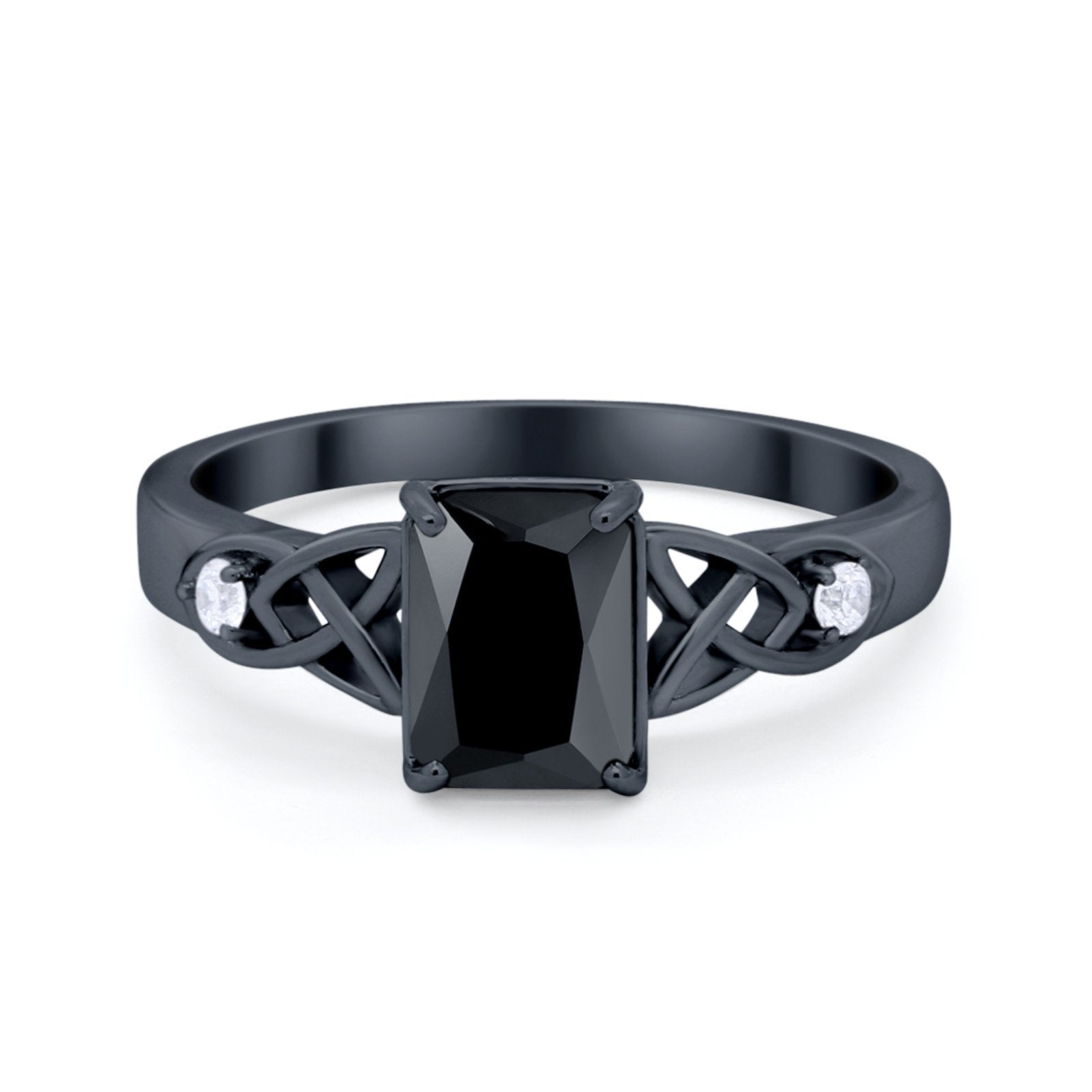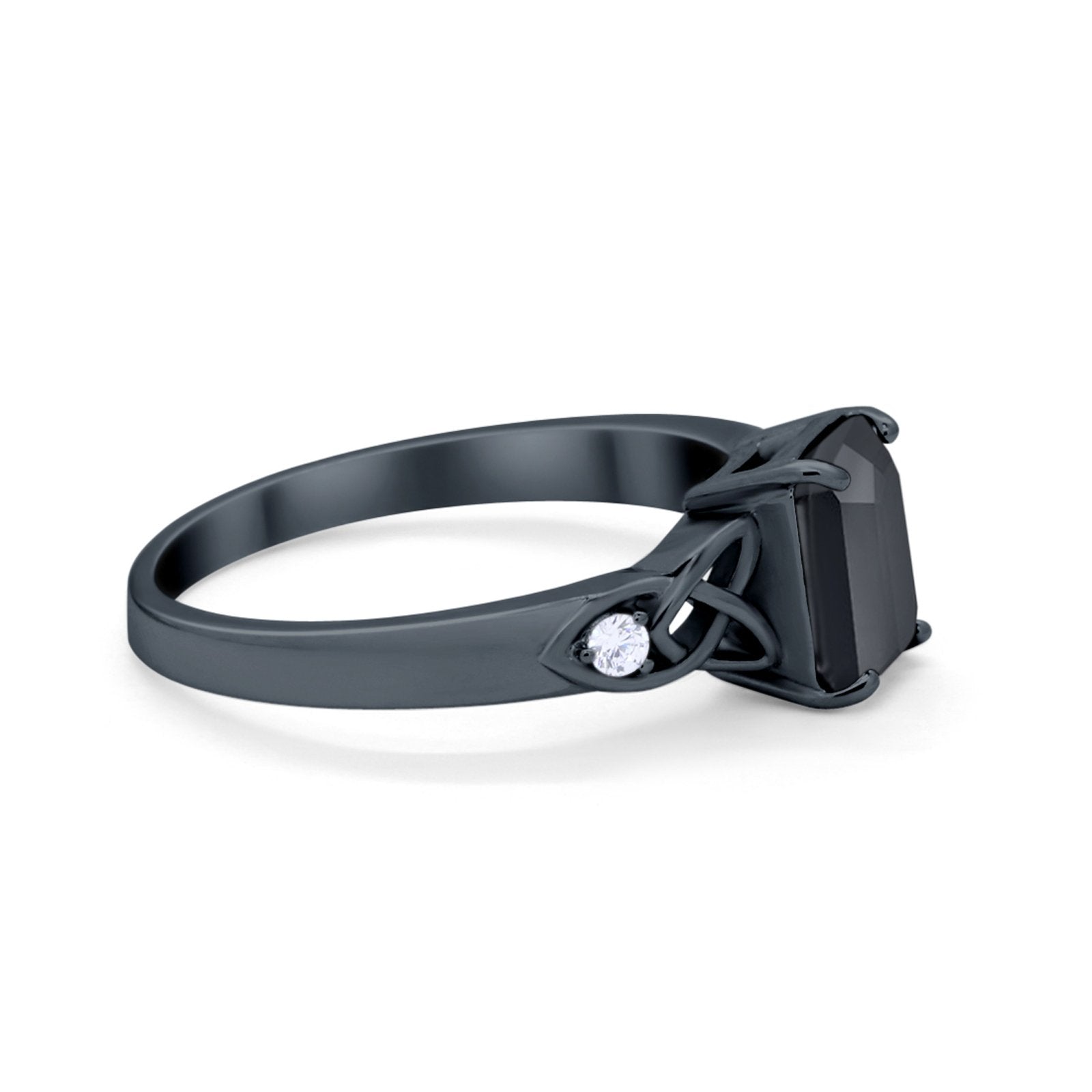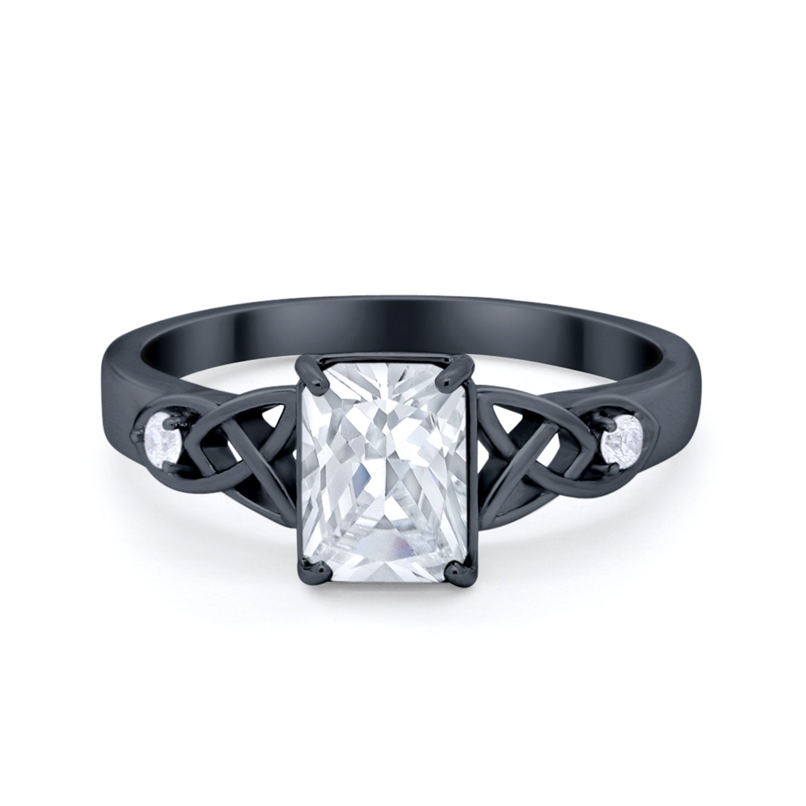 Wedding Ring Emerald Cut Round Simulated Cubic Zirconia 925 Sterling Silver