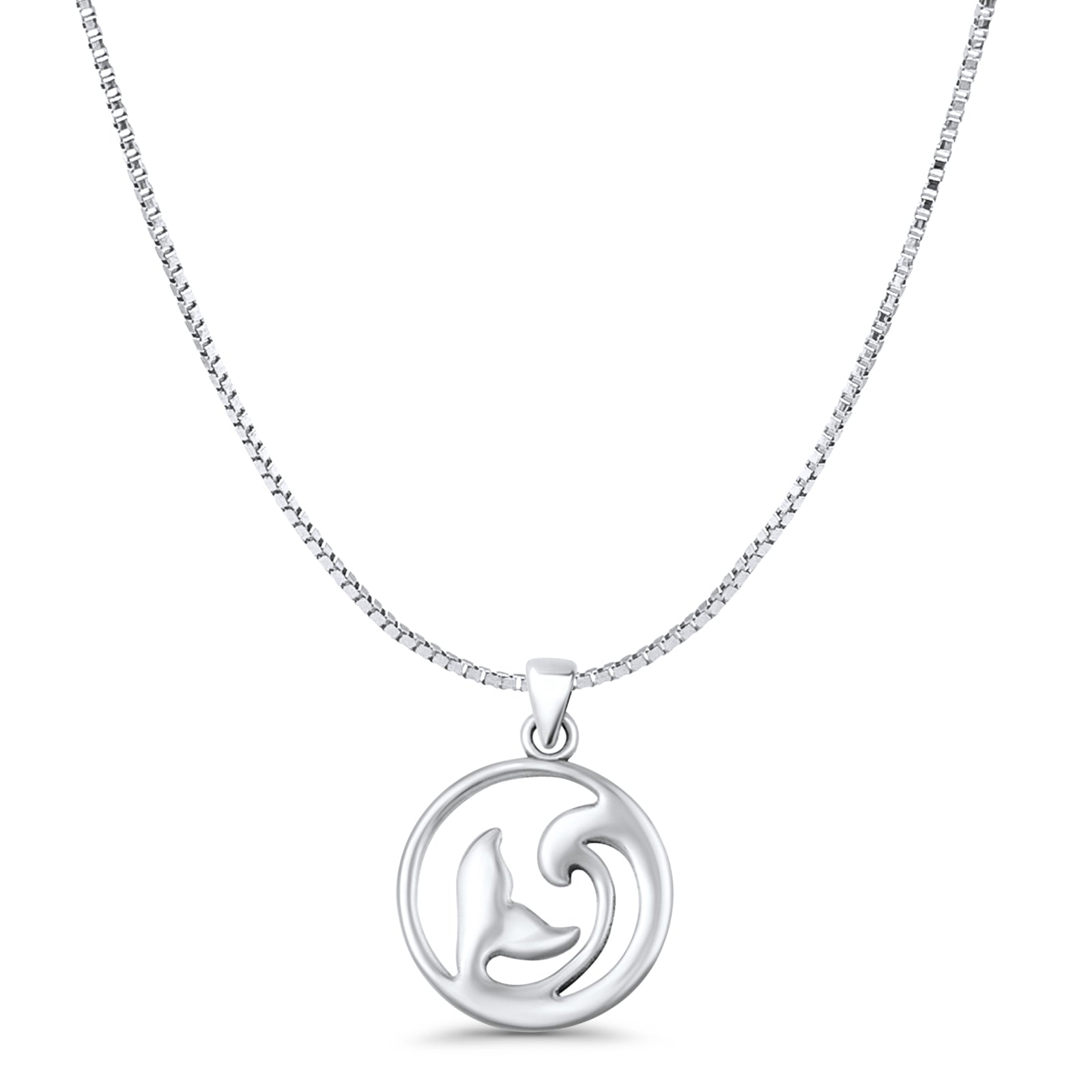 Whale Tail & Wave Pendant Box Chain Necklace Oxidized 925 Sterling Silver