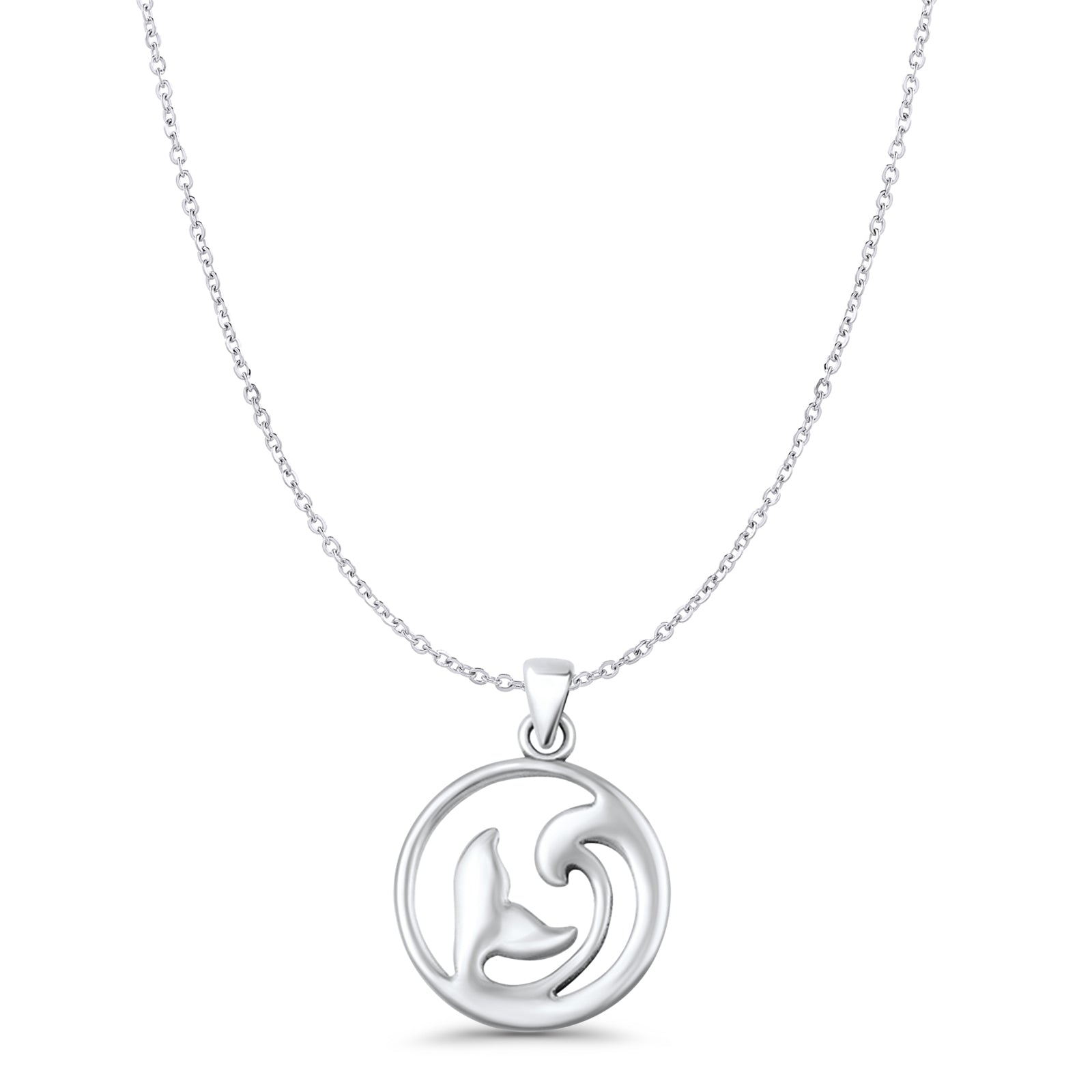 Whale Tail & Wave Pendant Cable Chain Necklace Oxidized 925 Sterling Silver