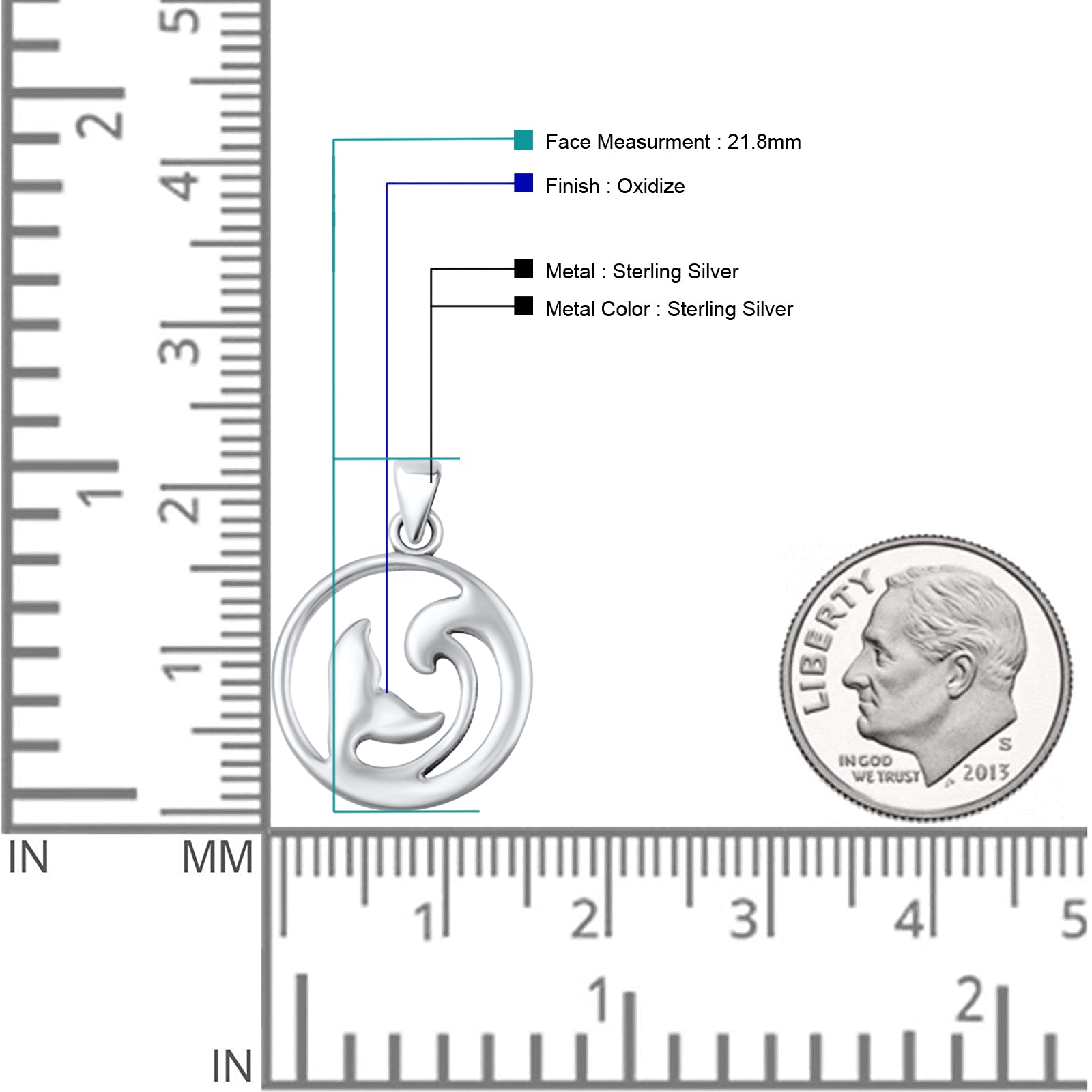 Pendant Length: 21.8mm(0.85 inch)